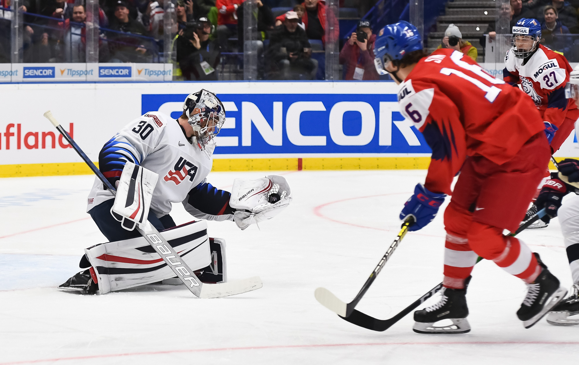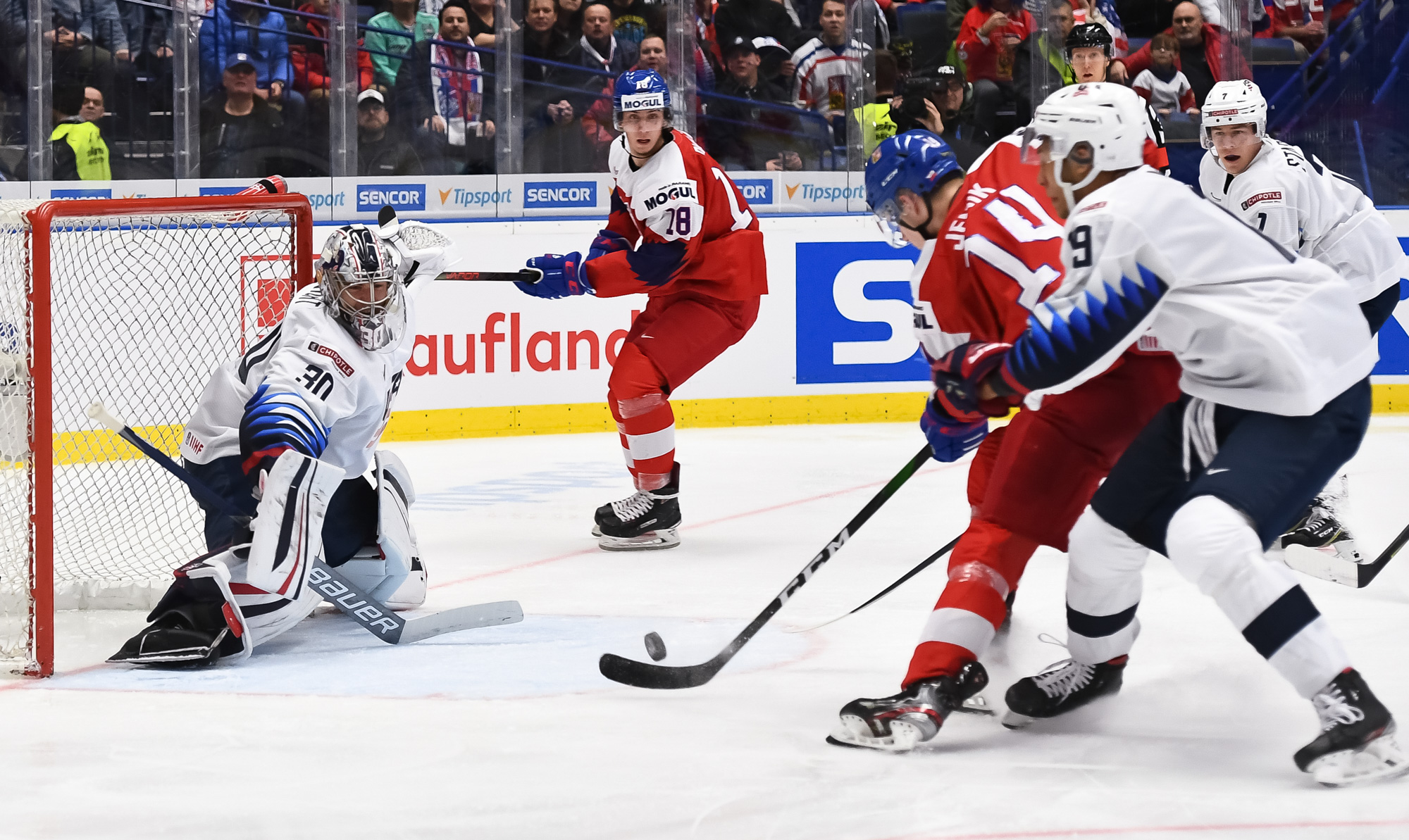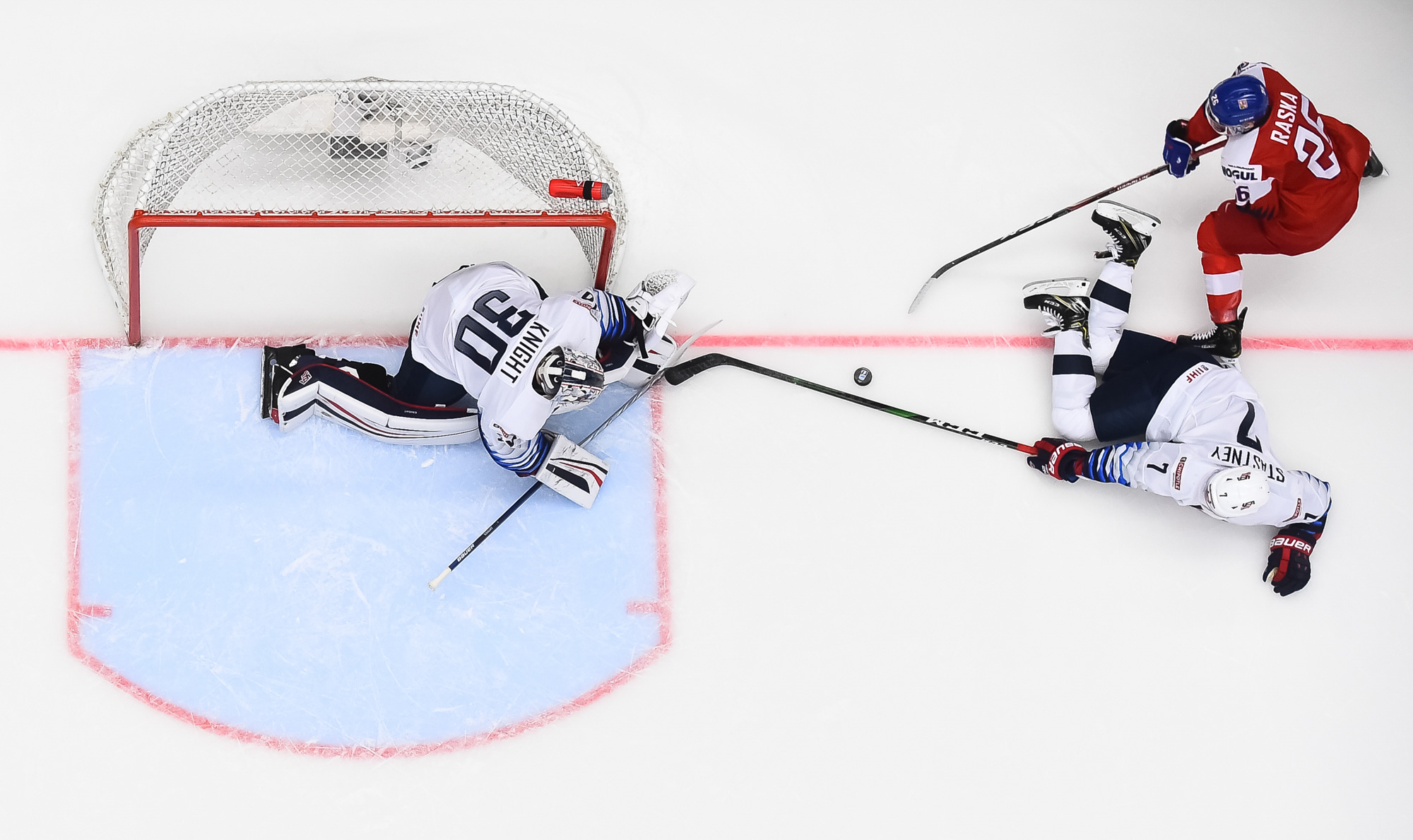 The Czechs finished the period with consecutive power-play chances, but the Americans collapsed around Knight and blocked shots and lanes and prevented the Czechs from getting many decent shots.