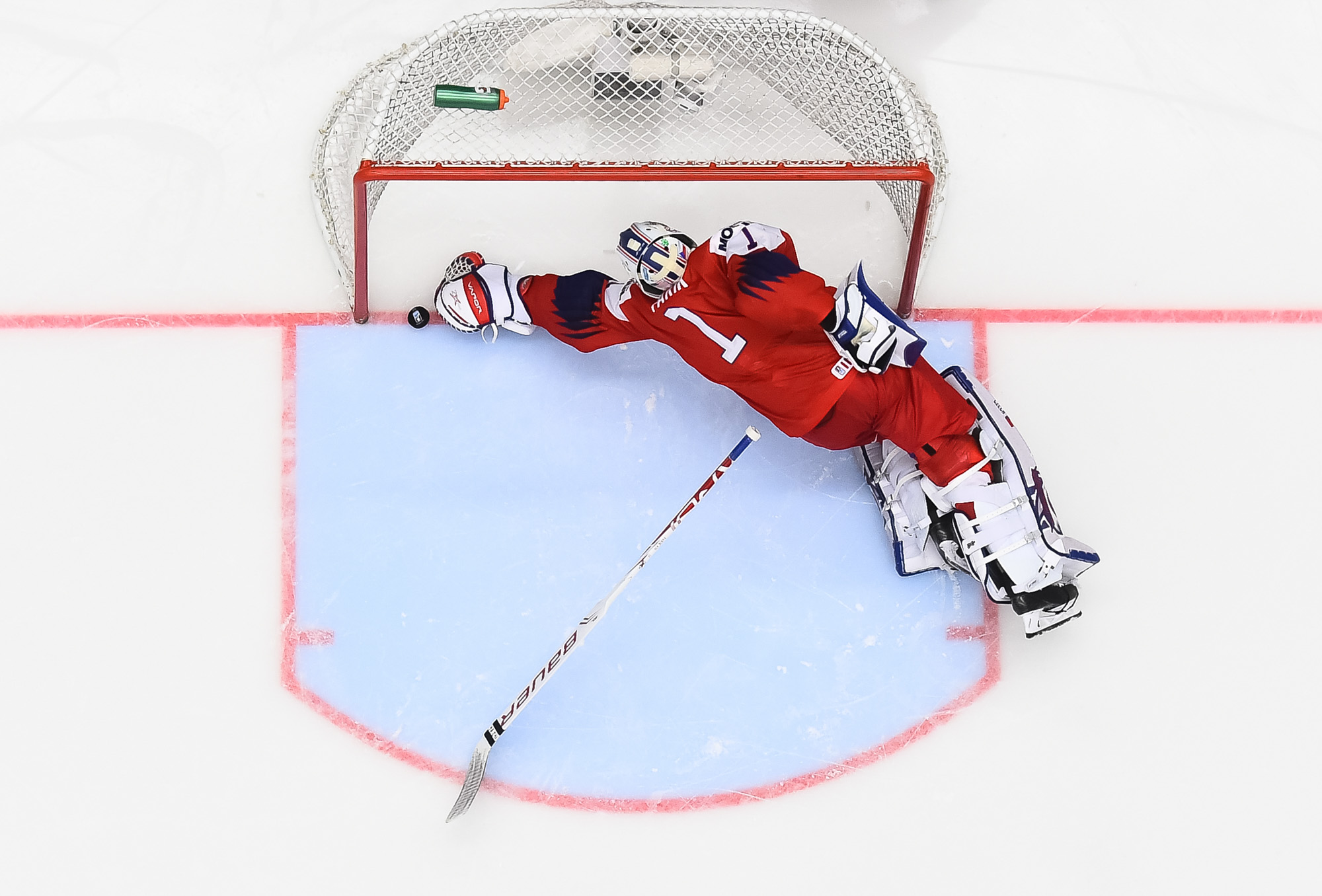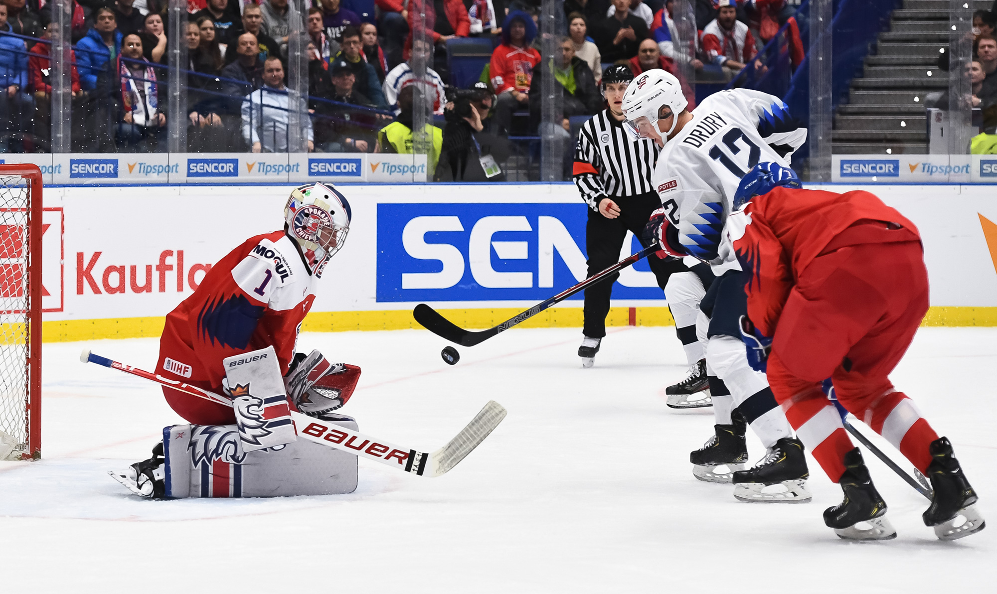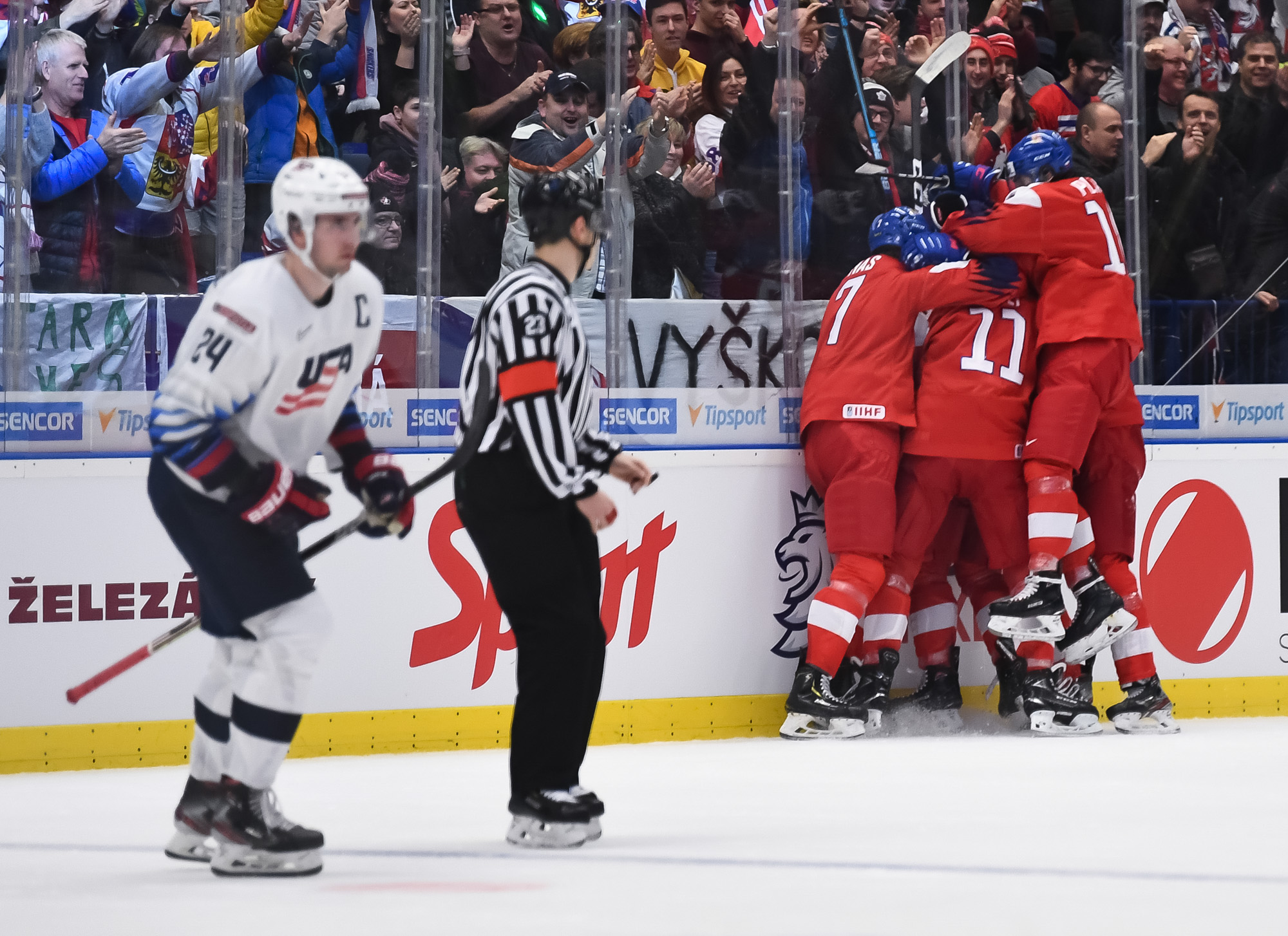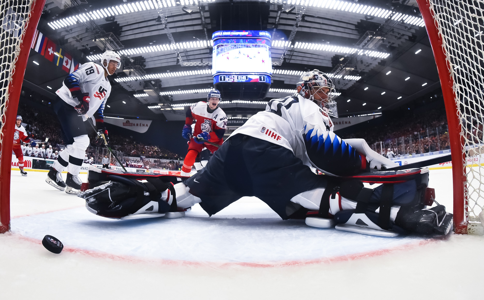 The Czechs finished the period with consecutive power-play chances, but the Americans collapsed around Knight and blocked shots and lanes and prevented the Czechs from getting many decent shots.