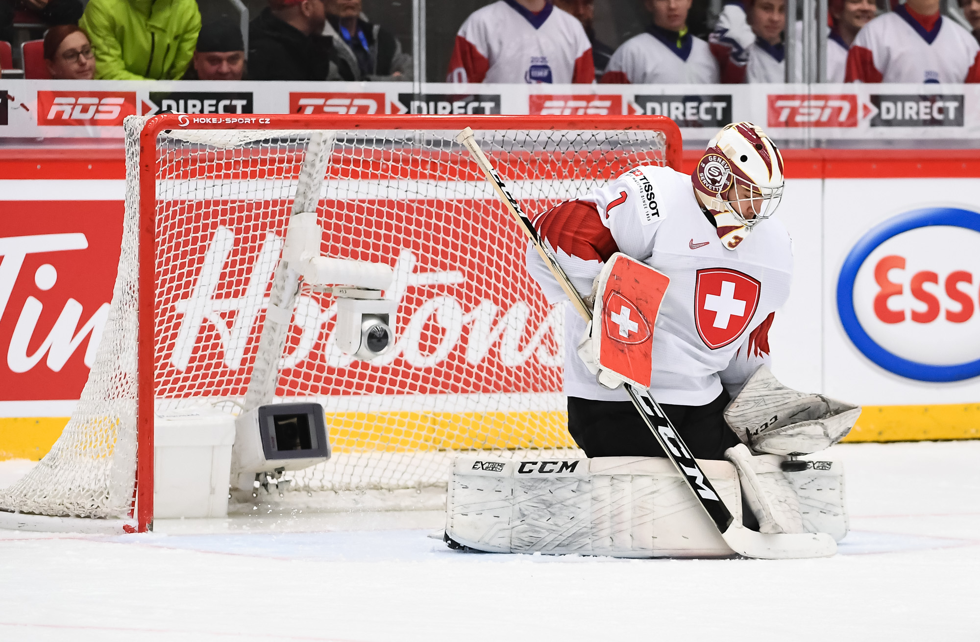 Number one Swiss goalie Luca Hollenstein got rested before the playoffs, so Stephane Charlin got the start with Akira Schmid as his backup.