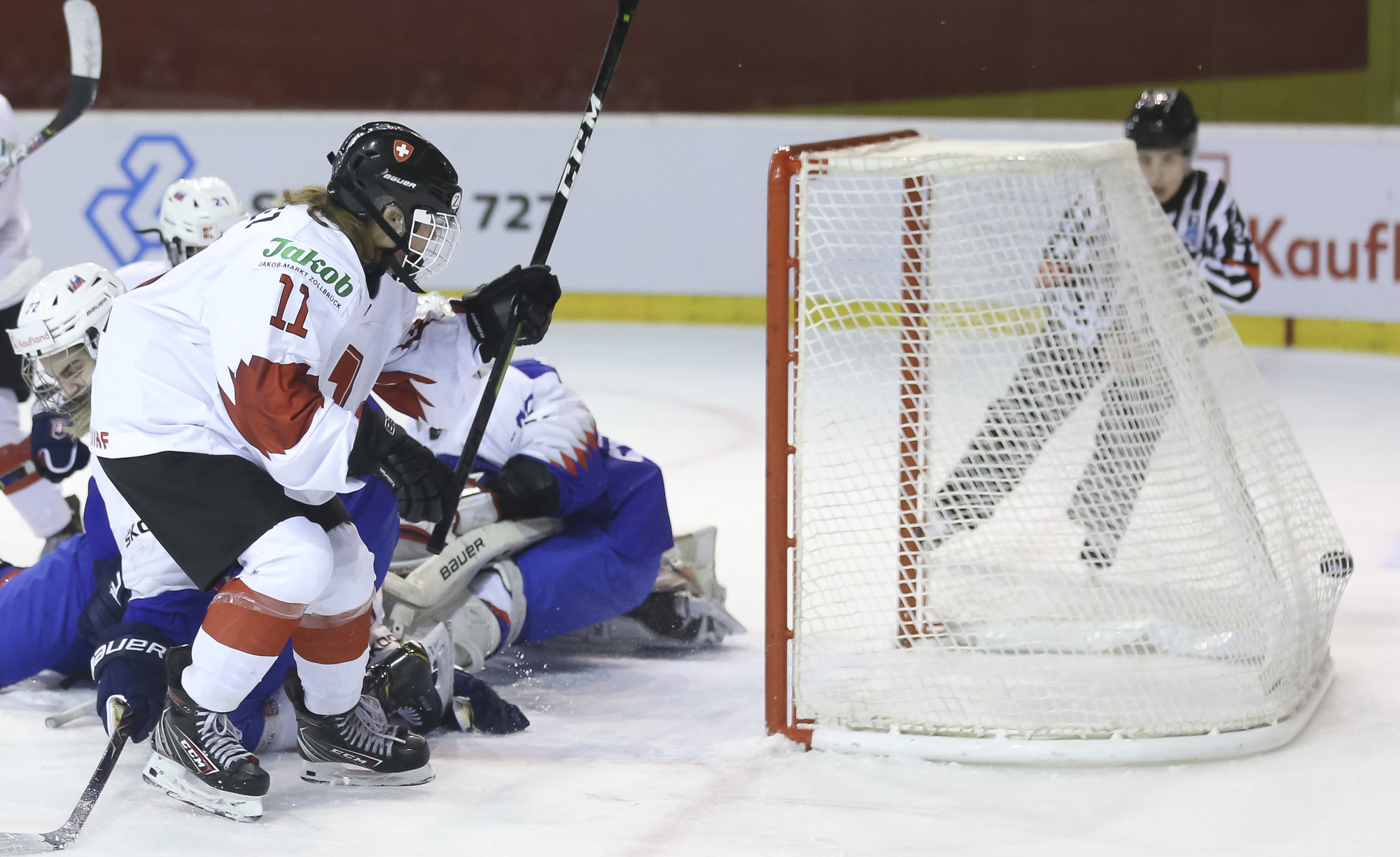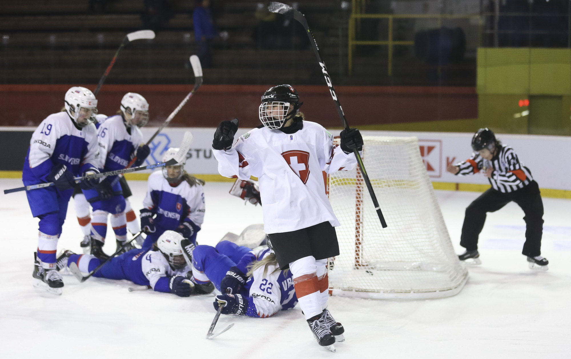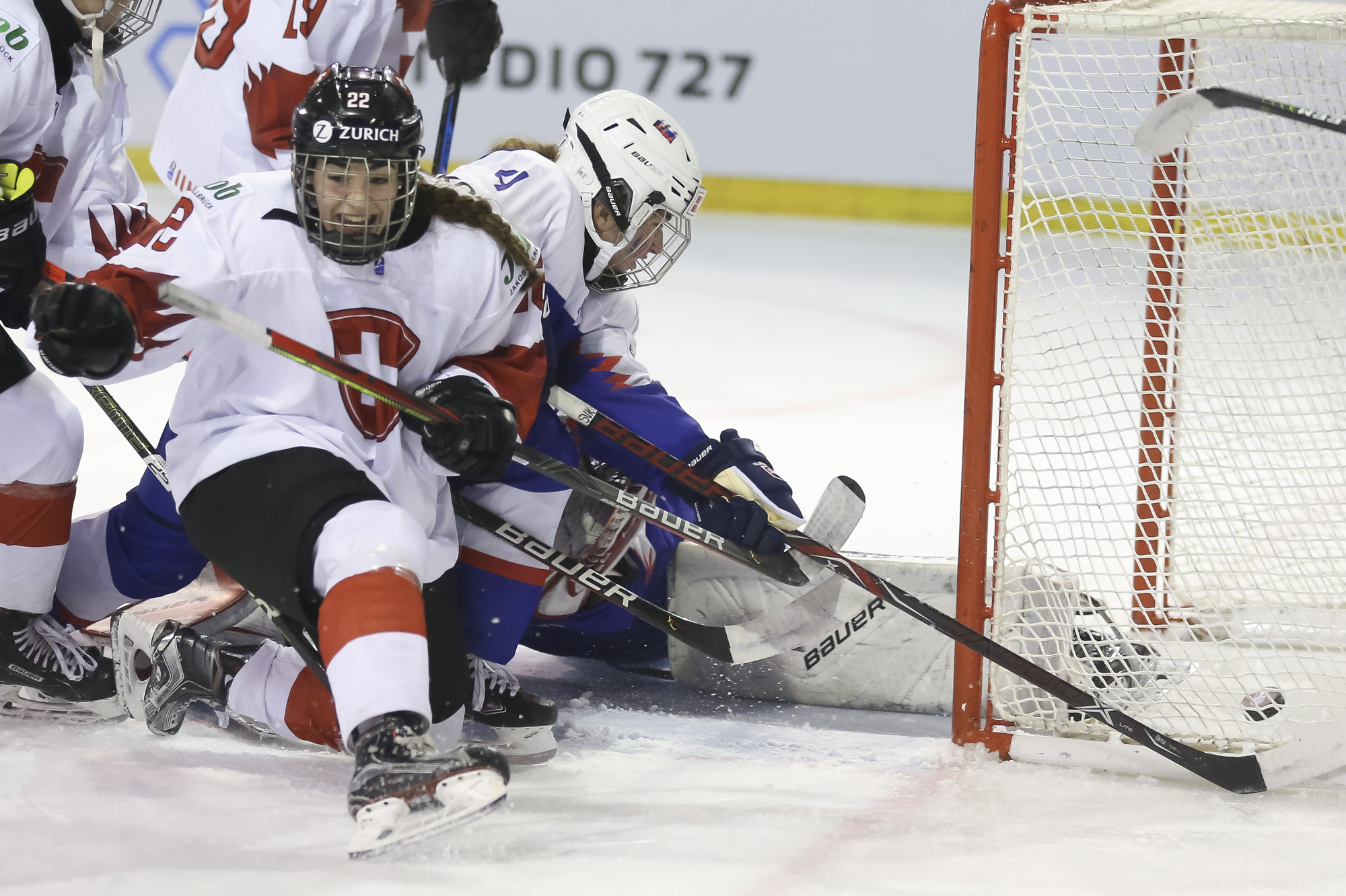 Swiss Sinja Leeman got the only other goal of the third when she jammed in a loose puck in the crease to even the score 1-1. The Slovaks thought the puck was covered but the referees disagreed and the goal stood.
