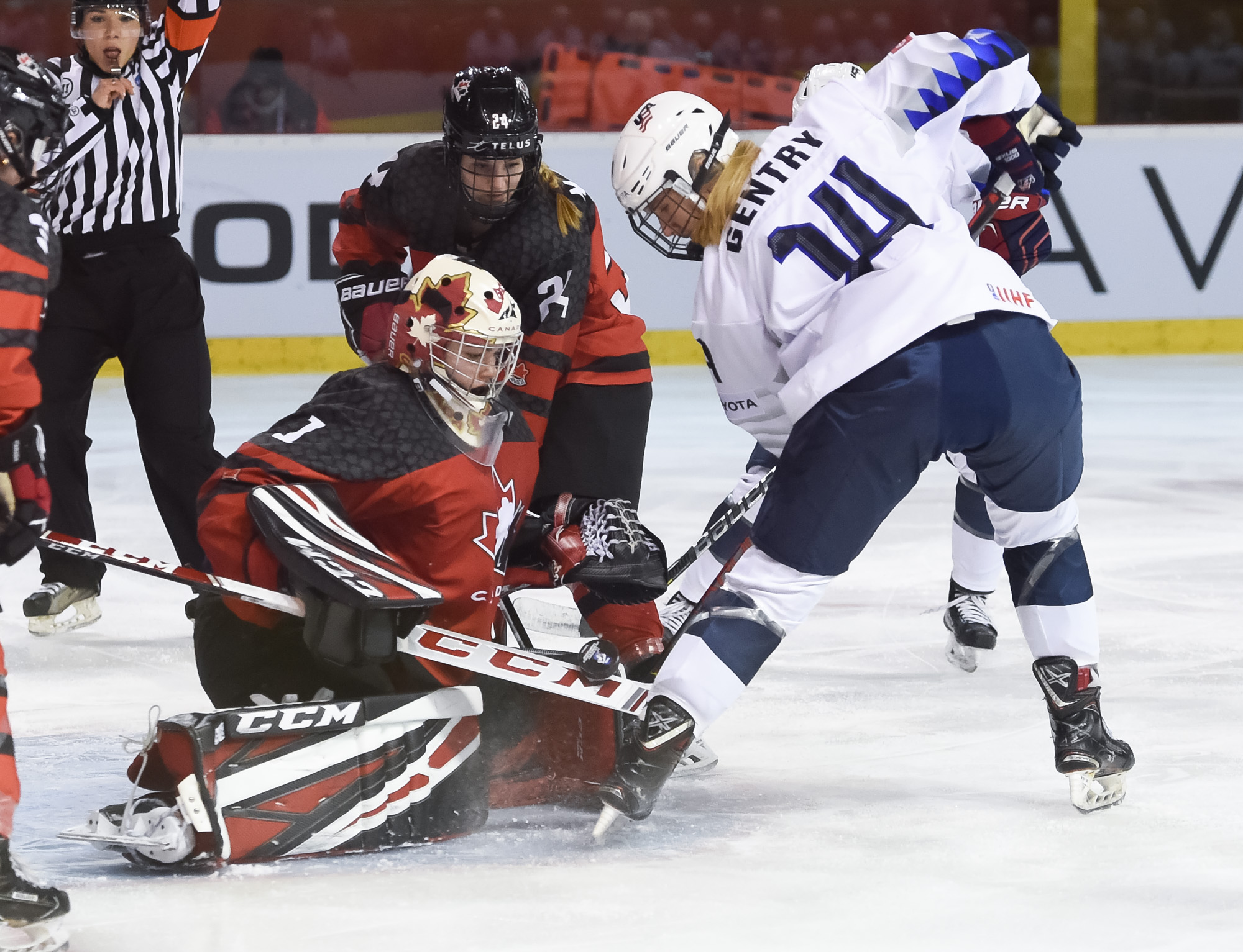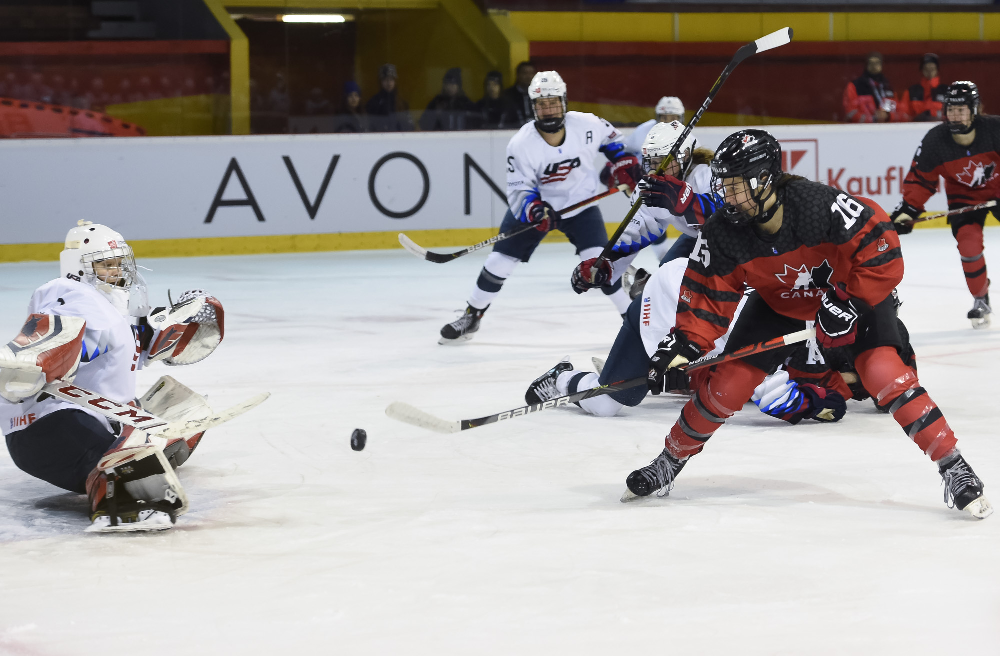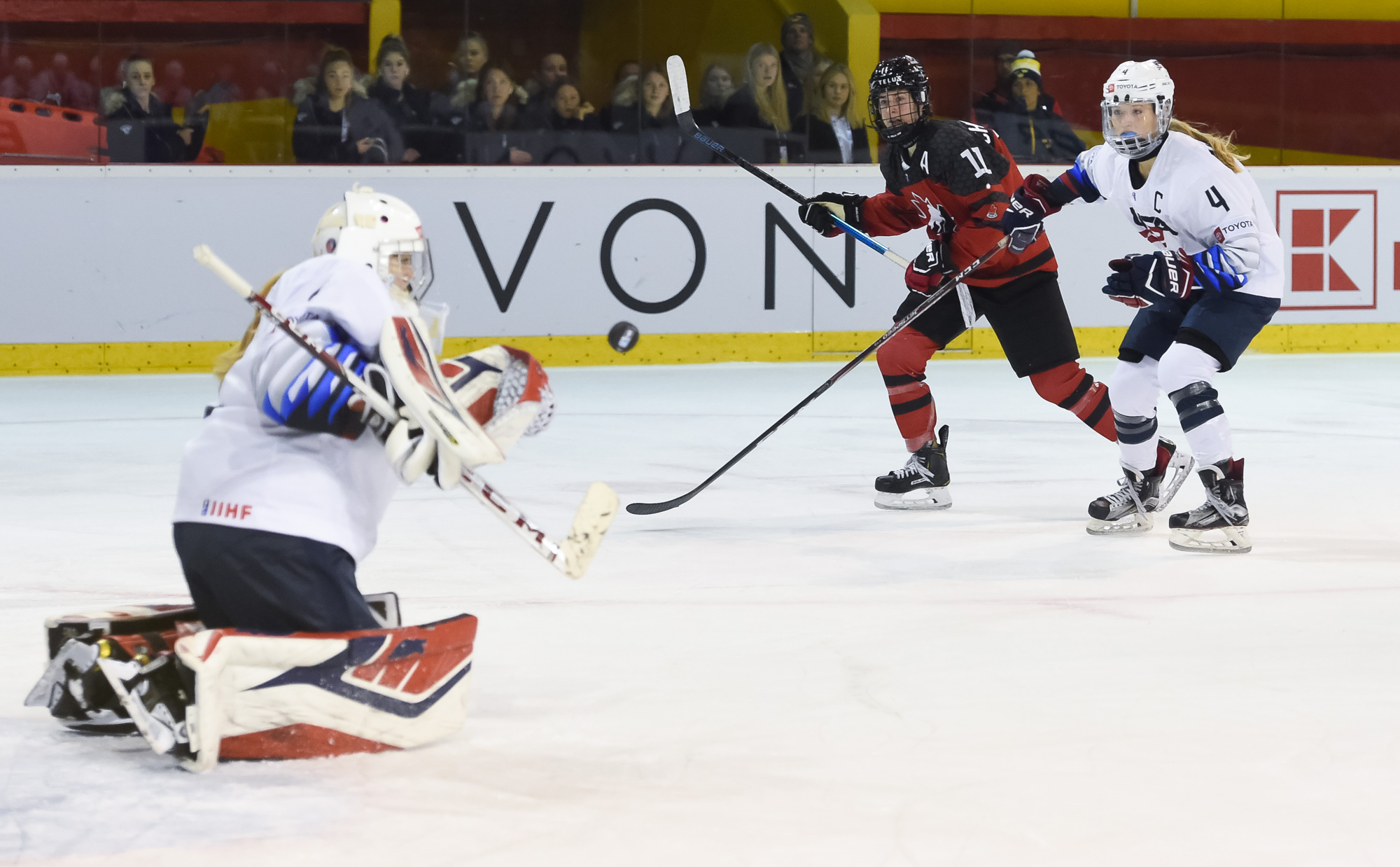 The Americans' best period was the second, when they had 13 shots on Gascon, none better than a chance by Abbey Murphy with five seconds left in the middle frame. Murphy turned a Canadian defender inside out with a quick deke, then found herself in alone on Gascon. Murphy tried to slide the puck between Gascon's pads but the Canadian goaltender shut the door once again.
