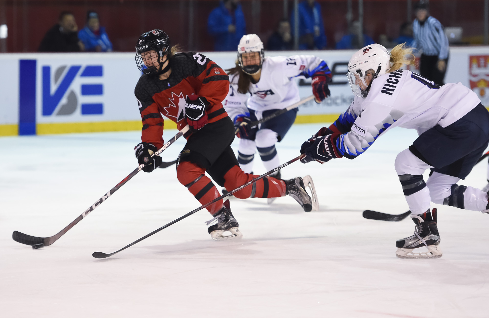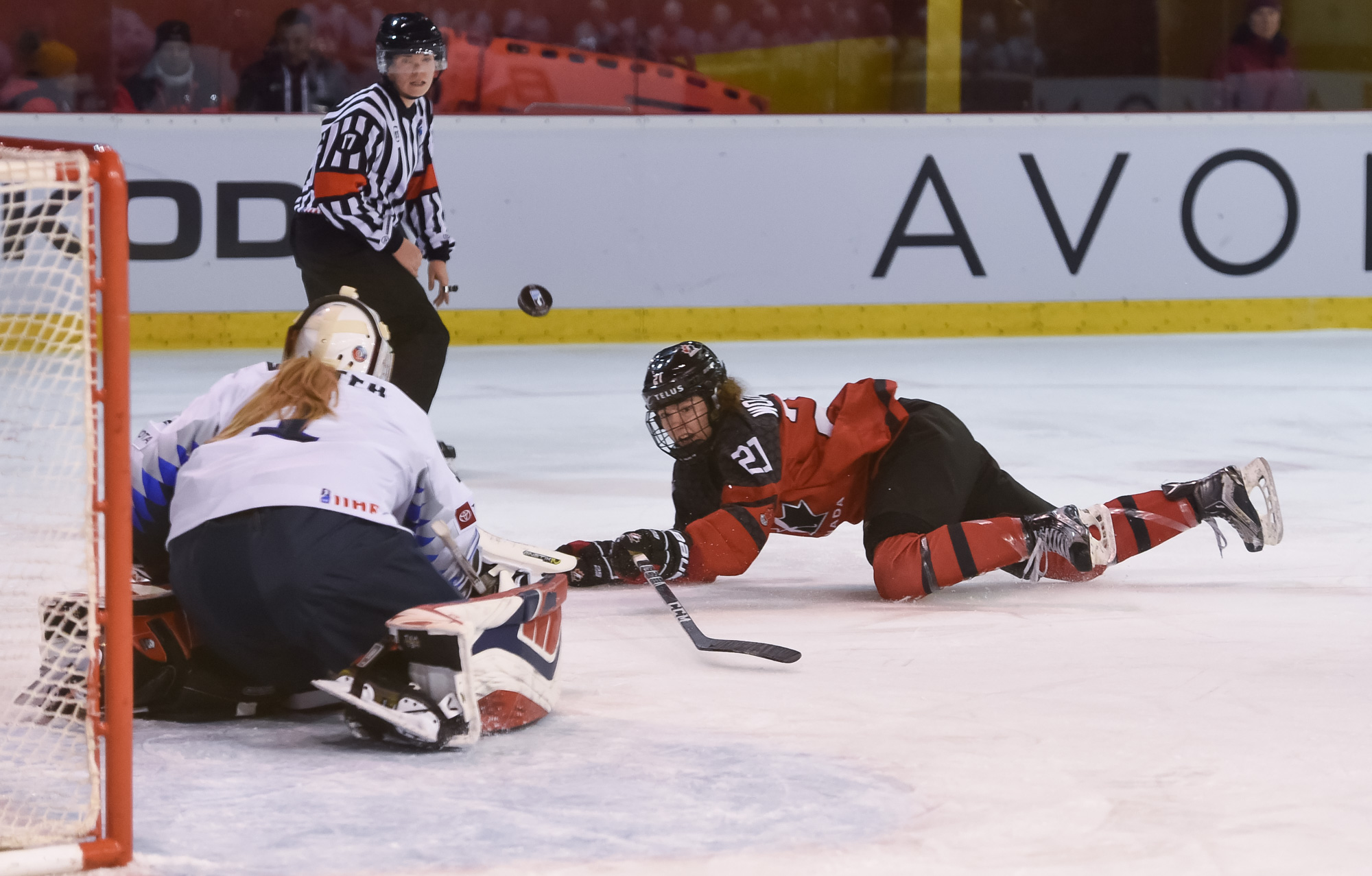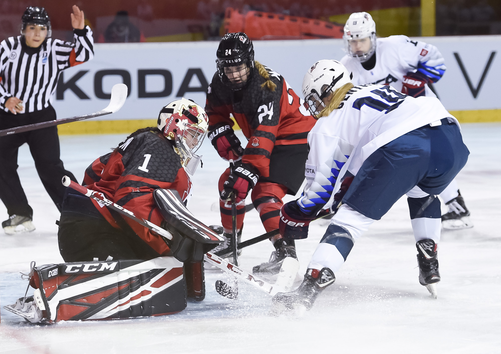 The Americans' best period was the second, when they had 13 shots on Gascon, none better than a chance by Abbey Murphy with five seconds left in the middle frame. Murphy turned a Canadian defender inside out with a quick deke, then found herself in alone on Gascon. Murphy tried to slide the puck between Gascon's pads but the Canadian goaltender shut the door once again.