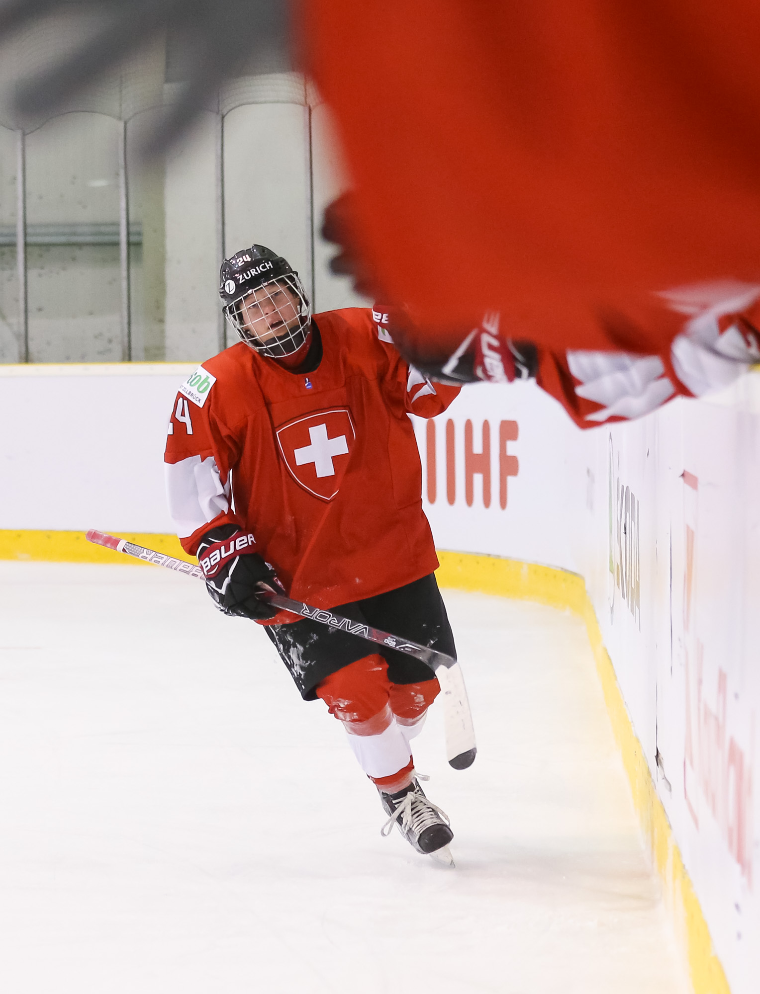 The second period saw the game swing. Despite a good amount of check mate play in all three zones, the Swiss were able to tie things up on the strength of an Alina Marti power play goal in the 25th minute, only to then take the lead on yet another goal by Laura Zimmermann in the 37th minute of play, her fourth of the tournament. And with that, the game – and the series – received a whole new character.