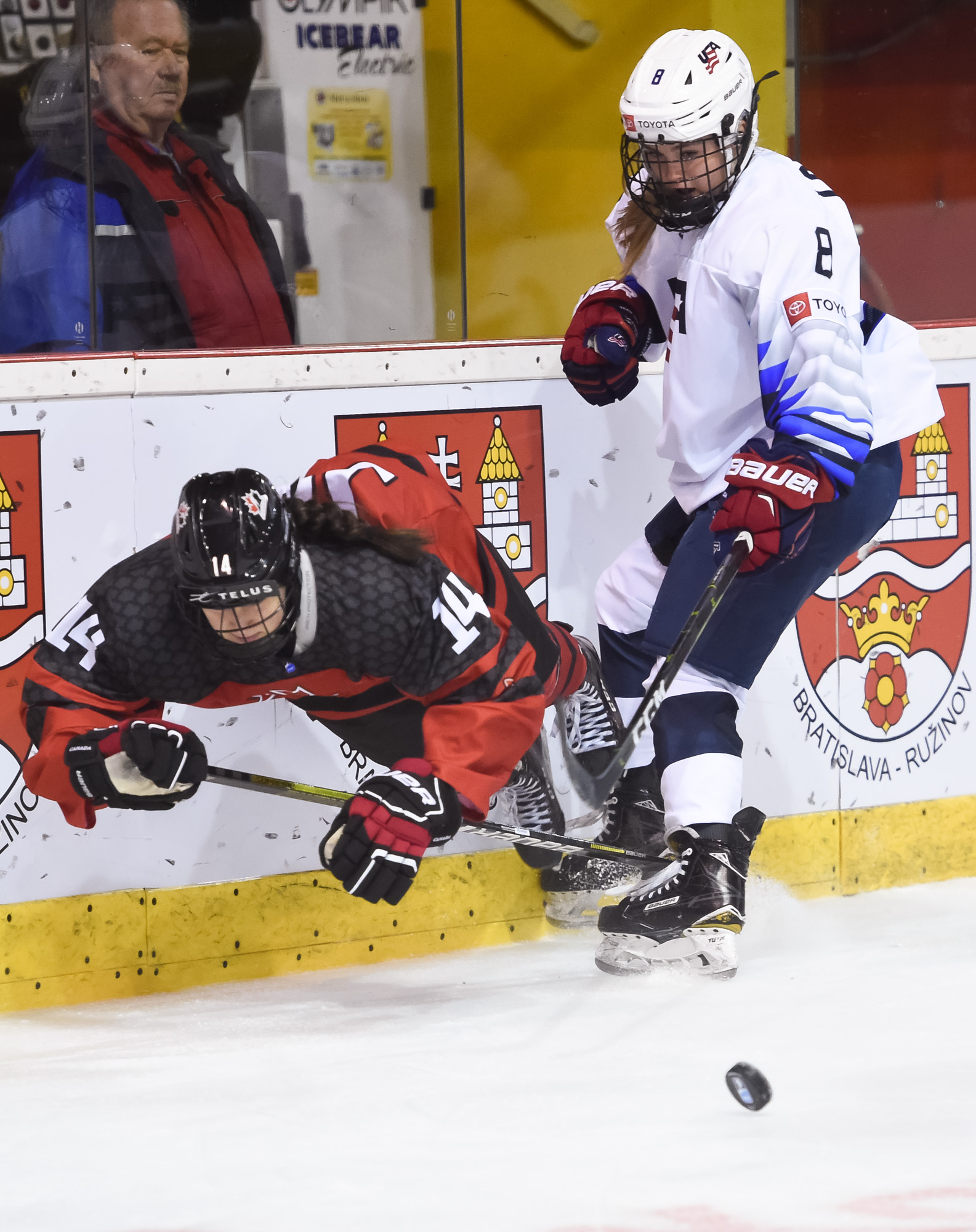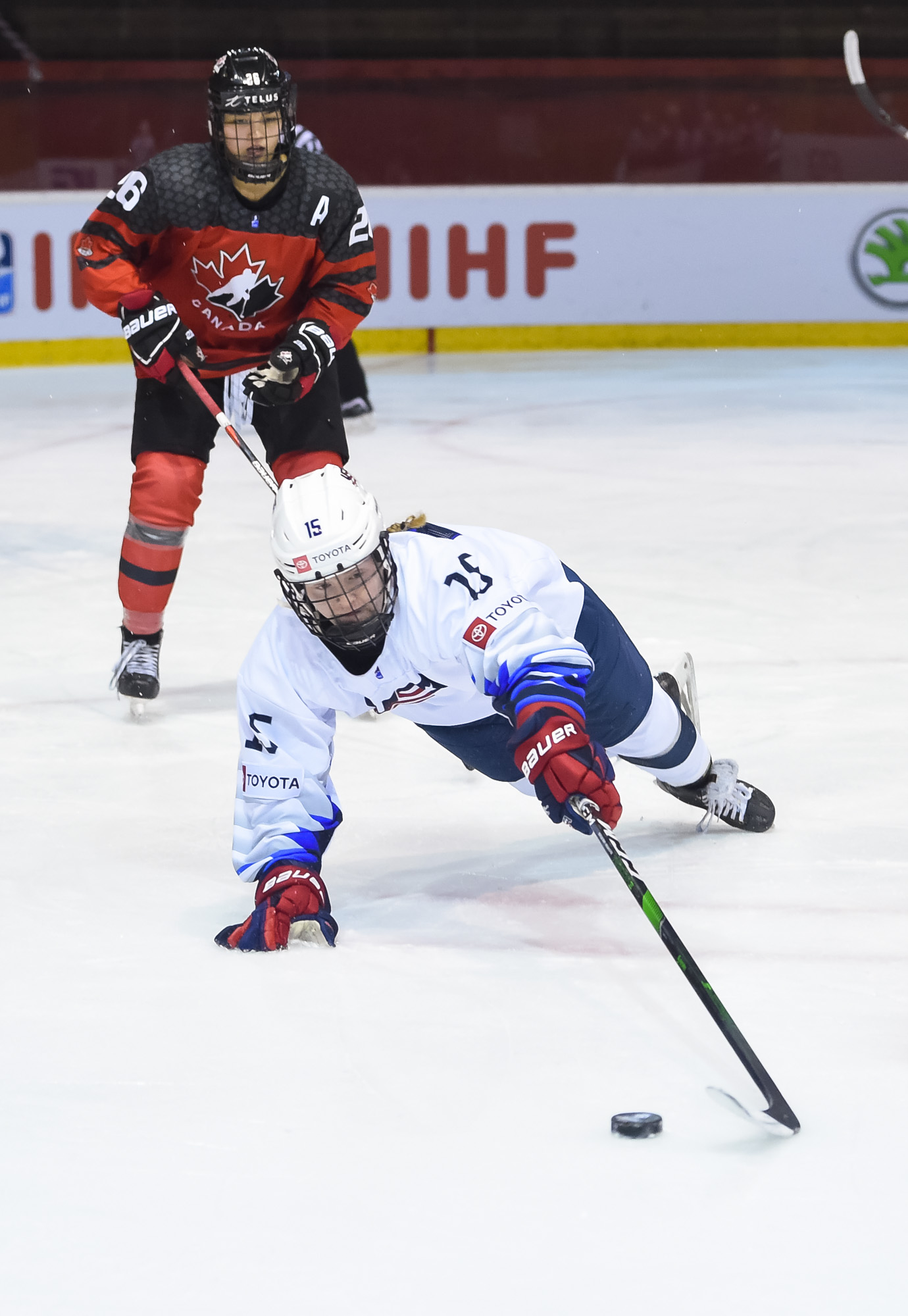 “We had moved ahead. Honestly, our second periods haven’t been the greatest at this tournament,” explained U.S. coach Maura Crowell. “We can’t change what’s happened in the past. You’ve got to move ahead and concentrate on what you can change and what you can do better. We wanted to play more on our toes and be more offensive. We didn’t want to give the Canadians too much room, because when you give them room, they can make plays.”