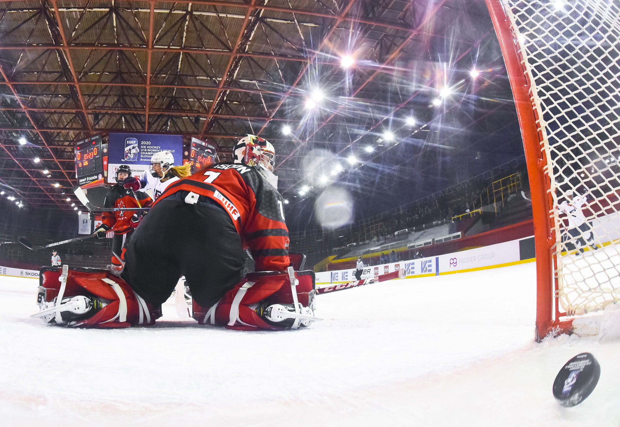 And it did, but not without one last Canadian opportunity to end it all with just two seconds to go. Defenceman Nicole Gosling was sighted sliding down the left-wing side and hit with a tape-to-tape pass. Her ensuing wrist shot flew over the high left corner of the goal, caroming around the board until the siren rang.