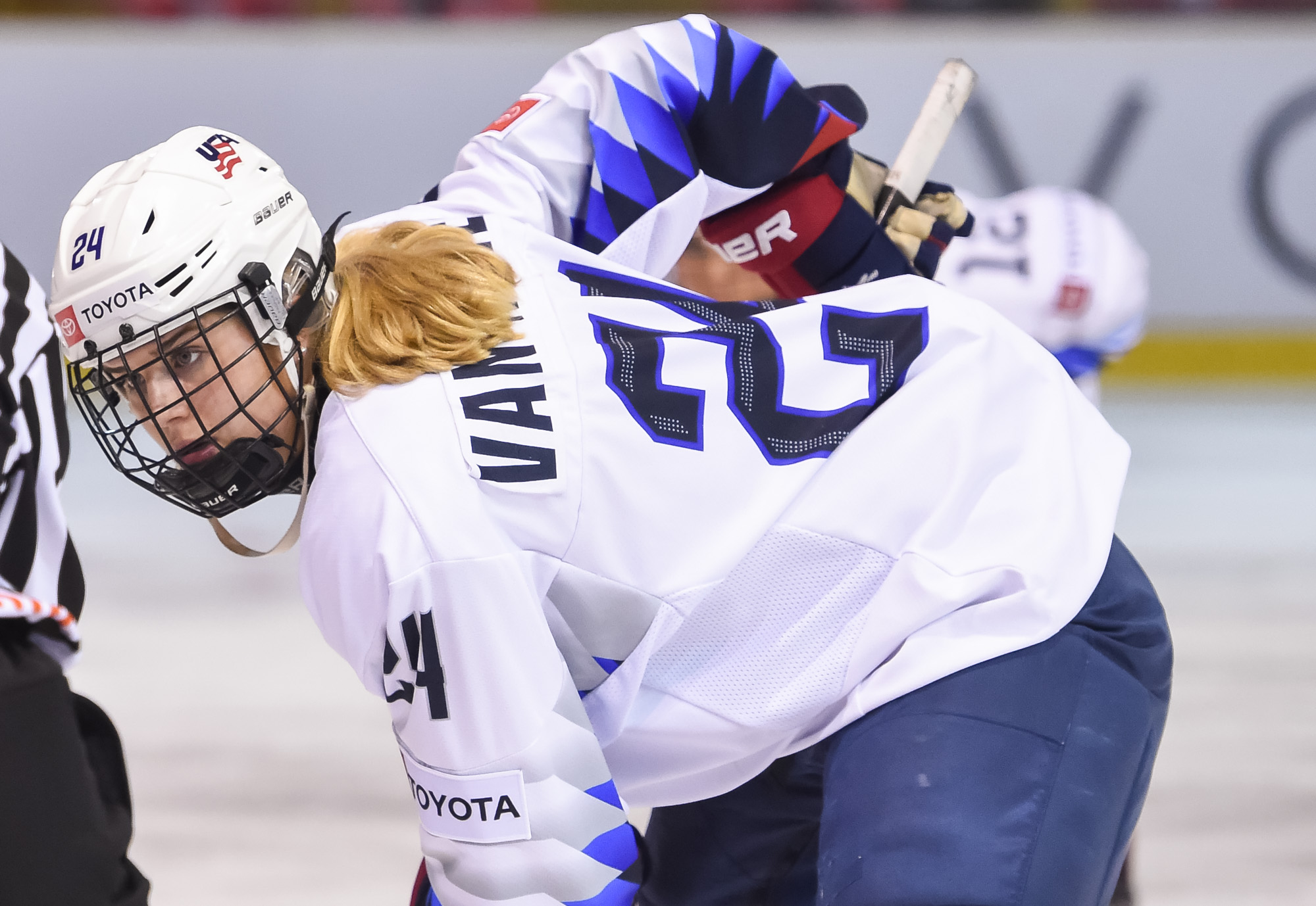 A Kendall Cooper hooking penalty was taken in the 20th minute and after three highly dangerous U.S. set-ups, a puck snuck out of the zone, allowing Canadian forward Jenna Buglioni, later named to the tournament’s all-star team, to skate in on the U.S. goal uncontested. Once again, Vetter closed the door.