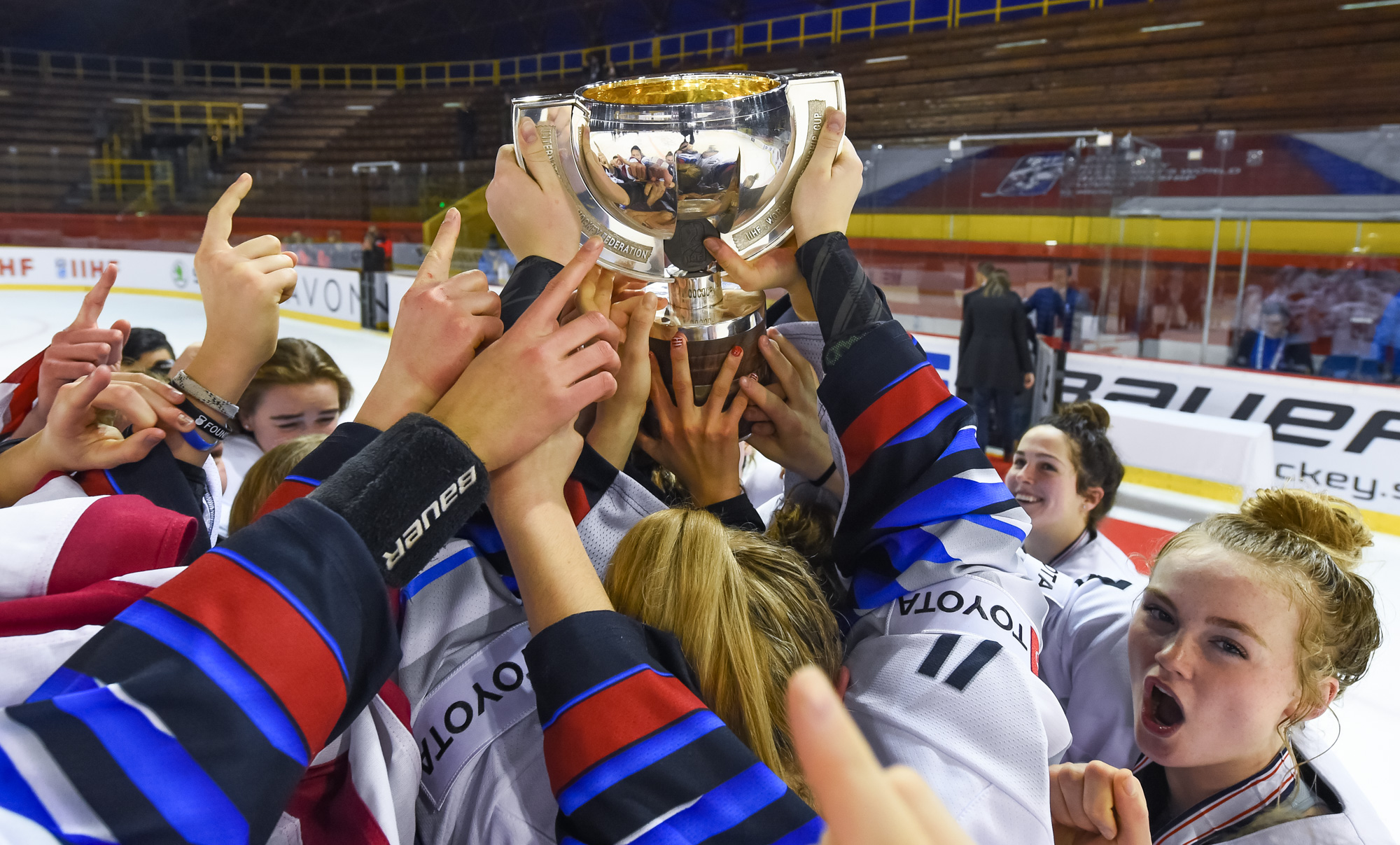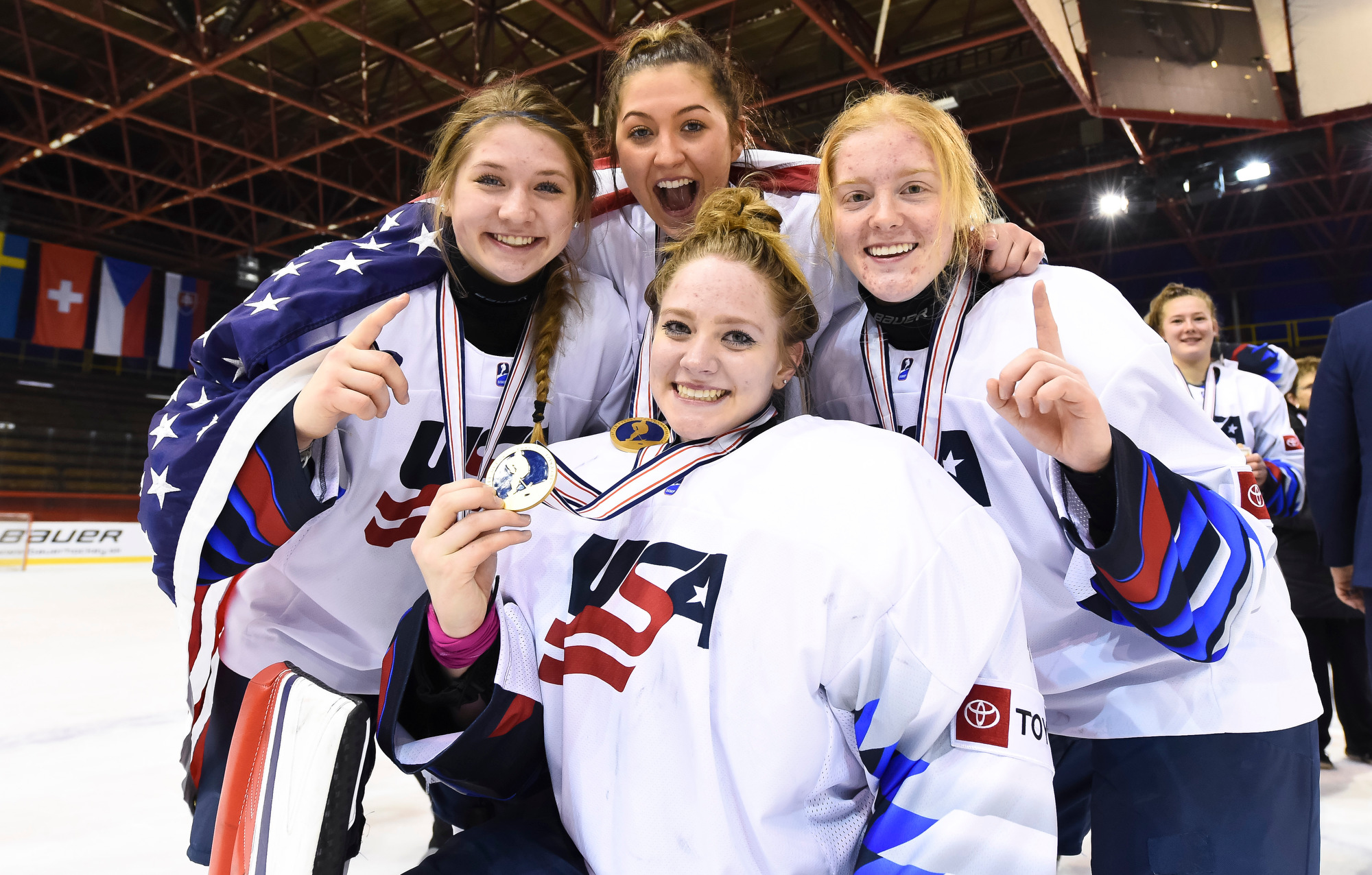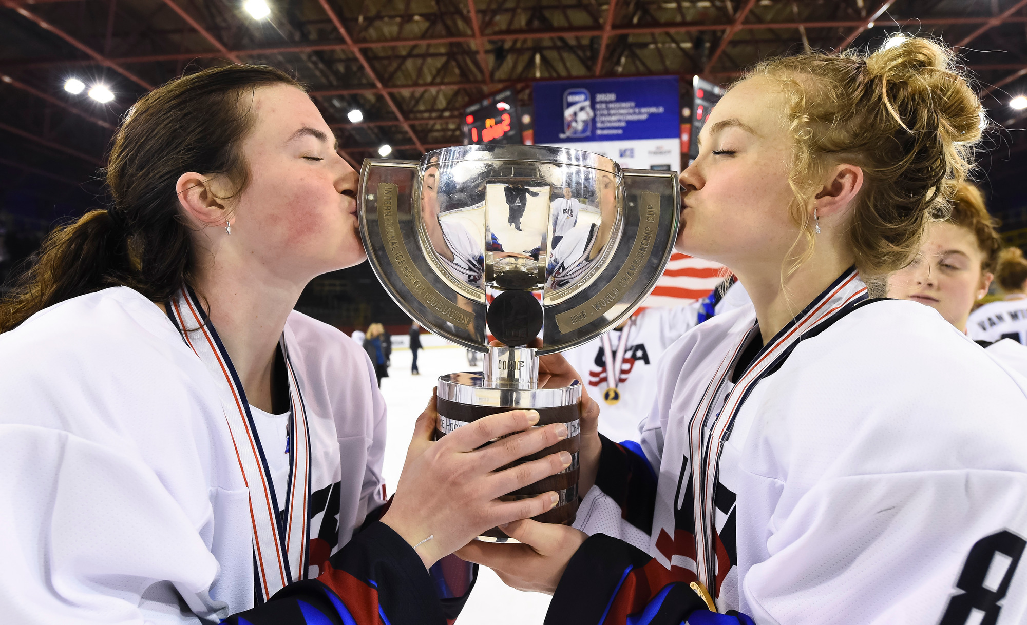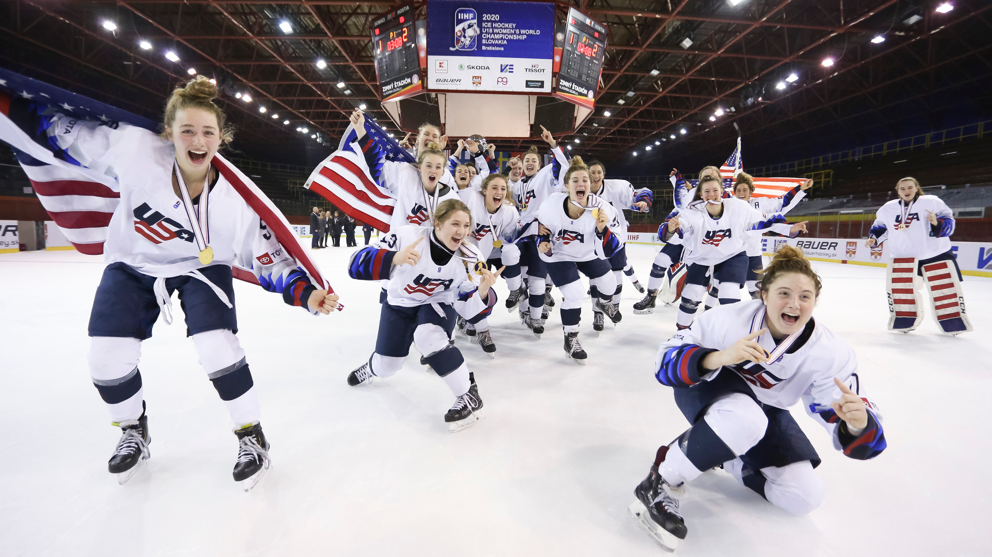 Team USA is back on the throne. The Americans celebrate their 2020 IIHF Ice Hockey U18 Women's World Championship gold medal win after beating Canada in overtime.