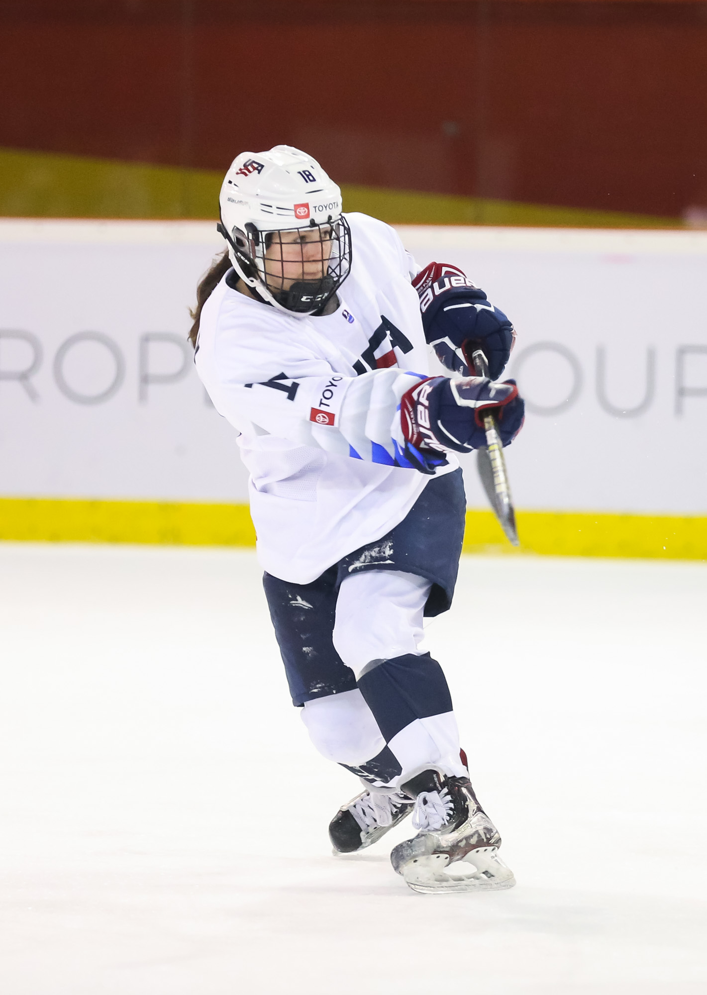 An Alyssa McLeod penalty in the 12th minute of play gave the U.S. a power play, which the team used to put Canadian goaltender Eve Gascon to the test. A half dozen solid shots made their way to the net as the U.S. moved the puck with aplomb, but with nothing to show for it. The same would not be the case in the 14th minute of play, when – on the next U.S. power play – Abbey Murphy was able to grab the puck in the high slot and put a well-placed wrister over the shoulder of Gascon for the 1-0 lead.