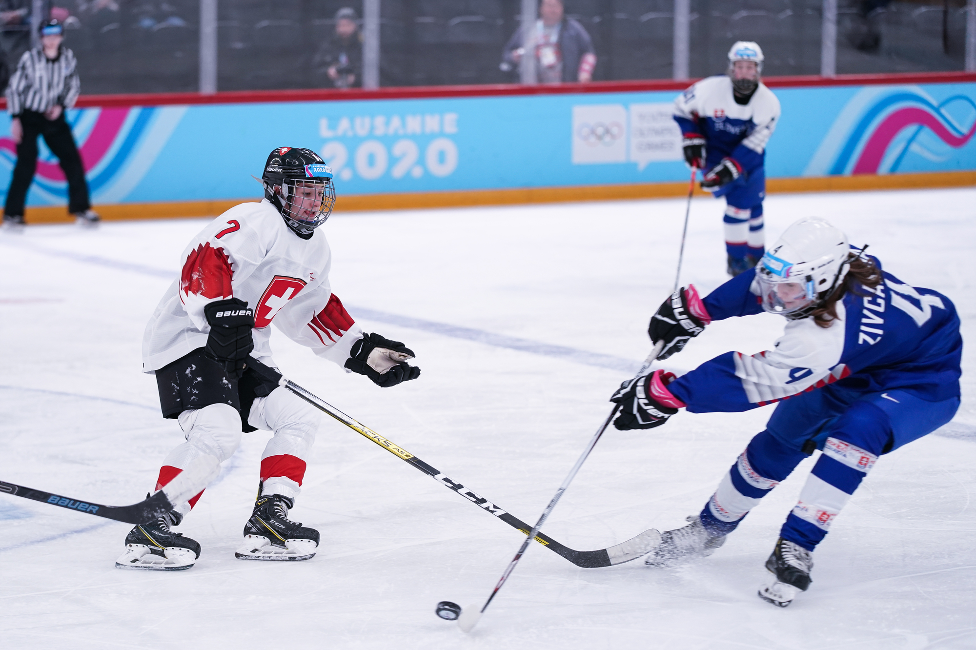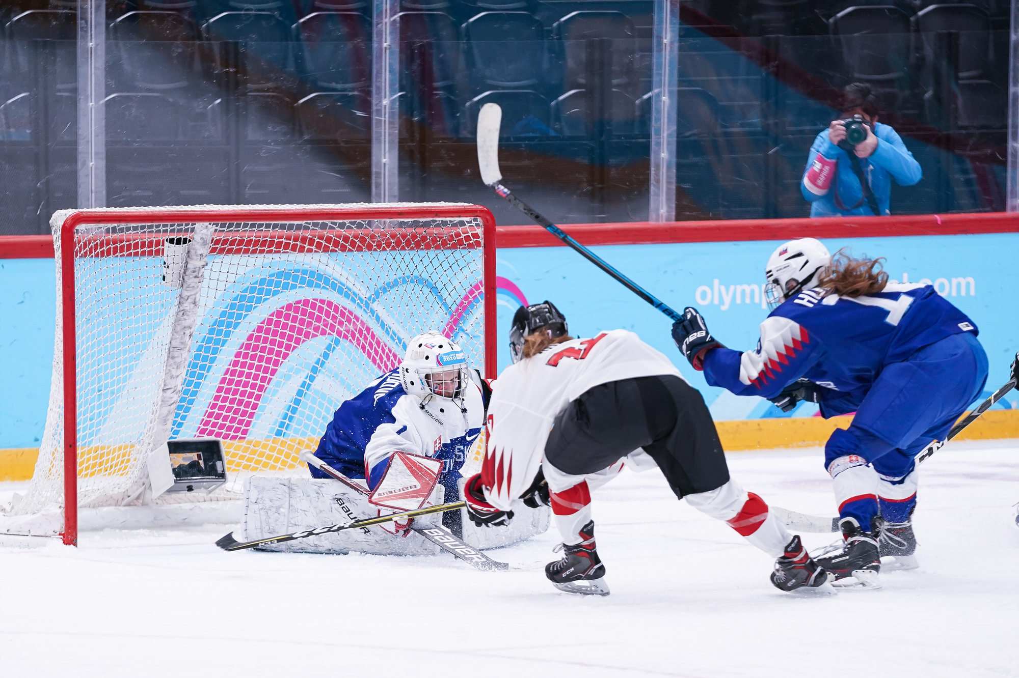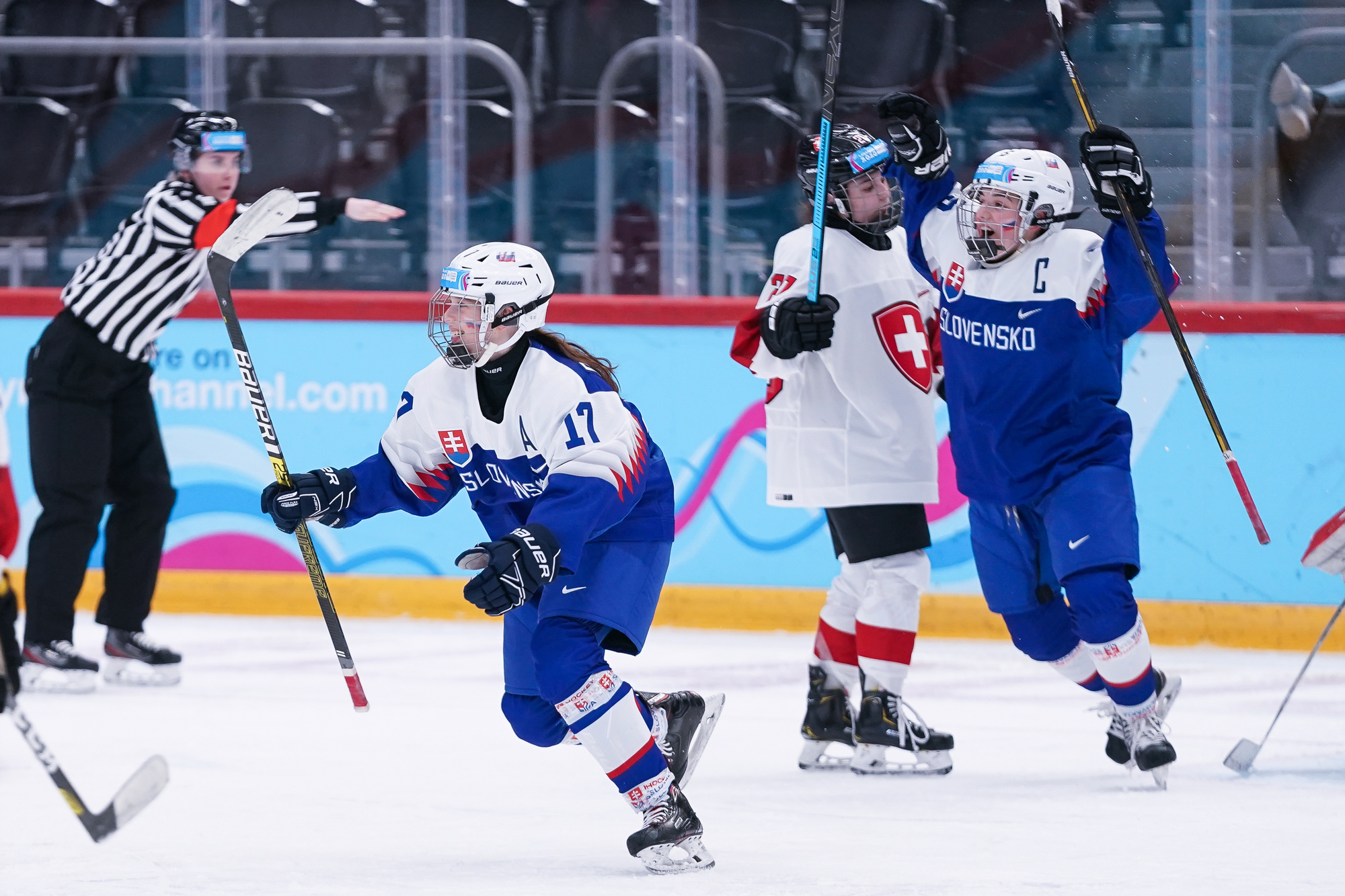 This time the game was with players two years younger and on Swiss ice but with the Slovaks writing history. The Slovaks outshot Switzerland, who had captain Alina Marti and Elena Gaberell sidelined, 23-12 but it was a tight battle from the beginning until the end.