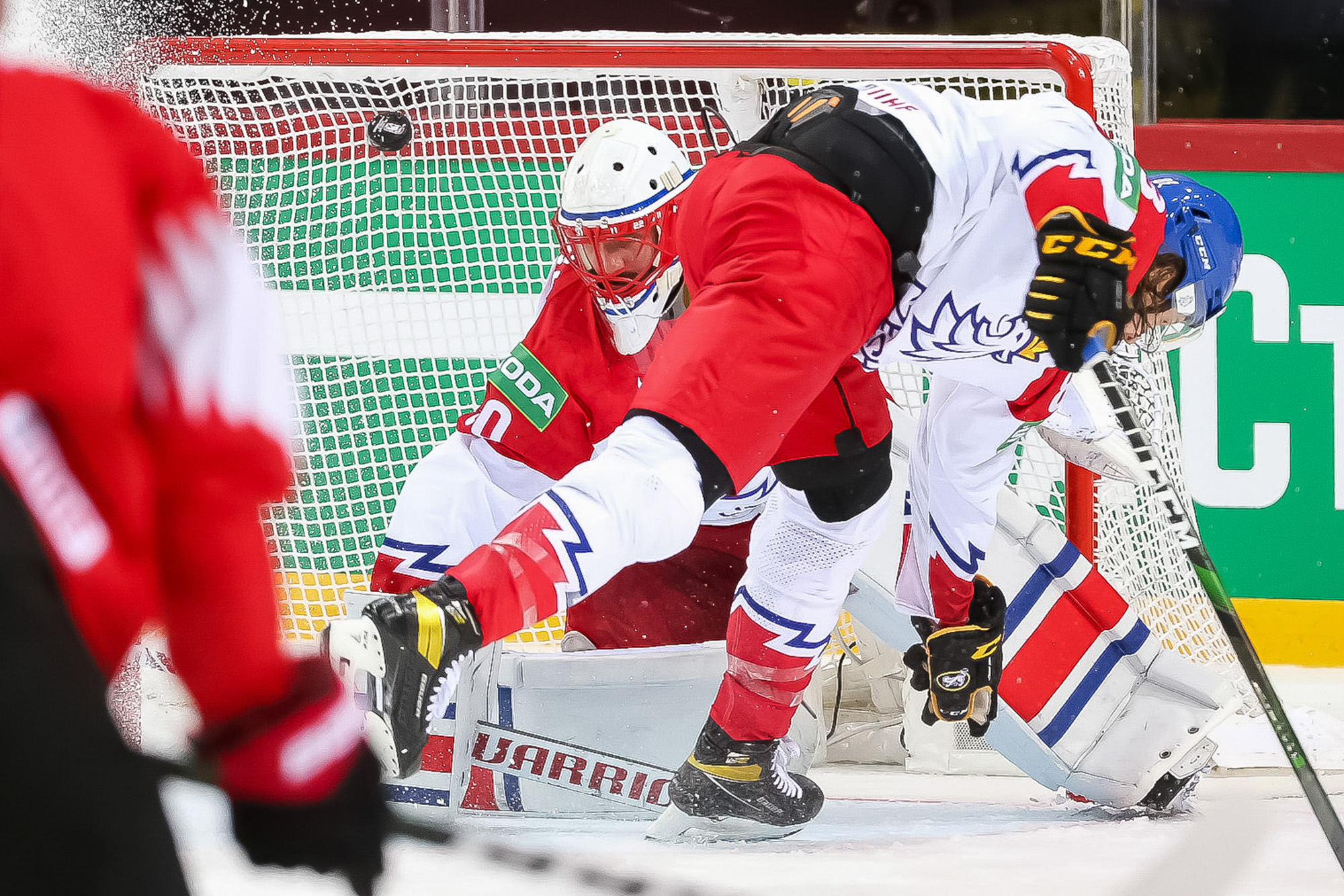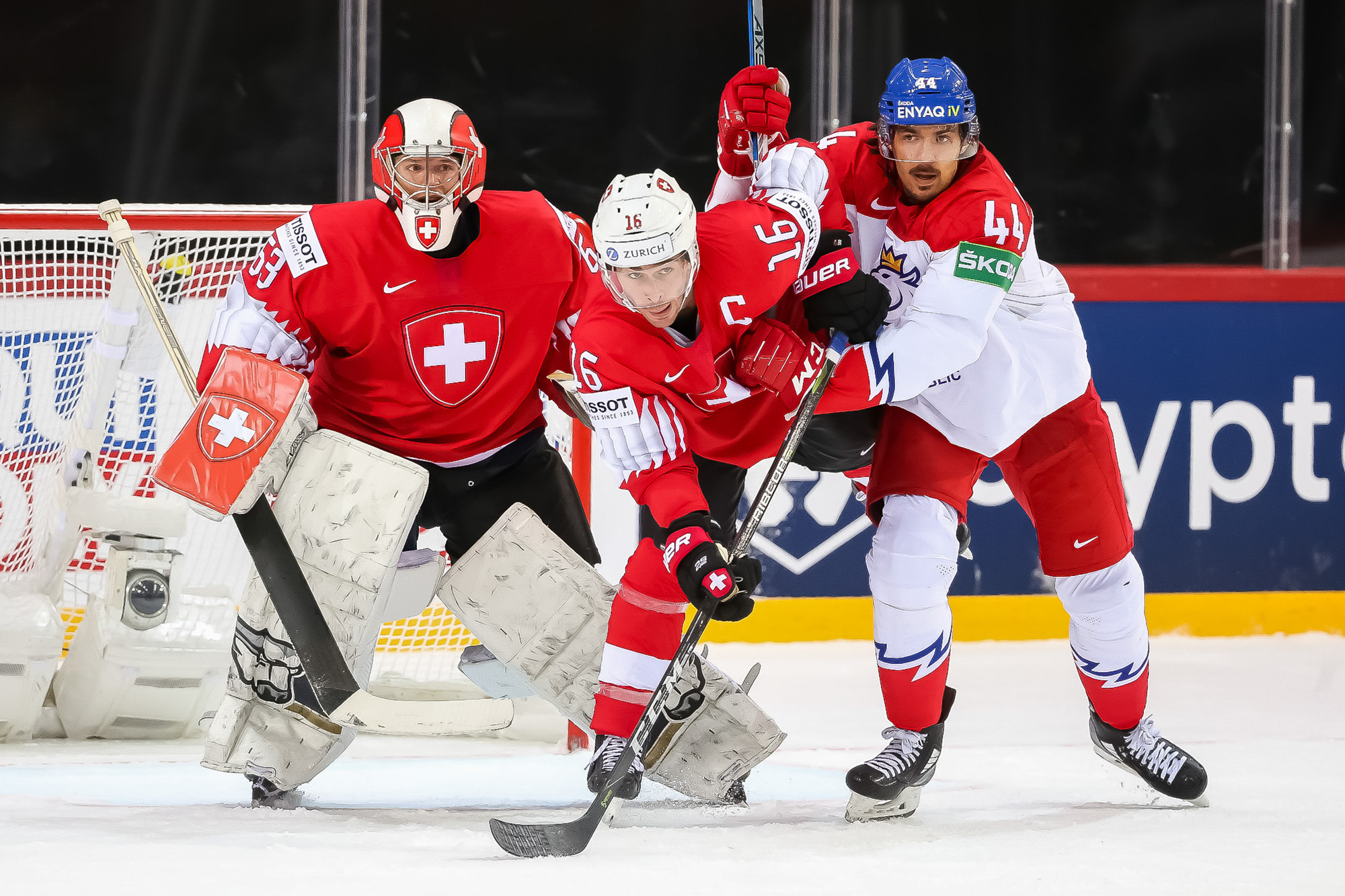 Two minutes later, the Swiss tied it on their own man advantage. This time a long point shot from Hofmann beat Simon Hrubec over the glove at 17:09. In the final minute, Hrubec kept the game 1-1 with a great left-pad save off a deflection from Vincent Praplan in front.
