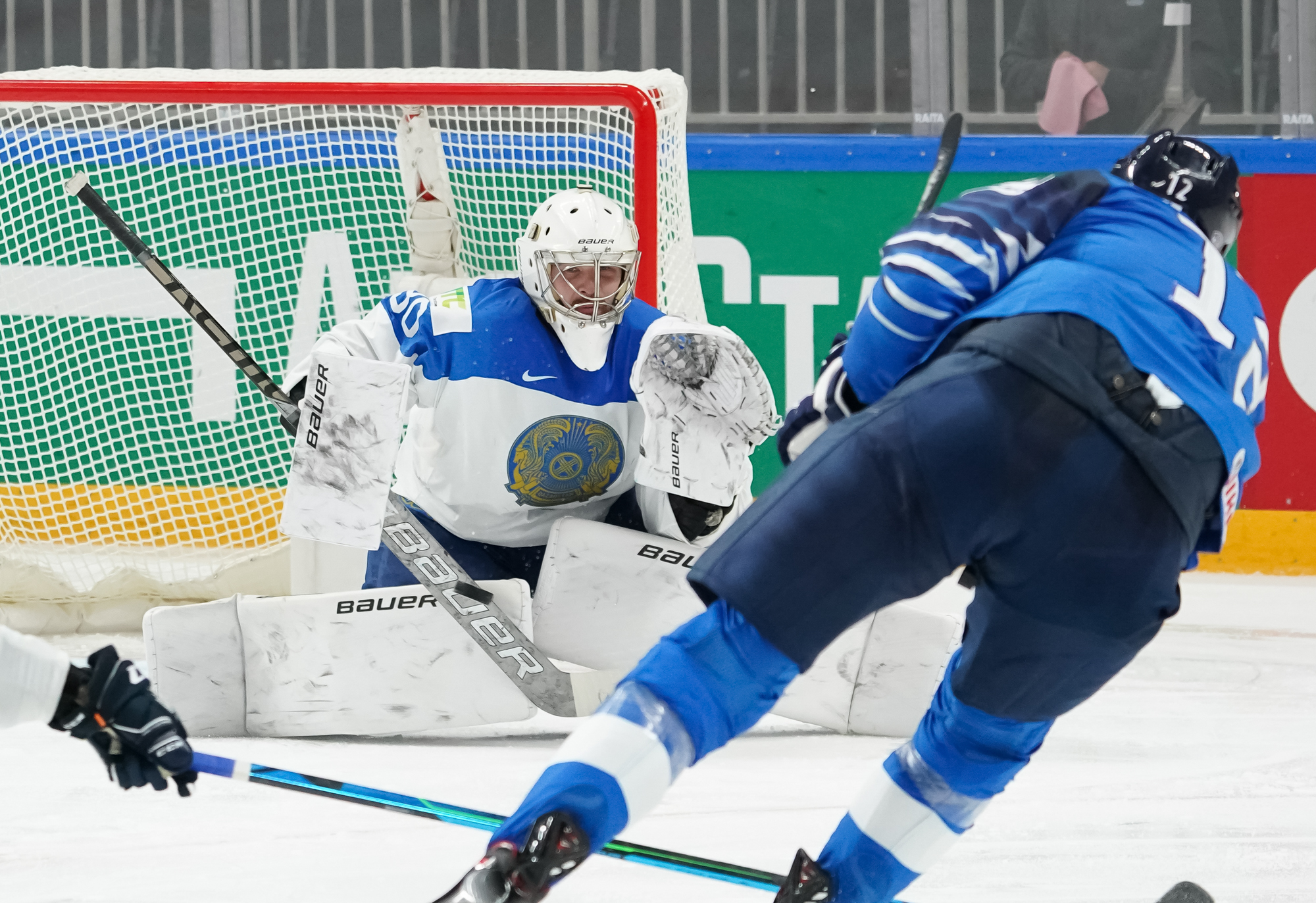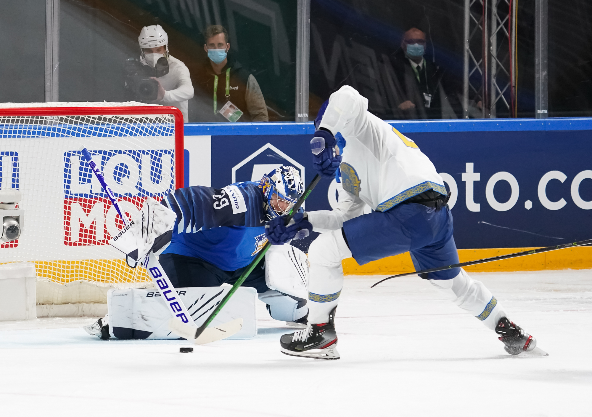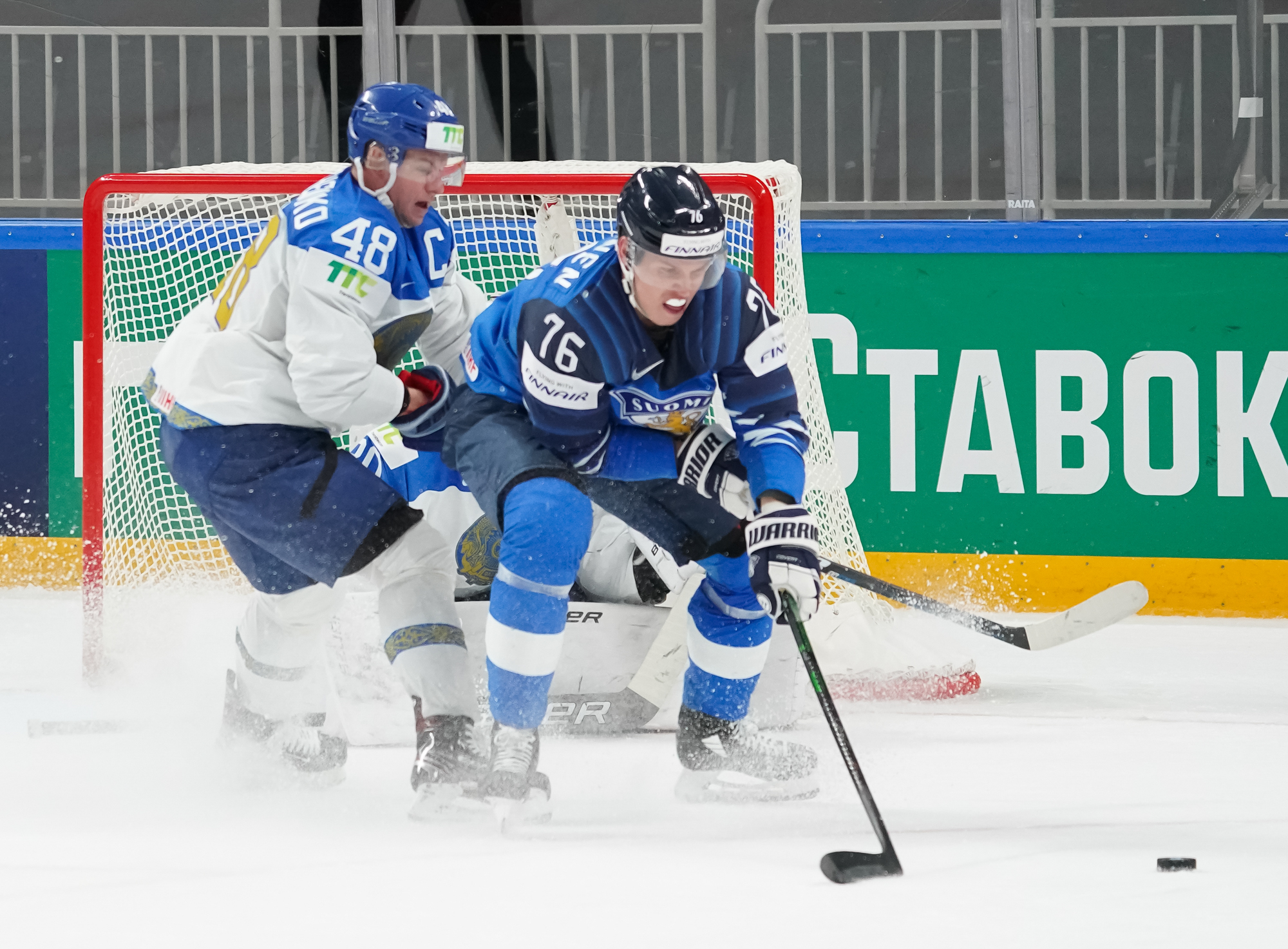 The Finns bombarded Boyarkin with heavy traffic in front with under three minutes remaining. The ice opened up for 4-on-4 play with Jere Innala and Kazakhstan's Viktor Svedberg sent off for rough stuff with 2:36.