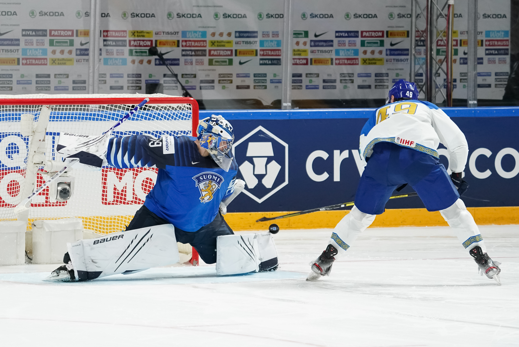Finland outshot Kazakhstan 51-20, including a 15-1 gap in the scoreless first period.