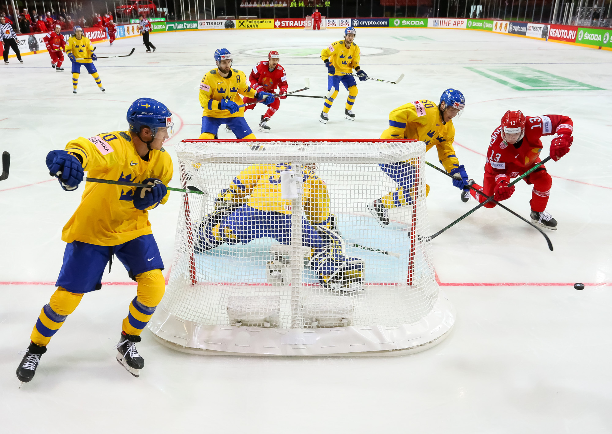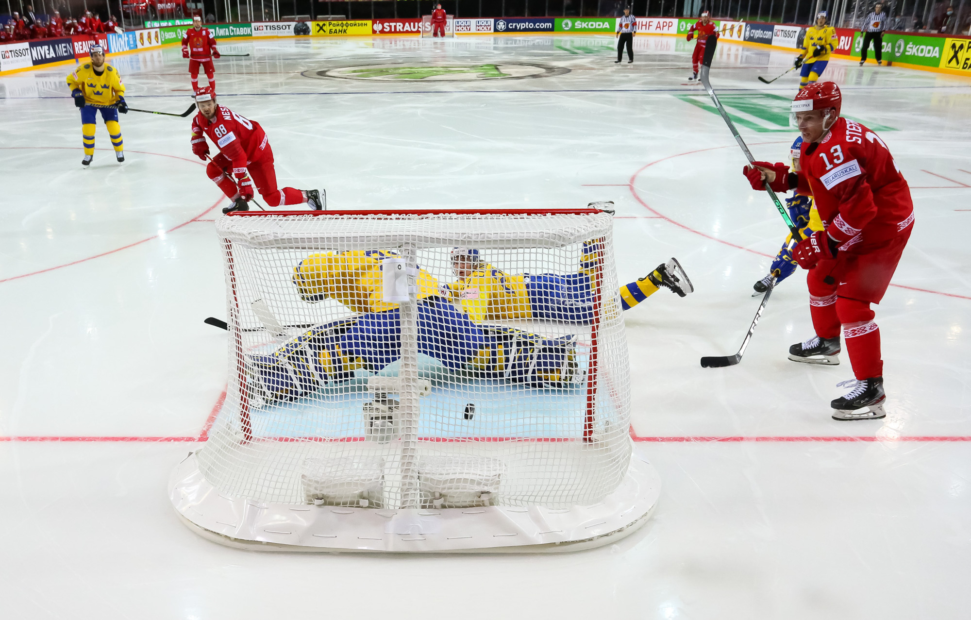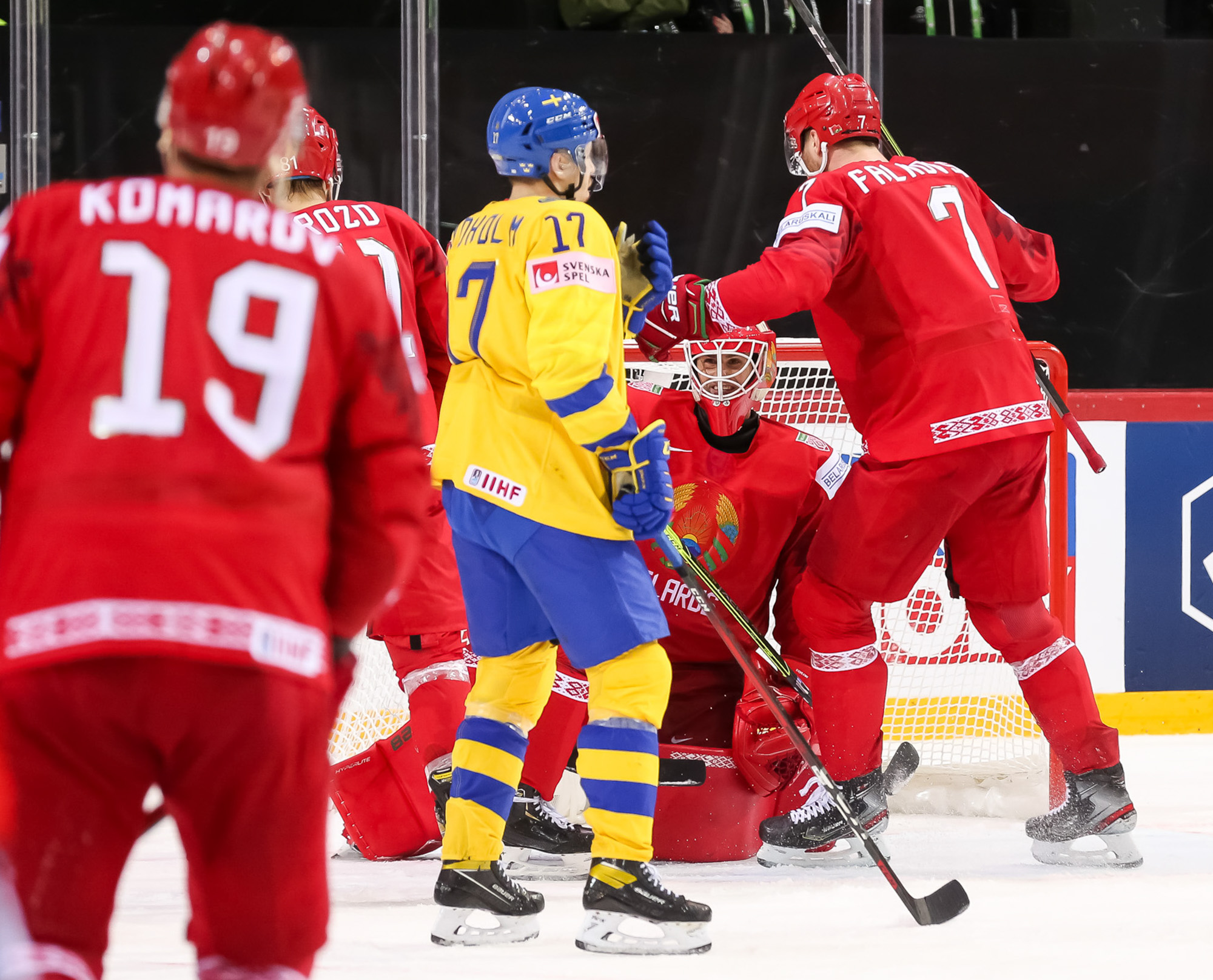 With Sweden a little over two minutes away from its first World Championship blank since the 2016 quarter-final against Canada, Johan Garpenlov called a time-out and called goalie Adam Reideborn to the bench in favour of an extra attacker. However, Belarus lined up its tight-knit defence to close the door on Sweden and run down the clock on a famous victory.