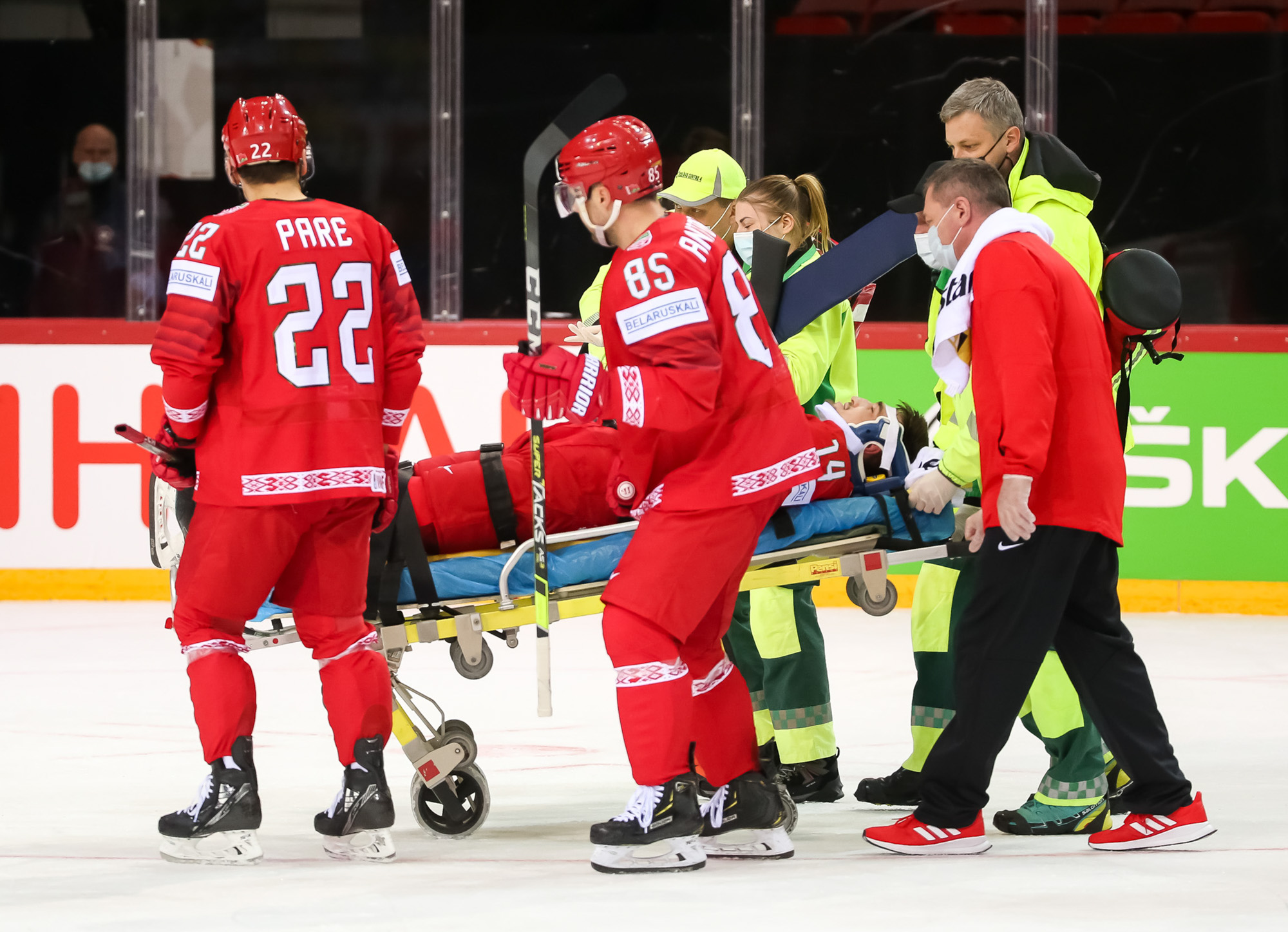 Belarus suffered a blow shortly afterwards when experienced defenceman Yevgeni Lisovets was stretchered off the ice following a collision with Carl Klingberg, who scored twice in the loss to Denmark. The Swedish forward also picked up a knock in the first period and remained in the locker room after the intermission. Lisovets went to hospital and the Belarusian camp is waiting for more details about his condition and his availability for the rest of the tournament.