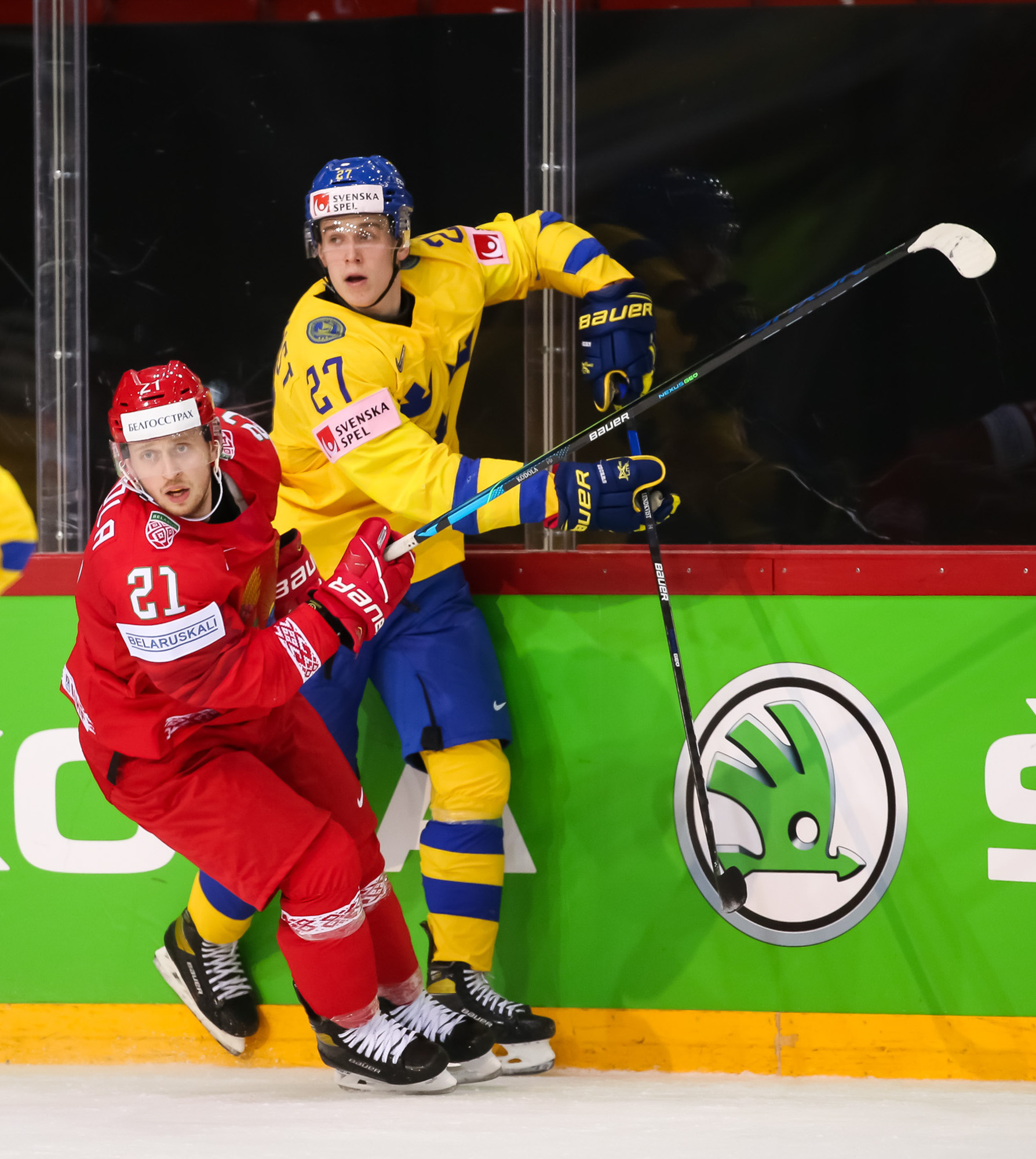 If that was a warning, it went unheeded. Belarus started the third with the opening goal as Sweden’s defence got in a tangle and left German Nesterov all alone in front of the net. Stefanovich picked him out between the hash marks and with time and space to pick his spot, the HK Gomel forward gave his team the lead.