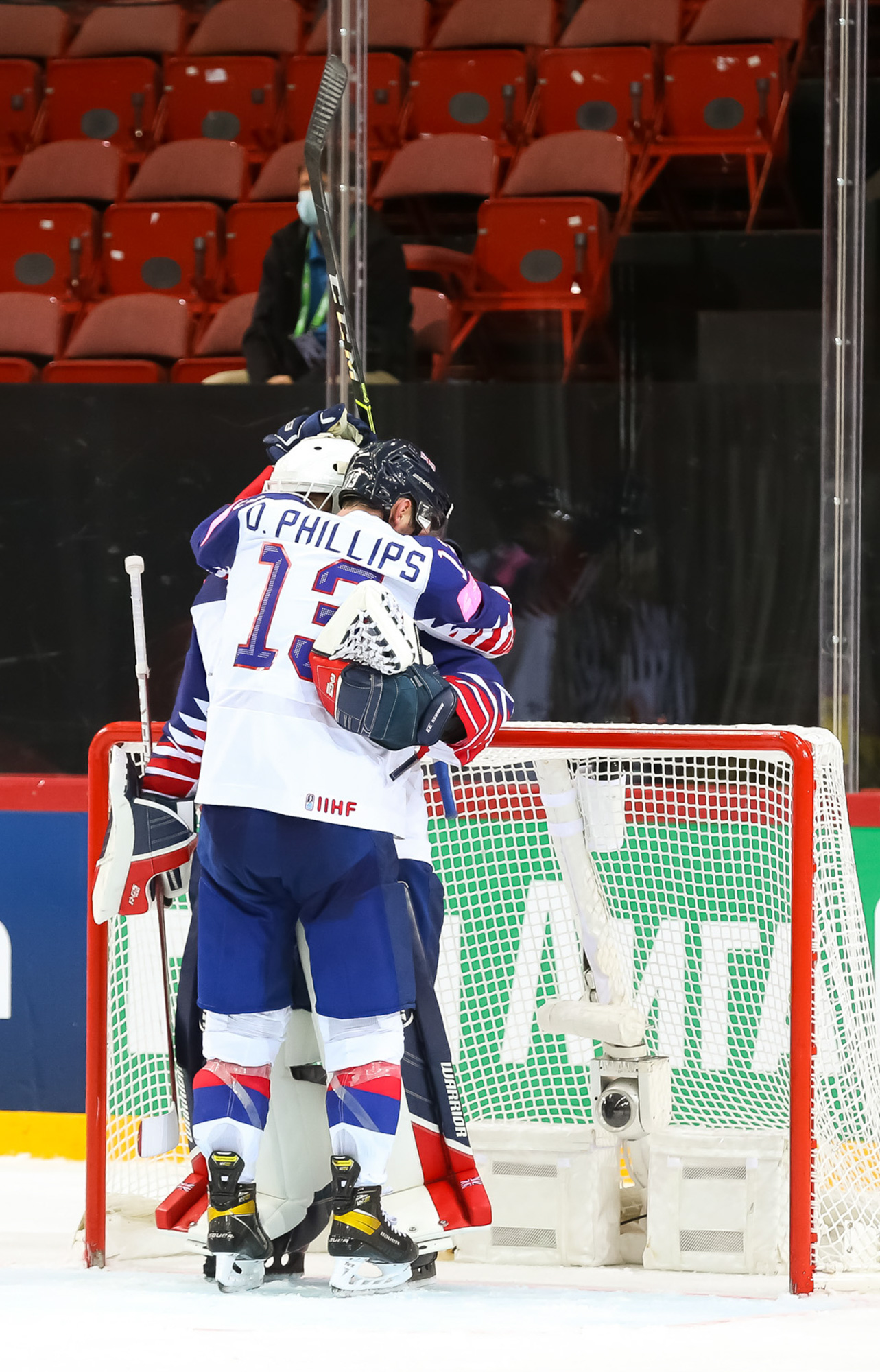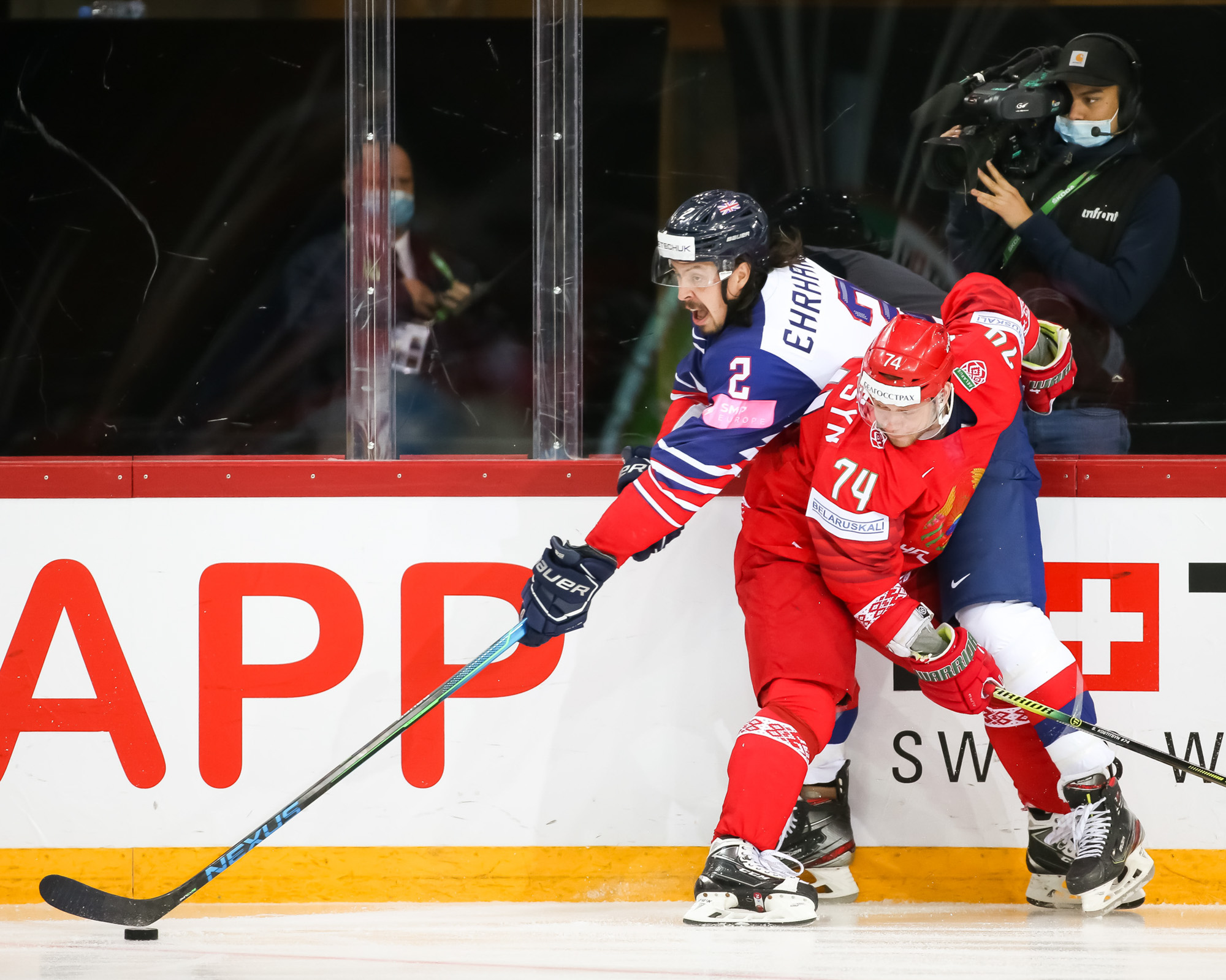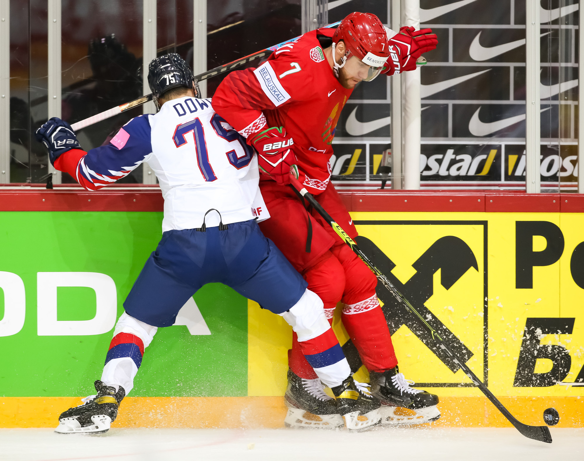 The middle frame started slowly, but exploded into life at the midway point. Belarus got its first power play of the game and, just as Myers was returning to the ice, tied the game when Vladislav Kodola followed up the rebound from his own shot to beat Bowns.