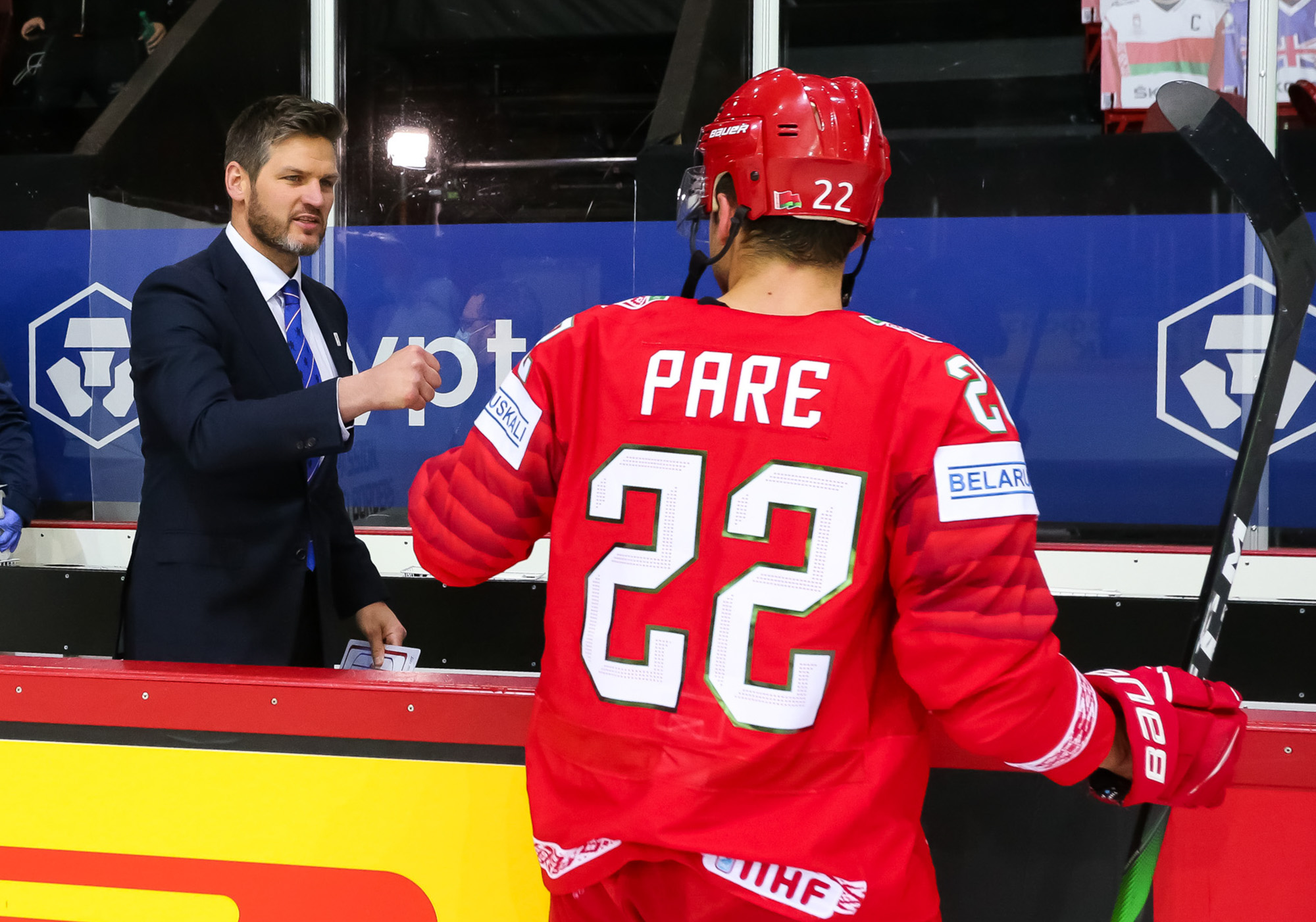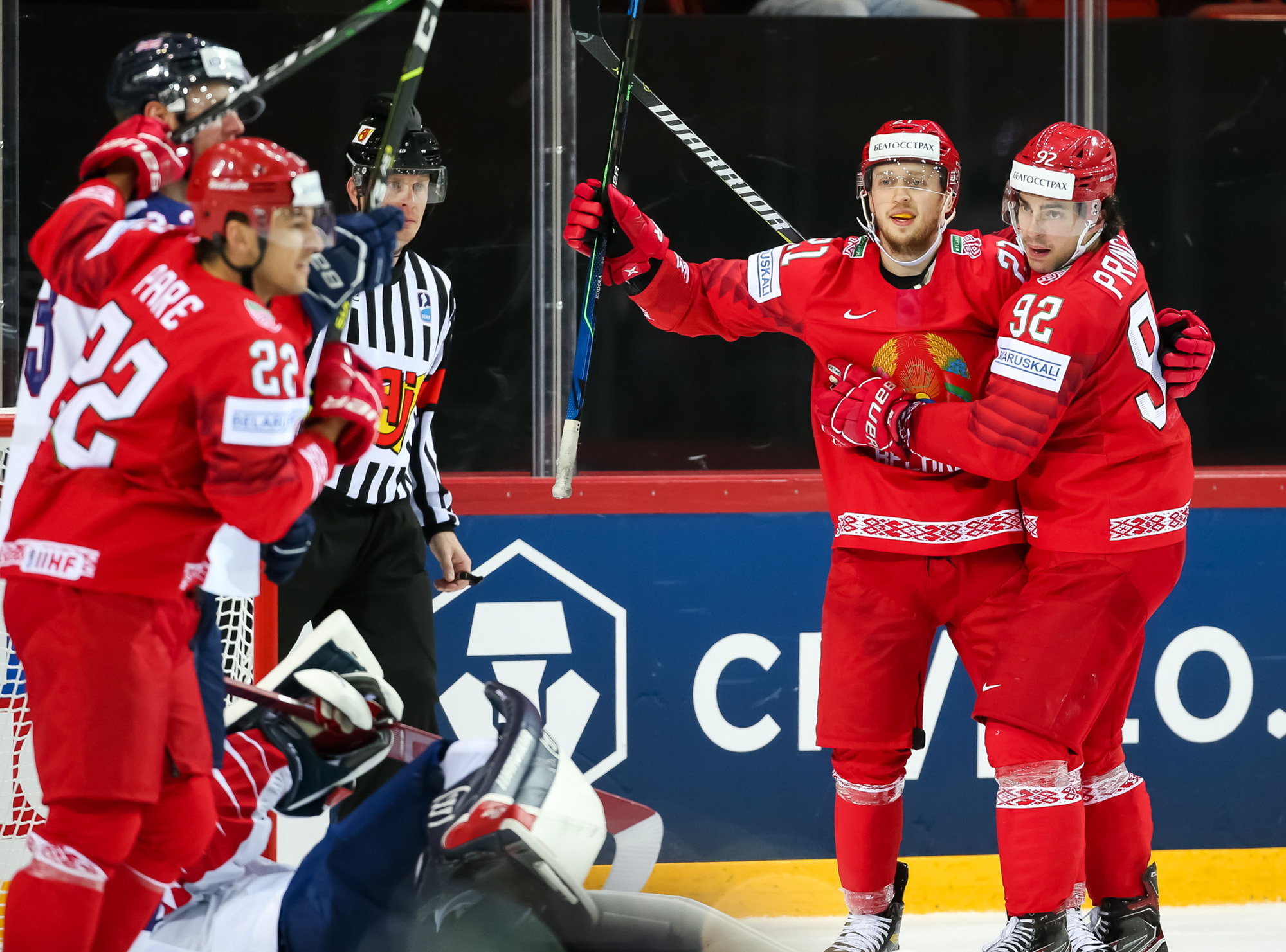 Then Belarus hit the self-destruct button. A penalty on Jonathan Phillips gave Mikhail Zakharov's team a power play, but within 30 seconds sloppy Belarusian play allowed a two-on-one counter attack that ended with a tripping call for Nick Bailen. Then, playing four-on-four, Khenkel fired an aimless pass into centre ice and Mike Hammond collected the puck and returned it with interest, firing over Taylor's glove to make it 4-1.