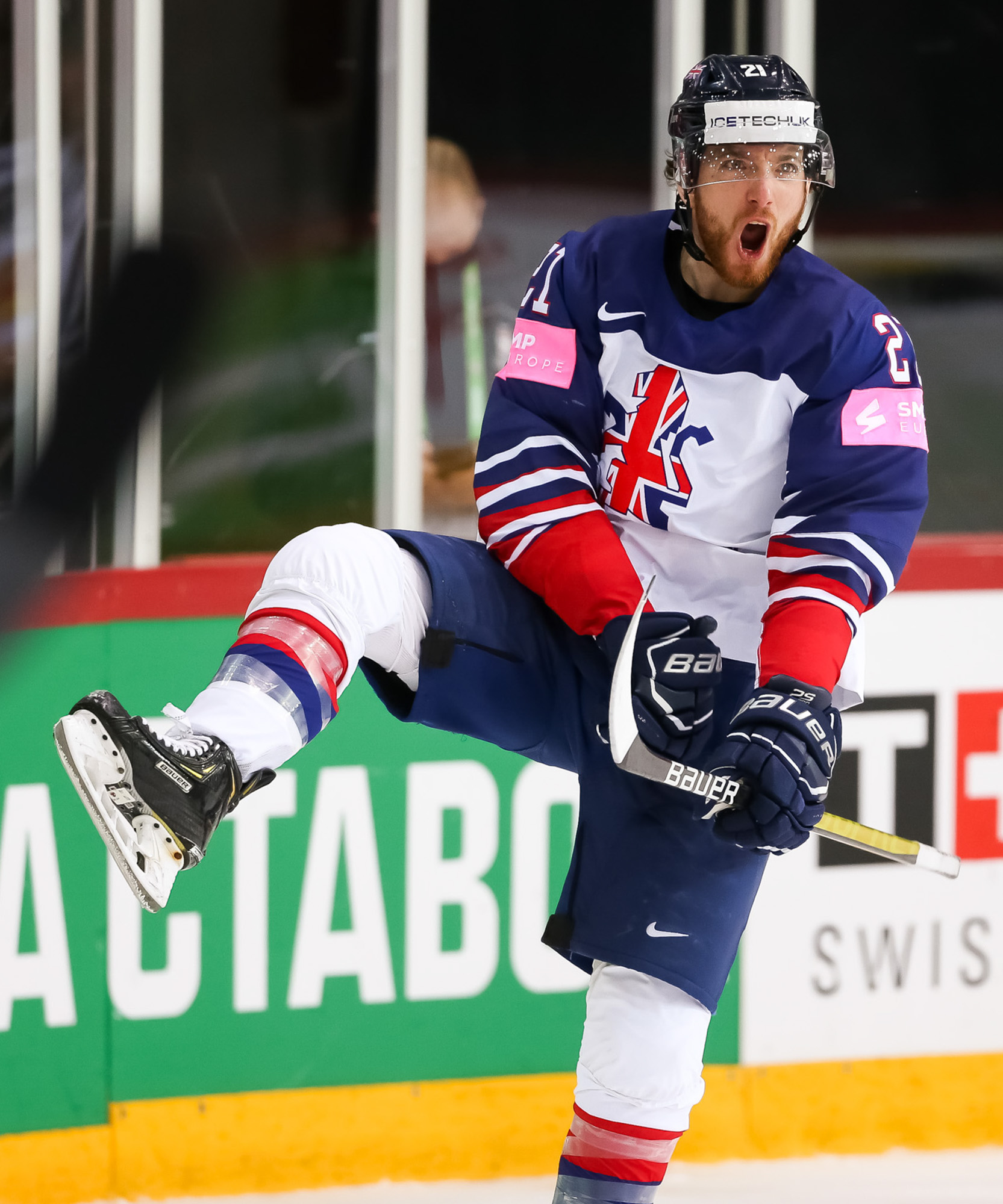 Two goals from Liam Kirk led Britain to its first victory in this year’s World Championship – and the country’s first in regulation time at this level since 1962. Kirk’s double helped to down Belarus and moved the forward level with Denmark’s Nicklas Jensen in the goalscoring chart.