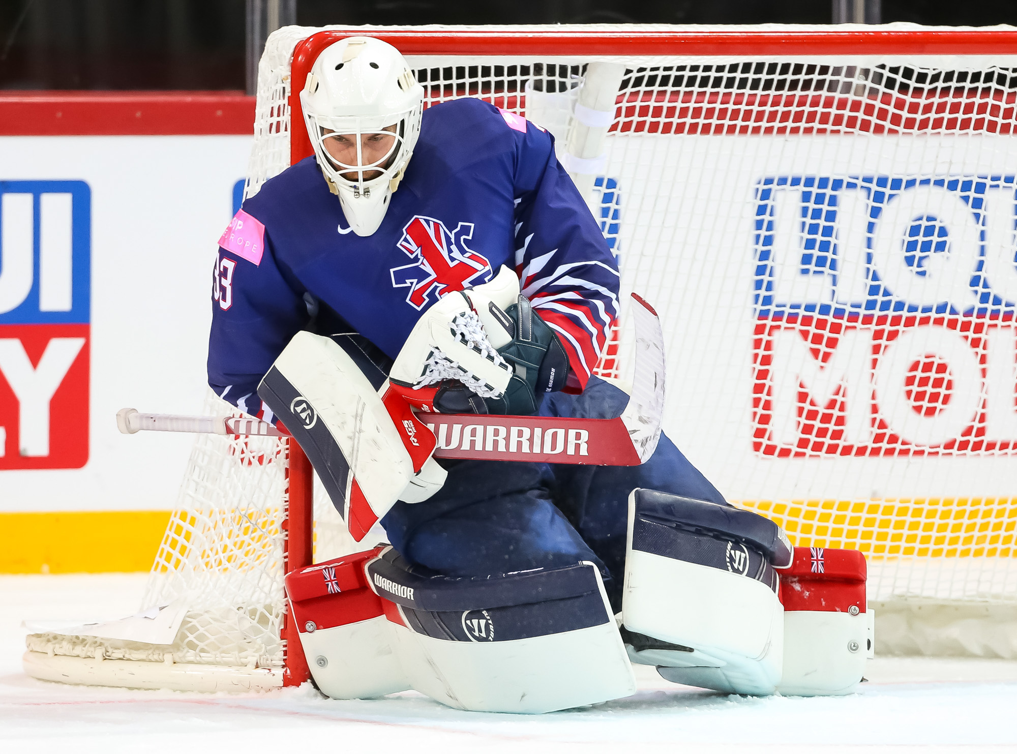 Sweden’s domination continued – by the end of the second session it led the shot count 42-8 as Bowns had yet another busy game between the piping for Britain. And the third period saw more Swedish offence as the Tre Kronor enjoyed more than 70% puck possession at times and finished with 56 efforts at the hardworking Bowns. The reward came with seven minutes left as Mario Kempe got his second of the game, bursting through to convert the rebound from his own shot and make it 4-1.