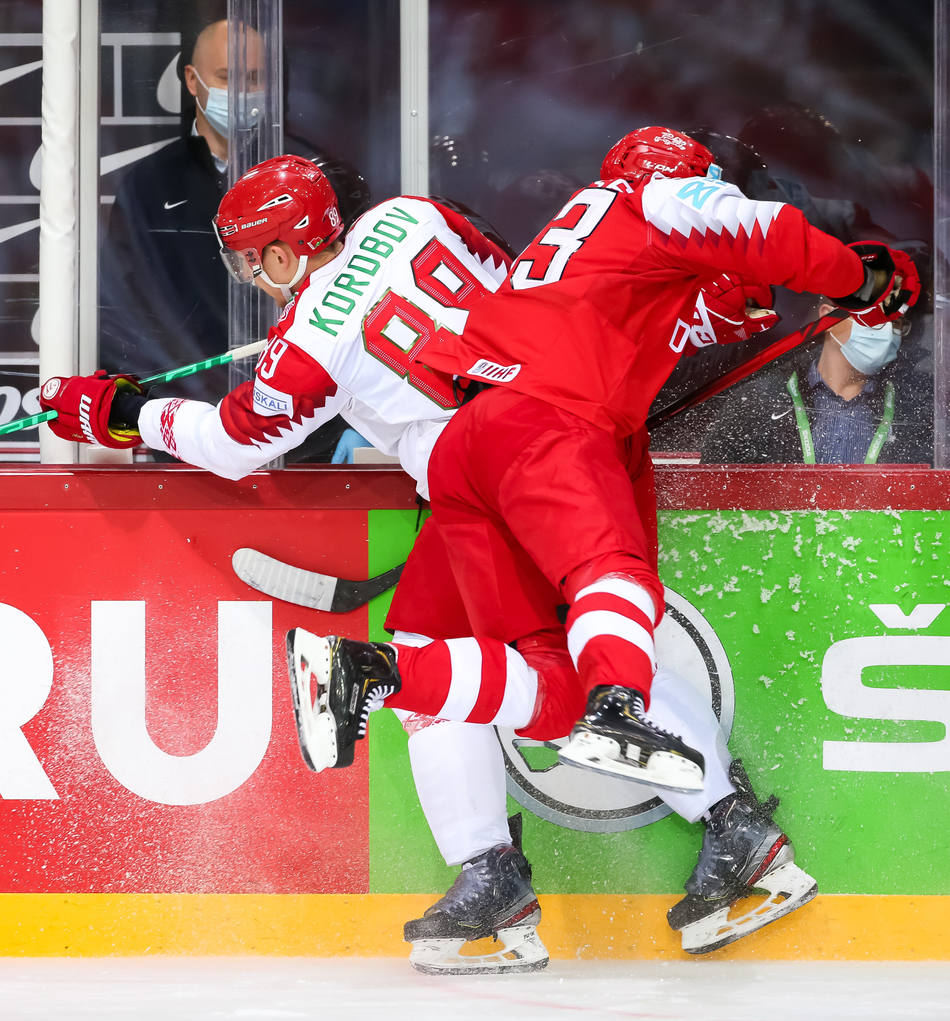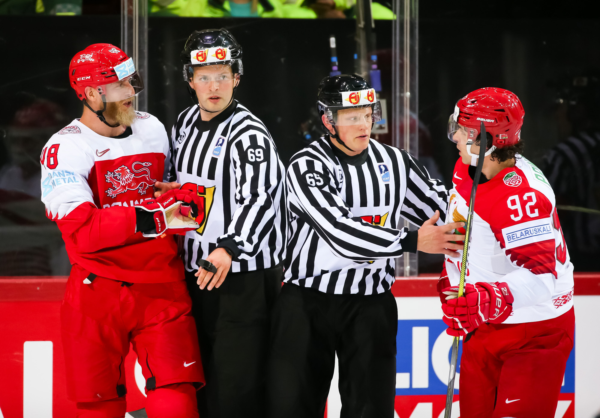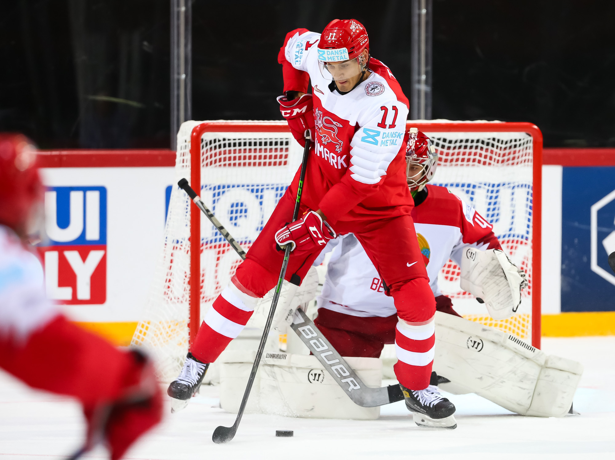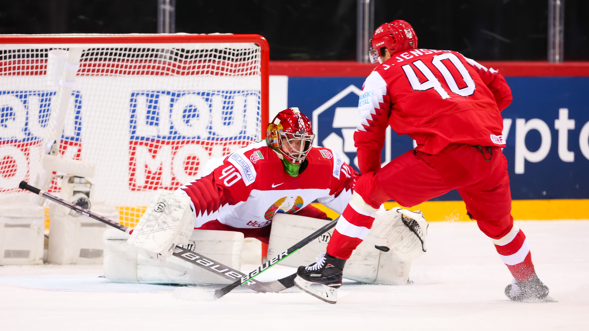 The Danes continued their dominance through the first half of the second period, but Belarus scored the only goal of the middle frame despite getting outshot 12-7. Just past the game’s midpoint, Jensen was sent off for interference, and it took Belarus just four seconds to strike. From the faceoff, the puck was passed back to Stepan Falkovski, who perfectly teed up a one-timer right in Mikhail Stefanovich’s wheelhouse and the Dinamo Minsk defenceman let it rip through everybody.