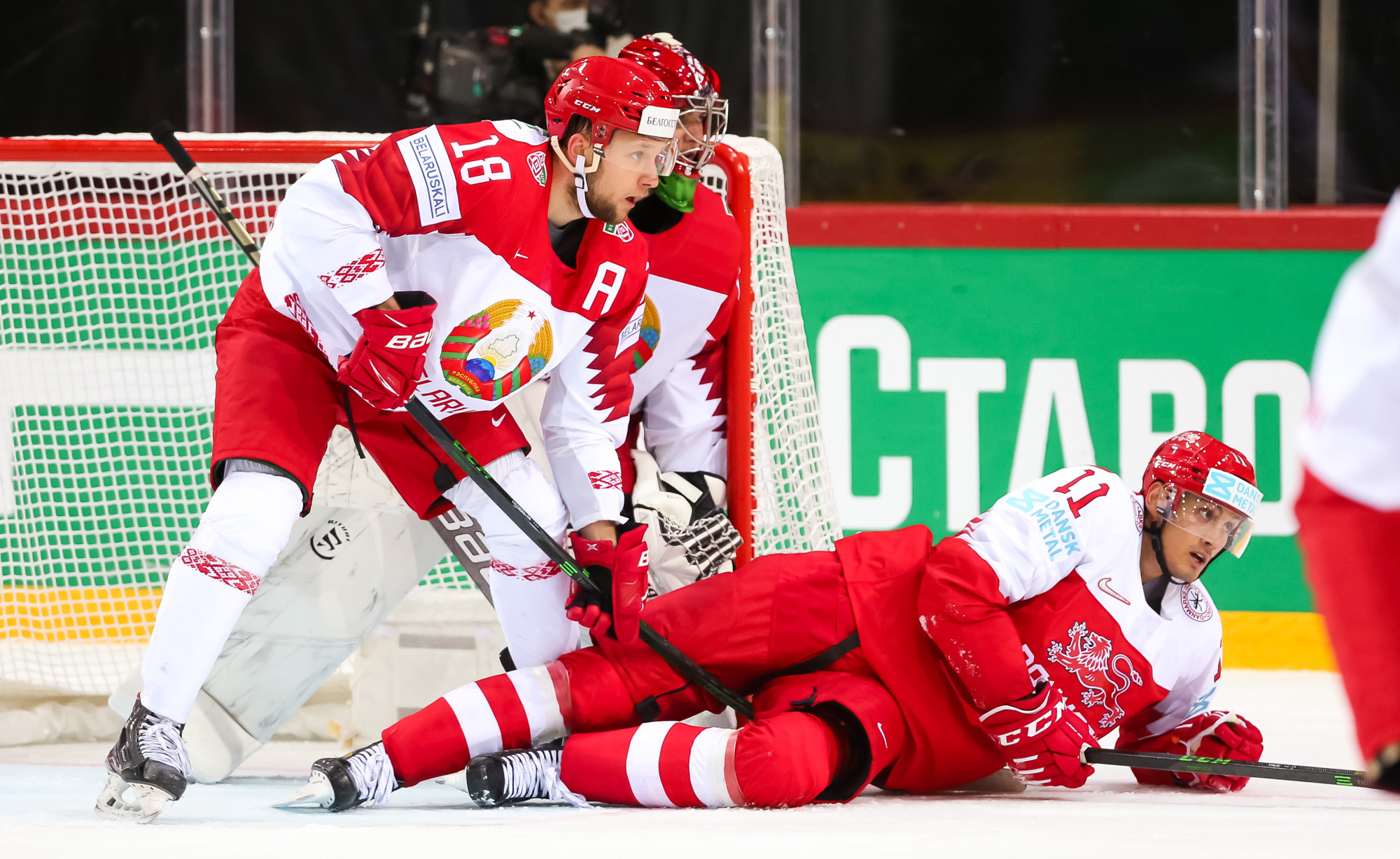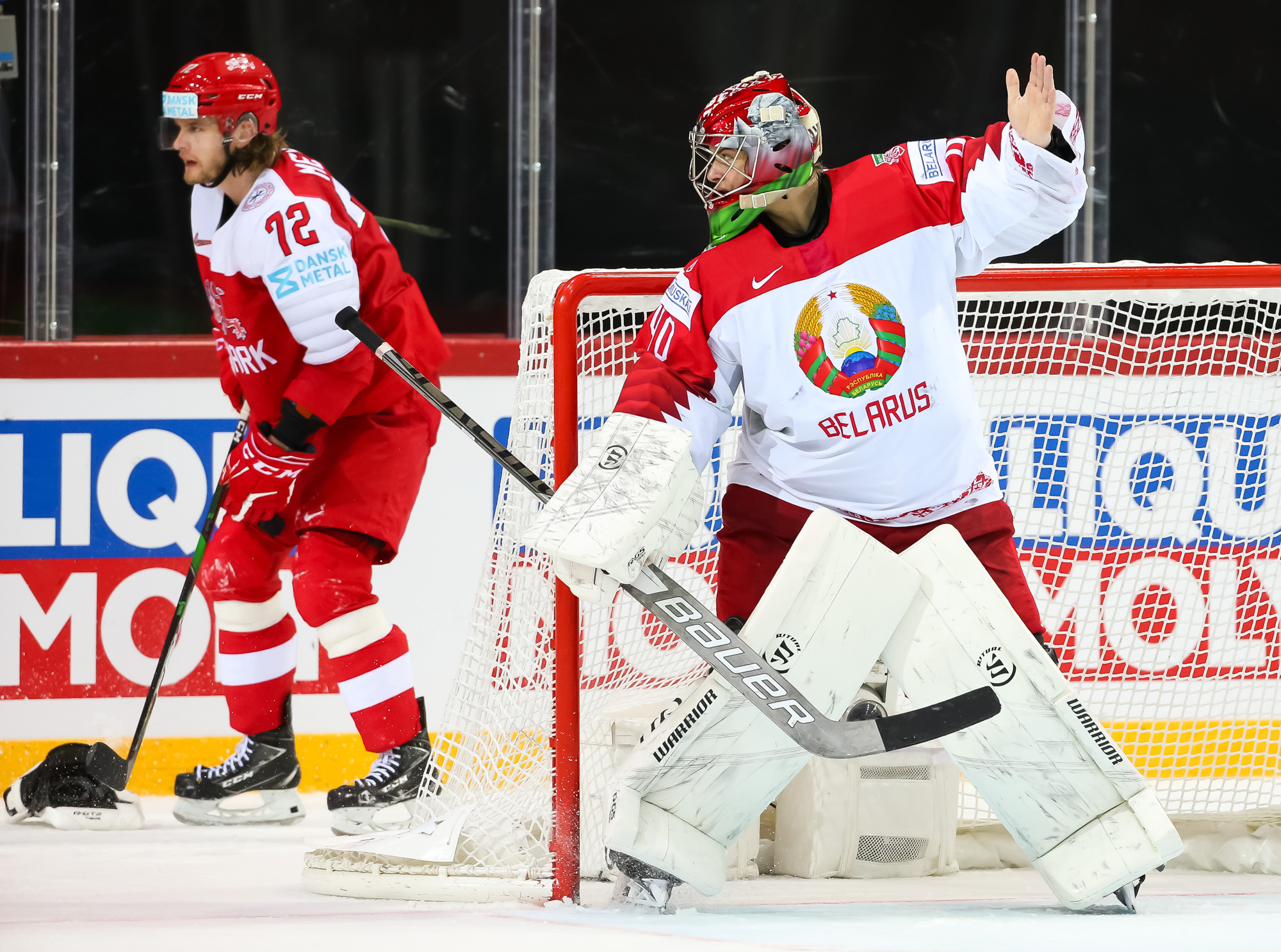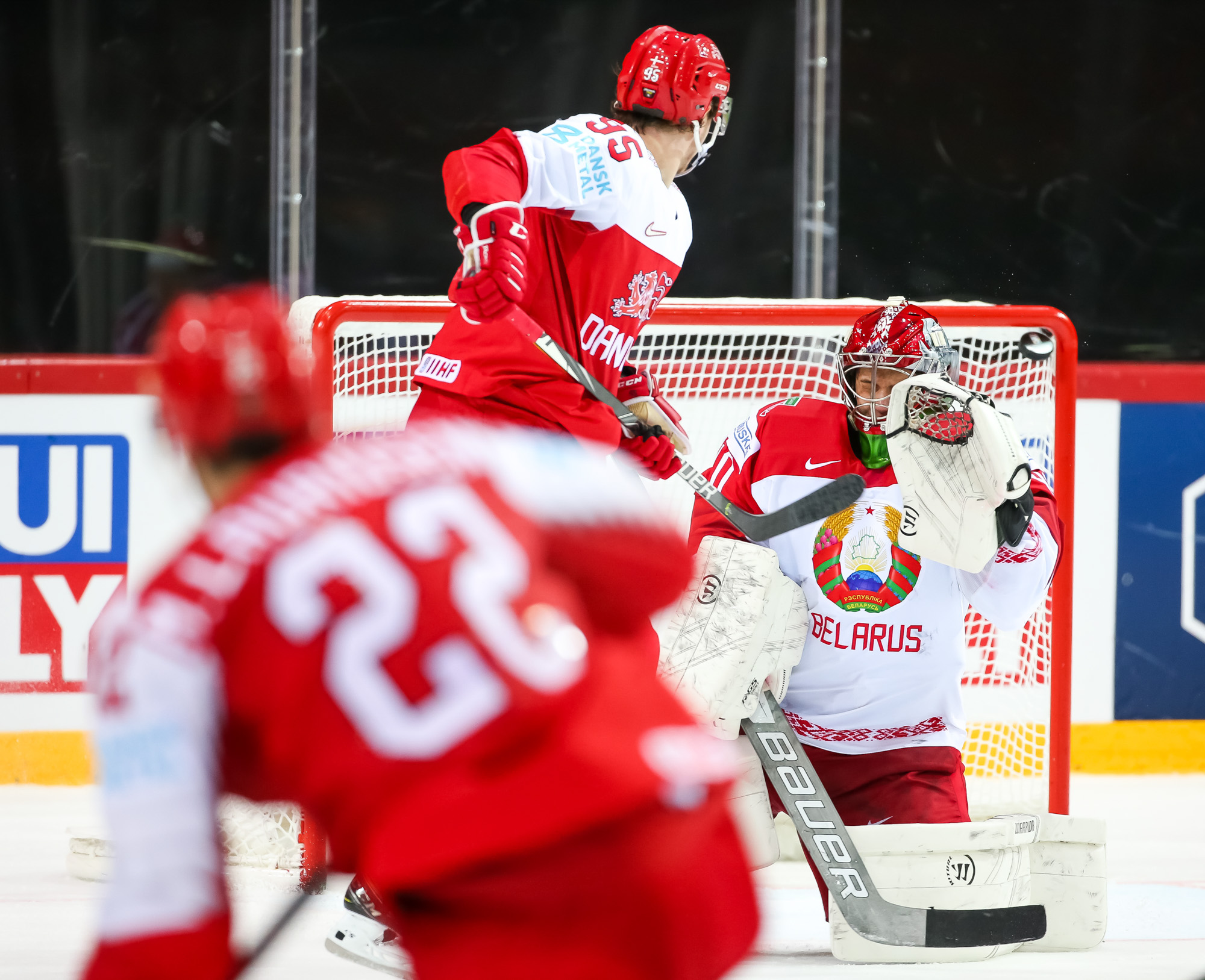 It took just a little over two minutes for Belarus to open the scoring, with Vladislav Kodola finding Artyom Demkov in full flight with a long lead pass. Demkov then made a nifty move to avoid a Danish defenceman and beat Dahm through the legs.