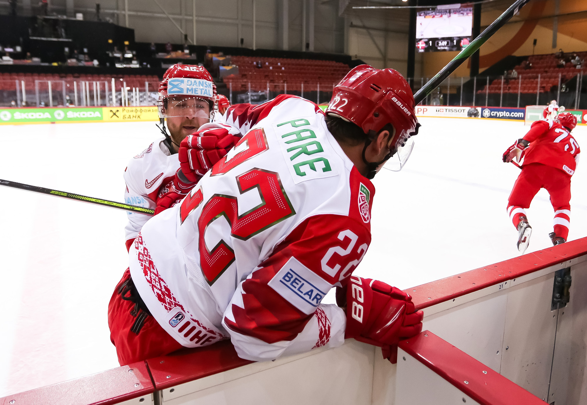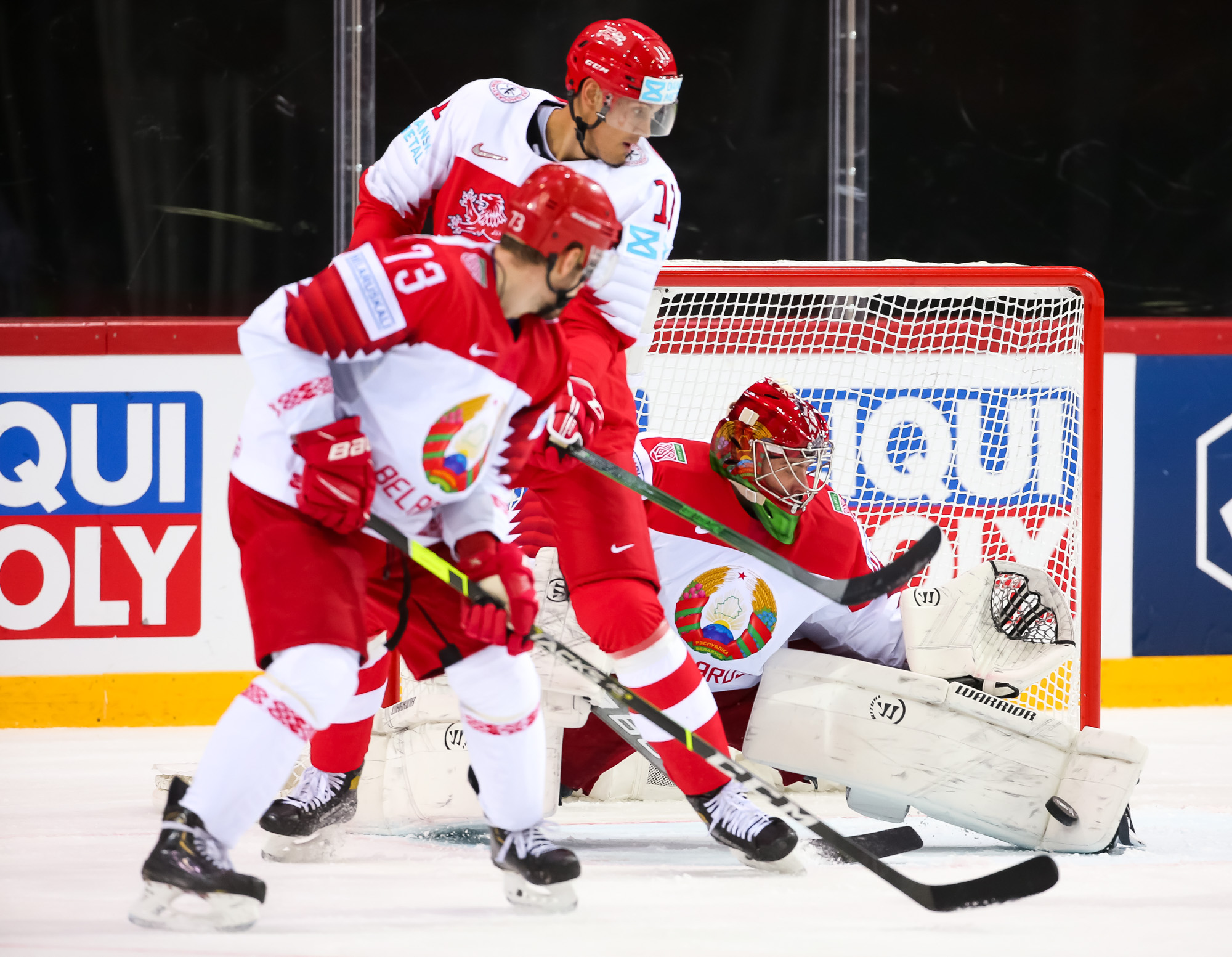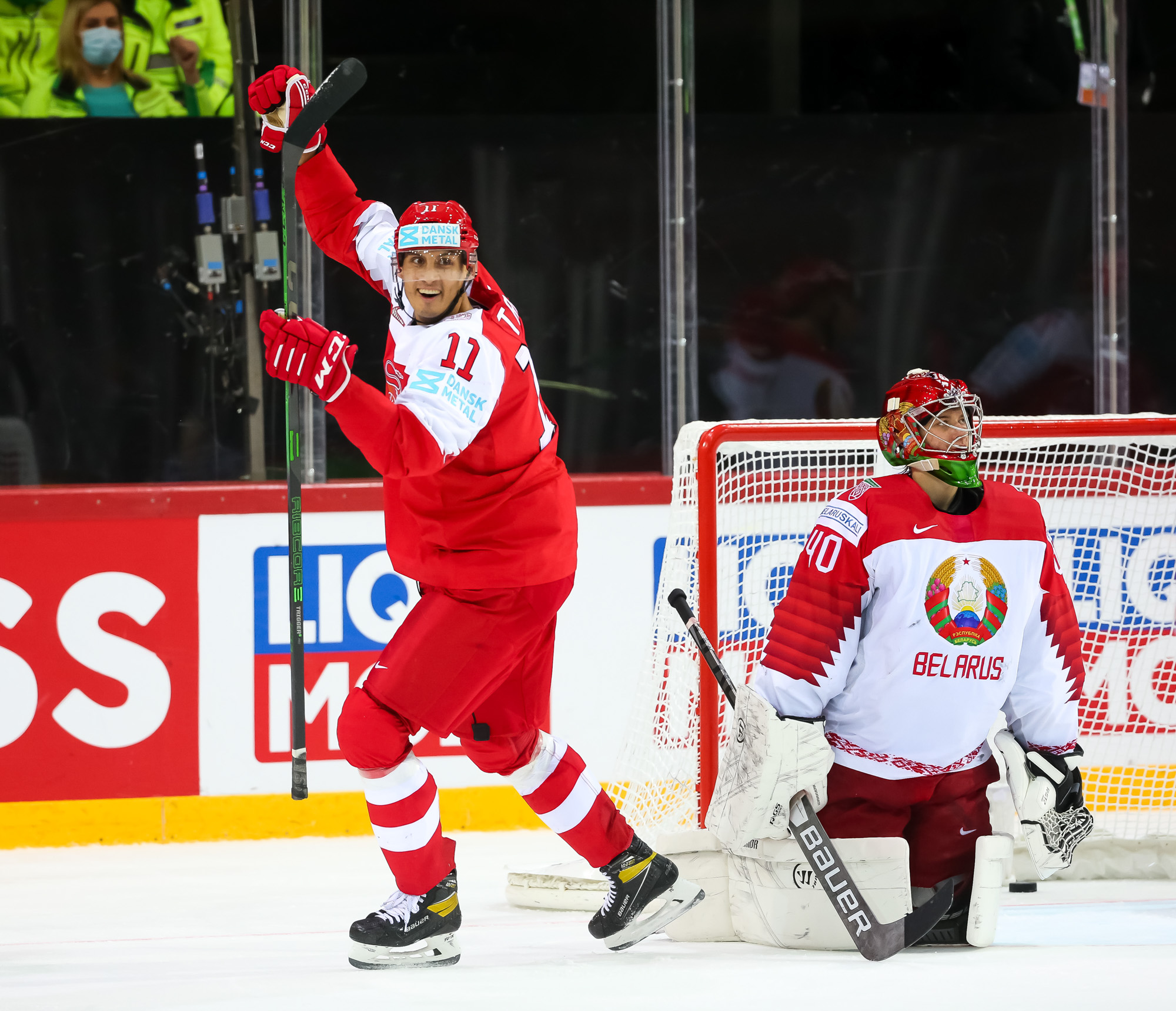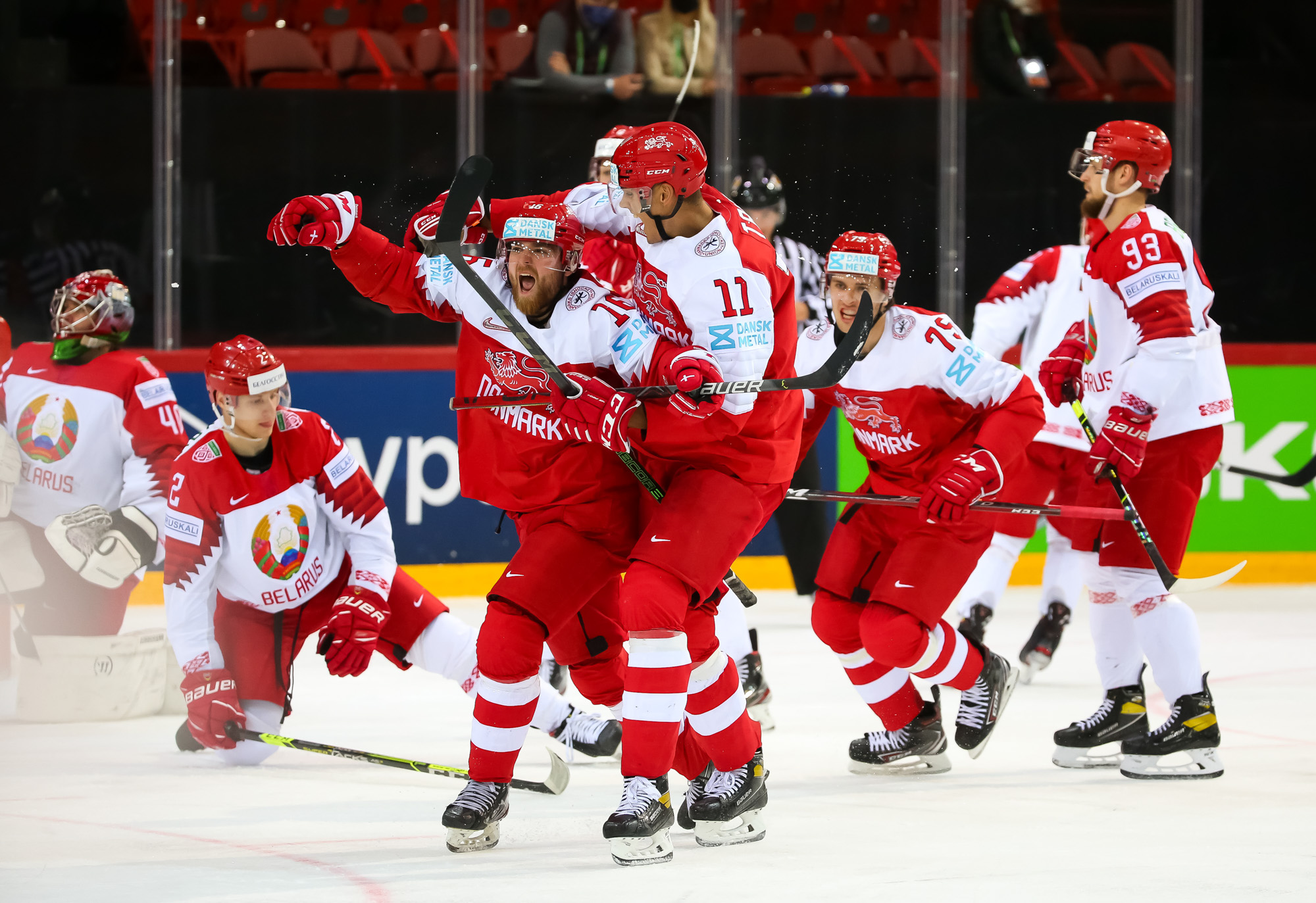 It took just a little over two minutes for Belarus to open the scoring, with Vladislav Kodola finding Artyom Demkov in full flight with a long lead pass. Demkov then made a nifty move to avoid a Danish defenceman and beat Dahm through the legs.