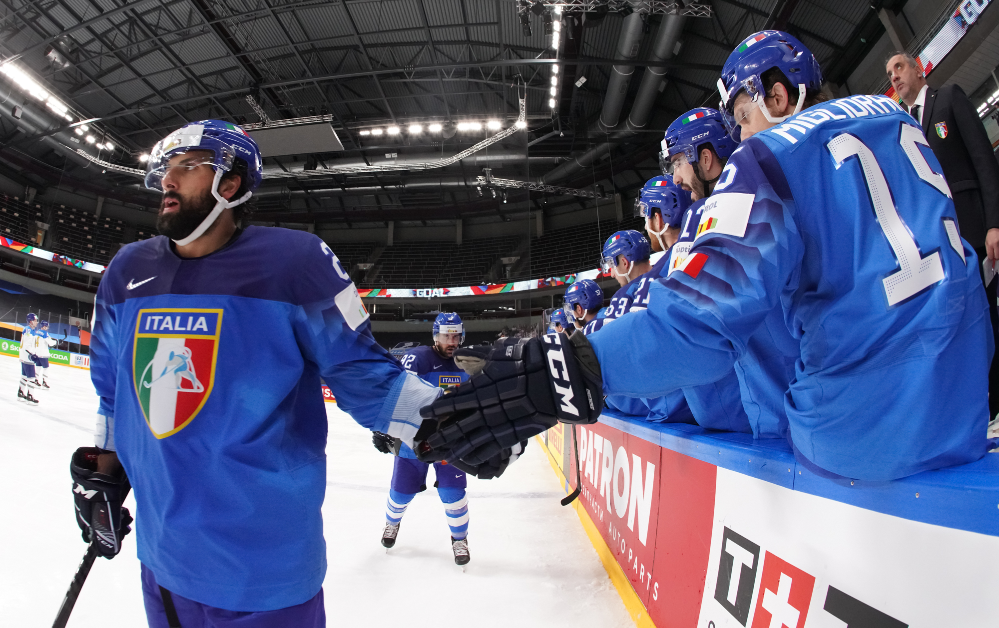 Italy drew even at 24:37 when Petan found Angelo Miceli with a backand pass, and the HC Bolzano forward made no mistake, using his long reach to beat Nikita Boyarkin on the forehand deke.