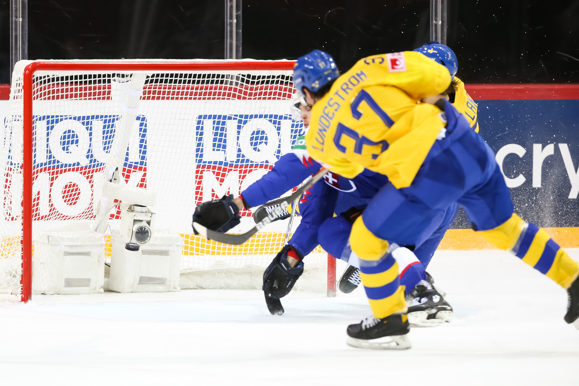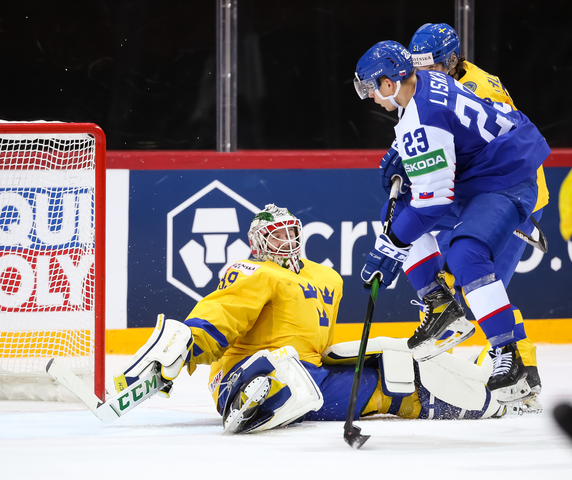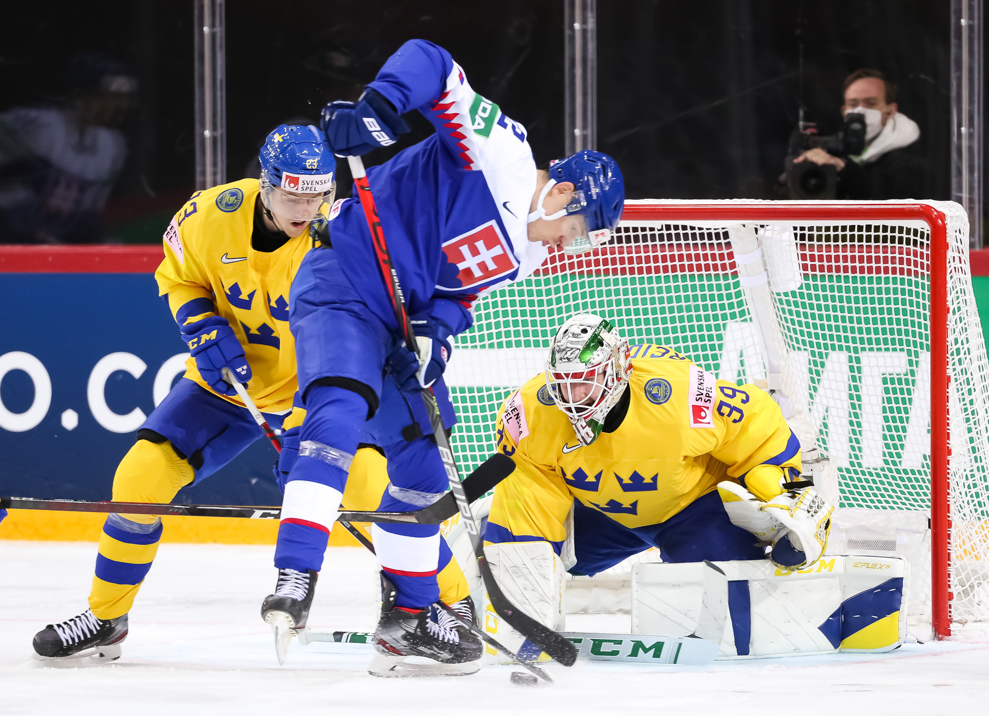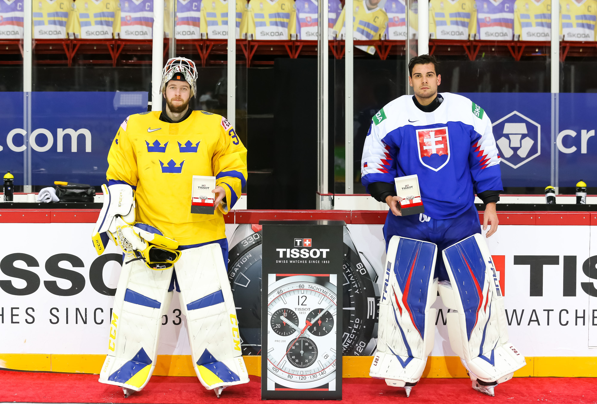 In his World Championship debut, Slovak goalie Adam Huska stopped 26 of 28 shots, while Adam Reideborn stopped 29 of 30 for Sweden.