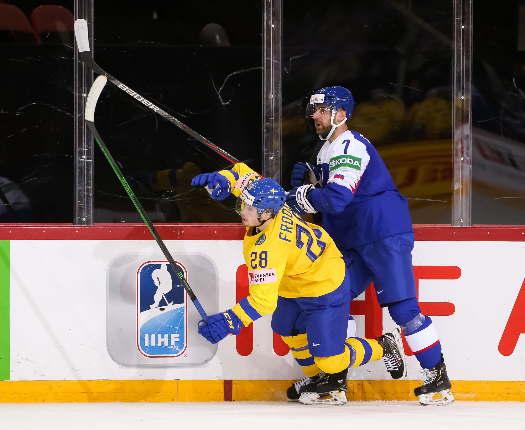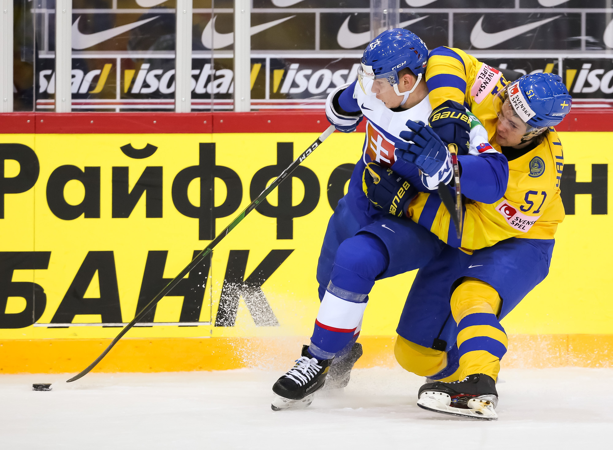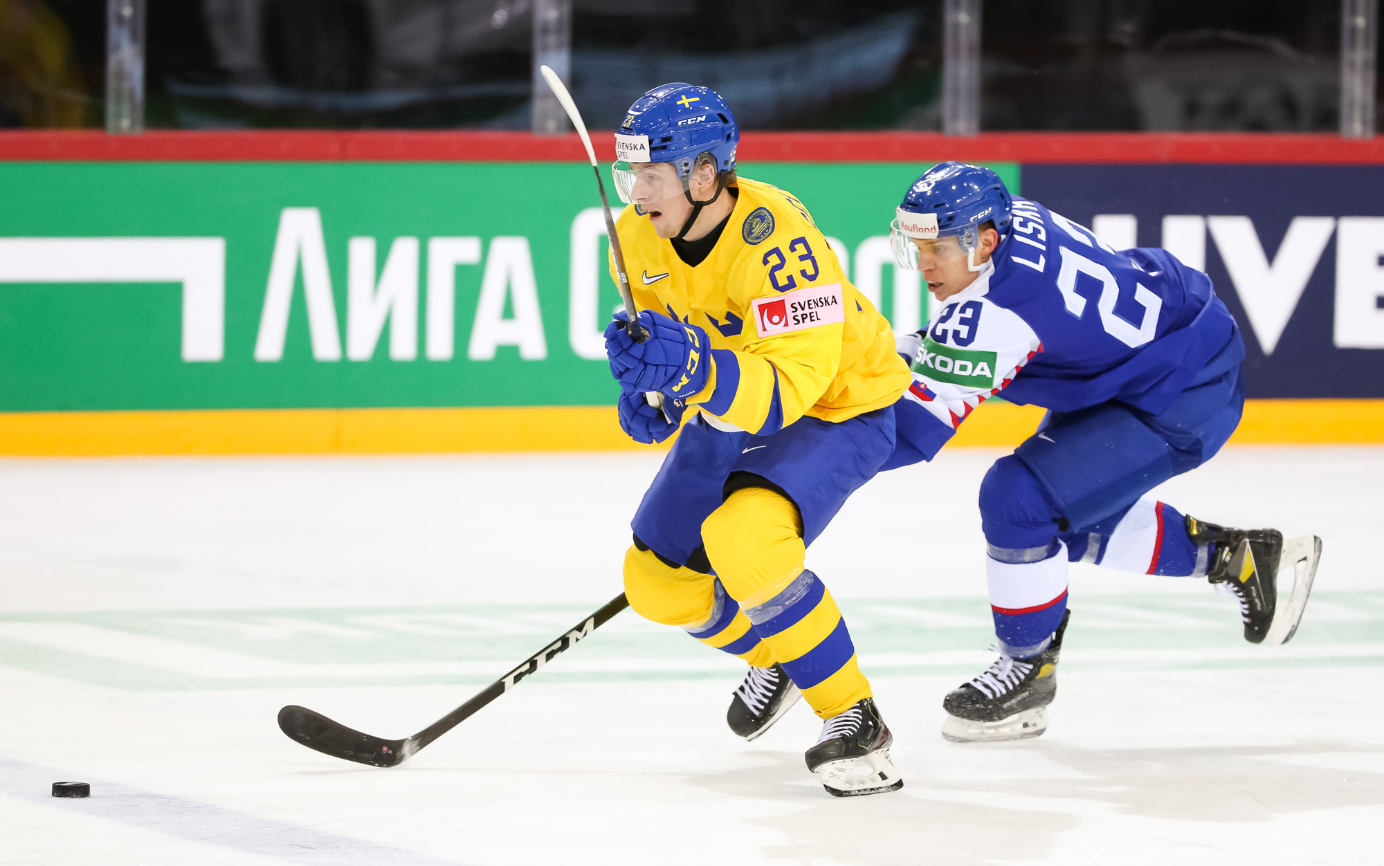 In his World Championship debut, Slovak goalie Adam Huska stopped 26 of 28 shots, while Adam Reideborn stopped 29 of 30 for Sweden.