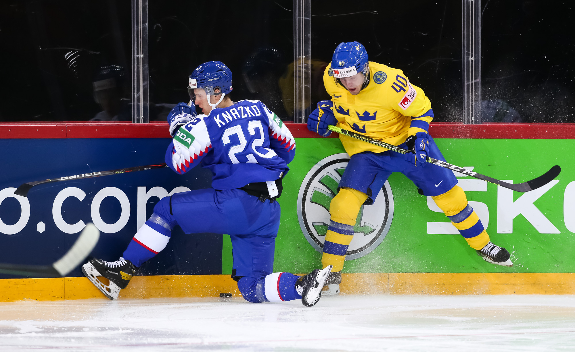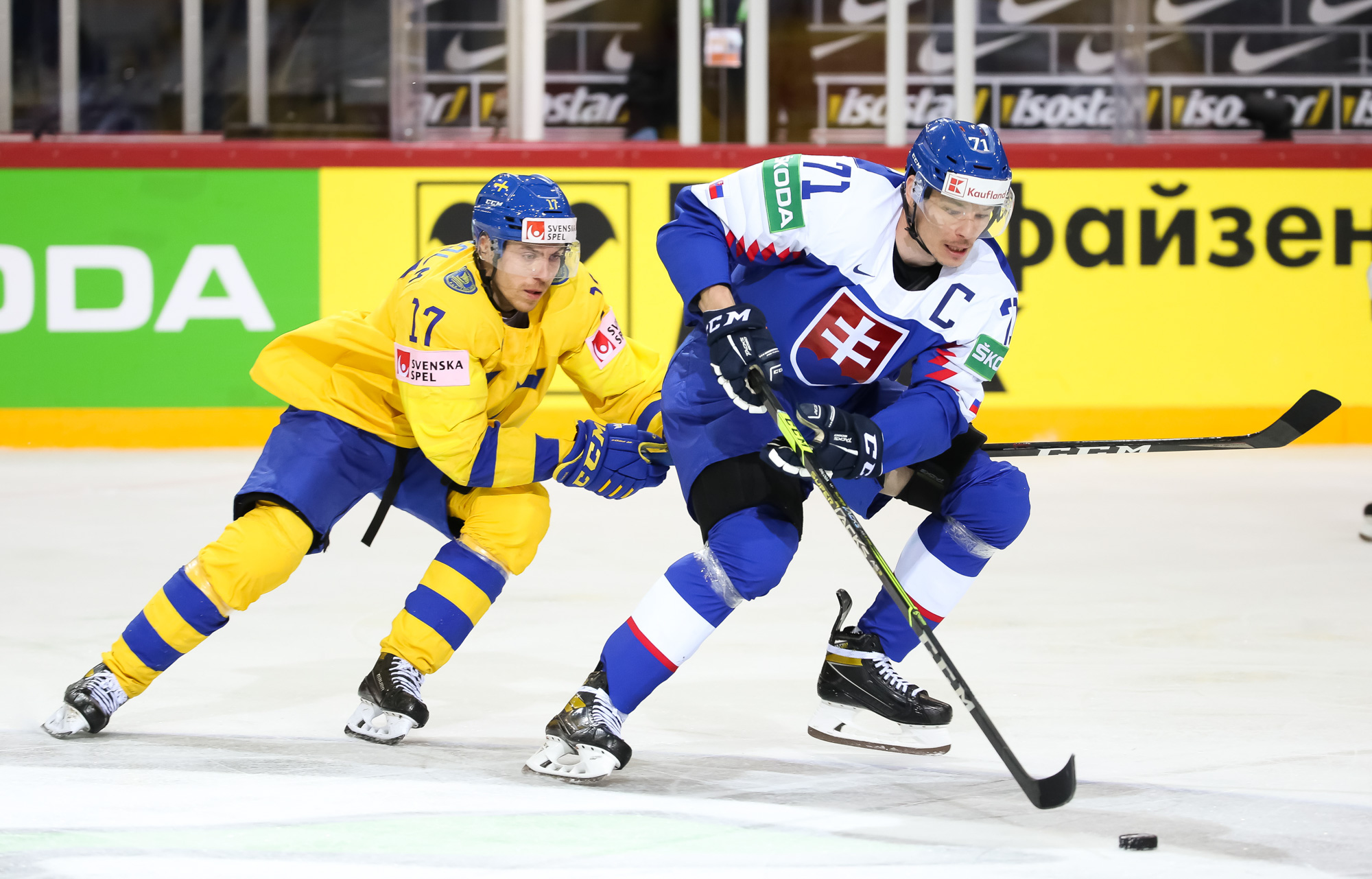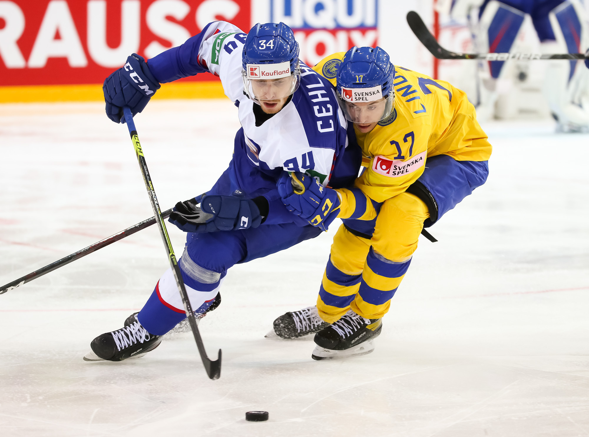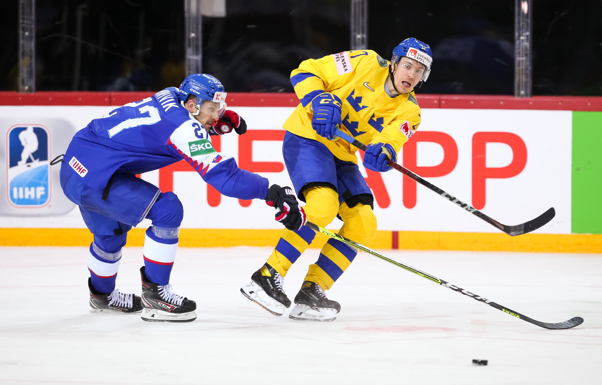 In his World Championship debut, Slovak goalie Adam Huska stopped 26 of 28 shots, while Adam Reideborn stopped 29 of 30 for Sweden.