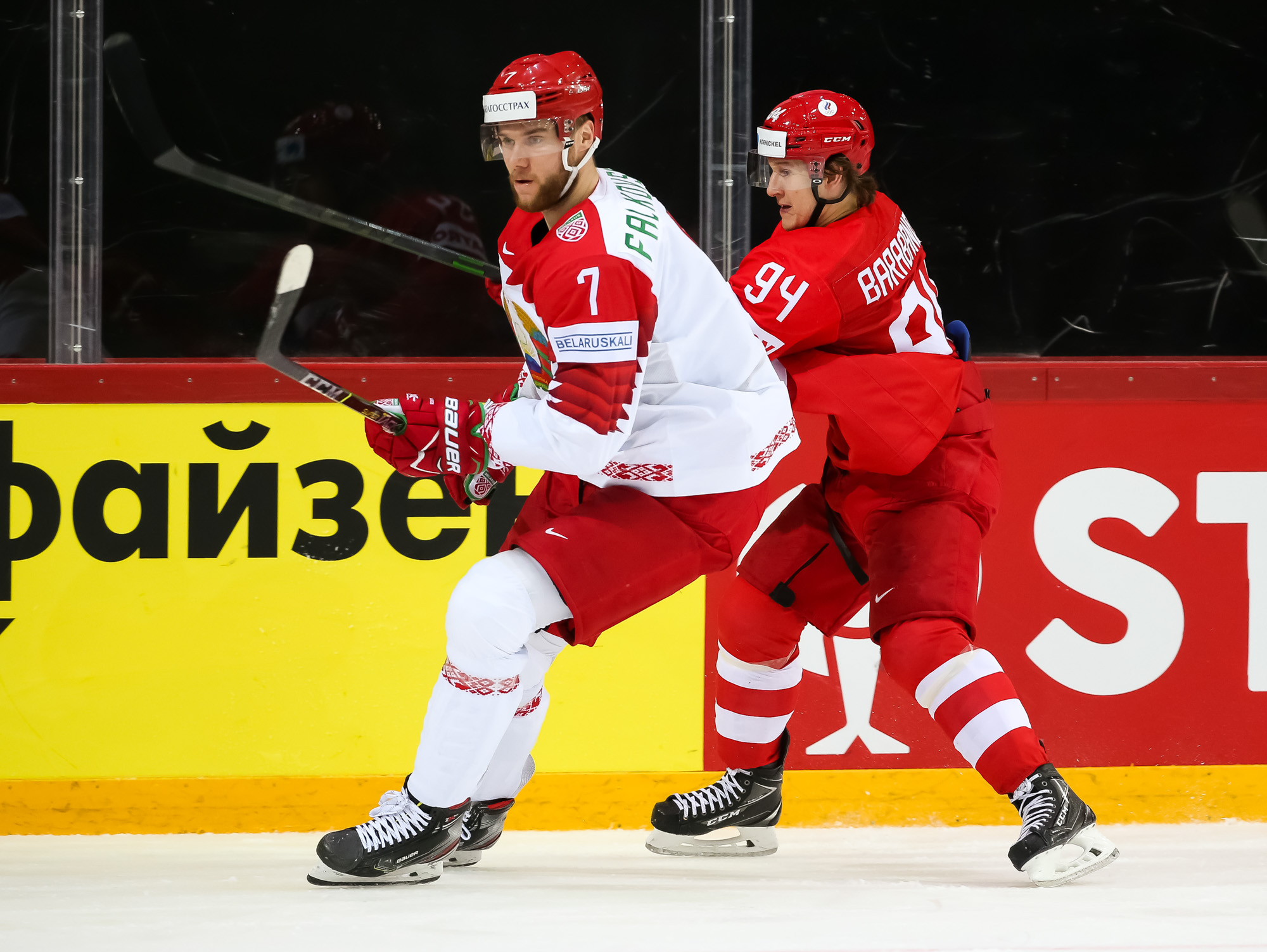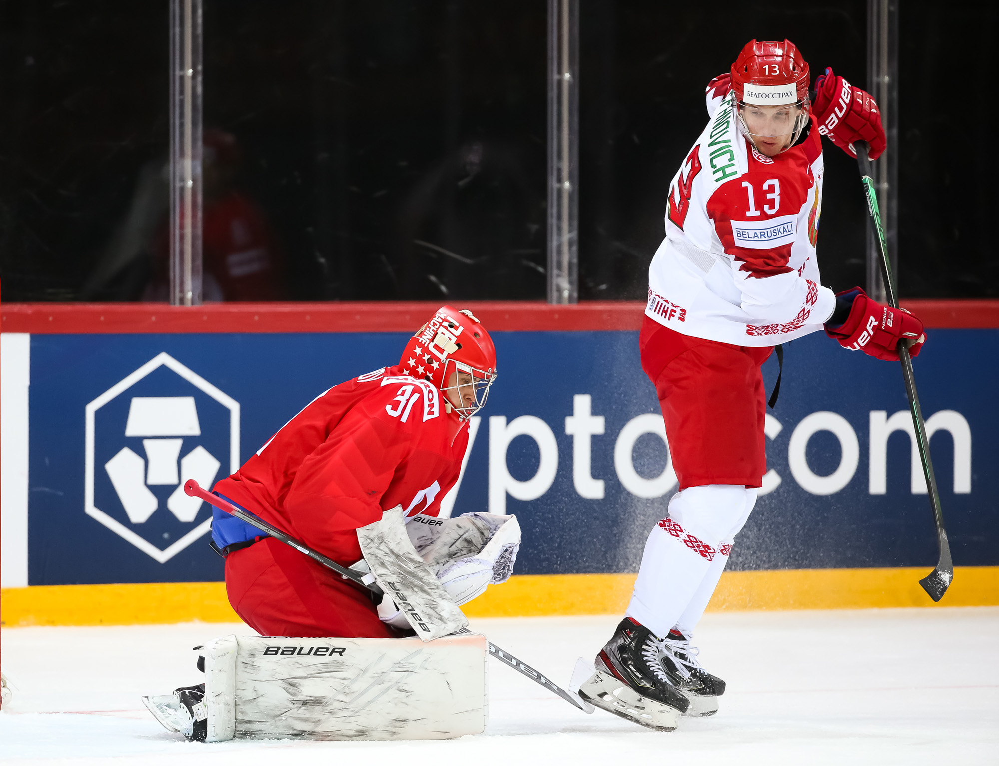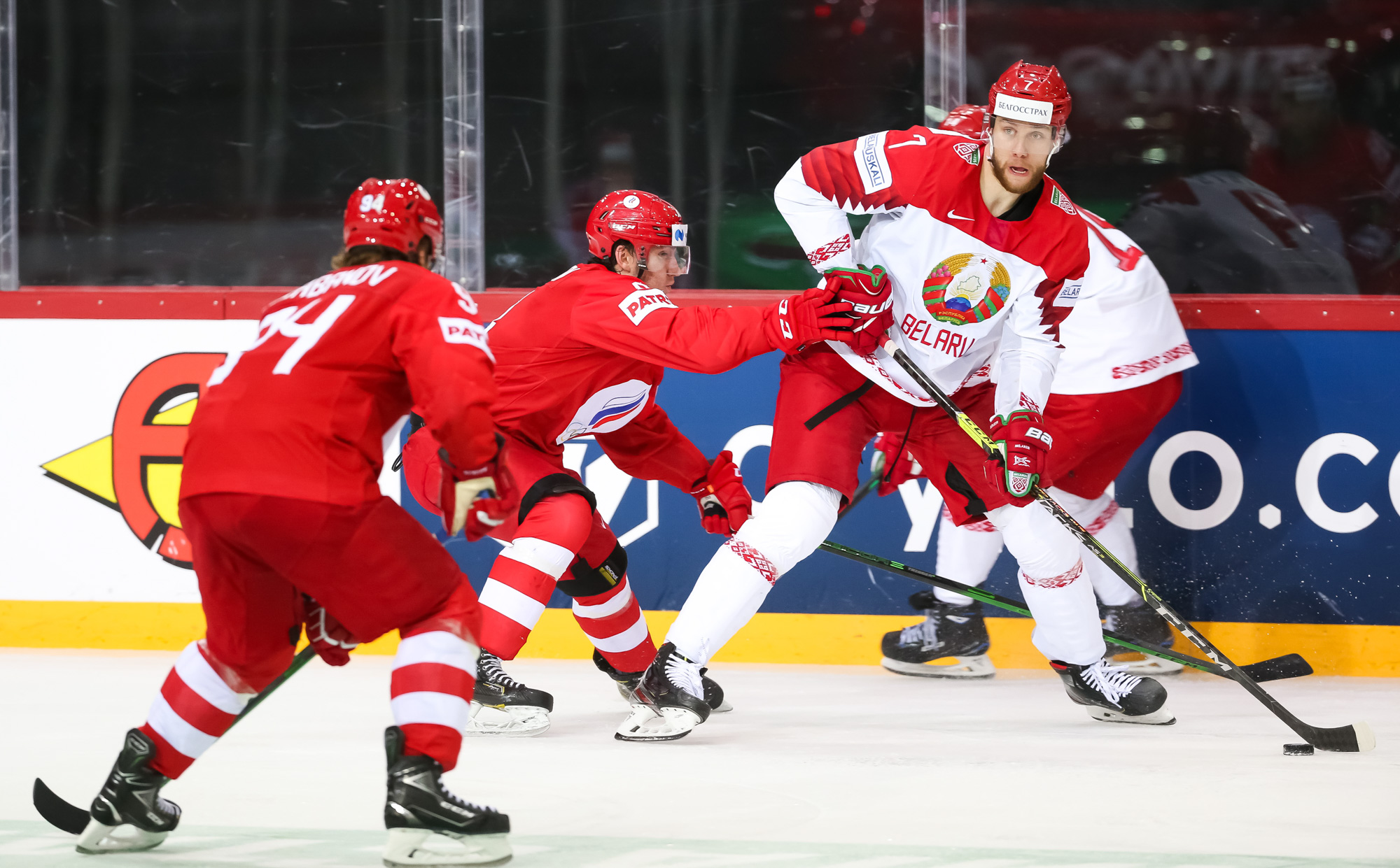 Things got even worse for Belarus when Mikhail Grigorenko fired home number four after some good work from Dmitri Voronkov. Mikhail Zakharov challenged the call, claiming that Anton Slepyshev interfered with Kolosov, but the video review upheld the on-ice decision and the Bison found themselves on the PK with a bench minor.