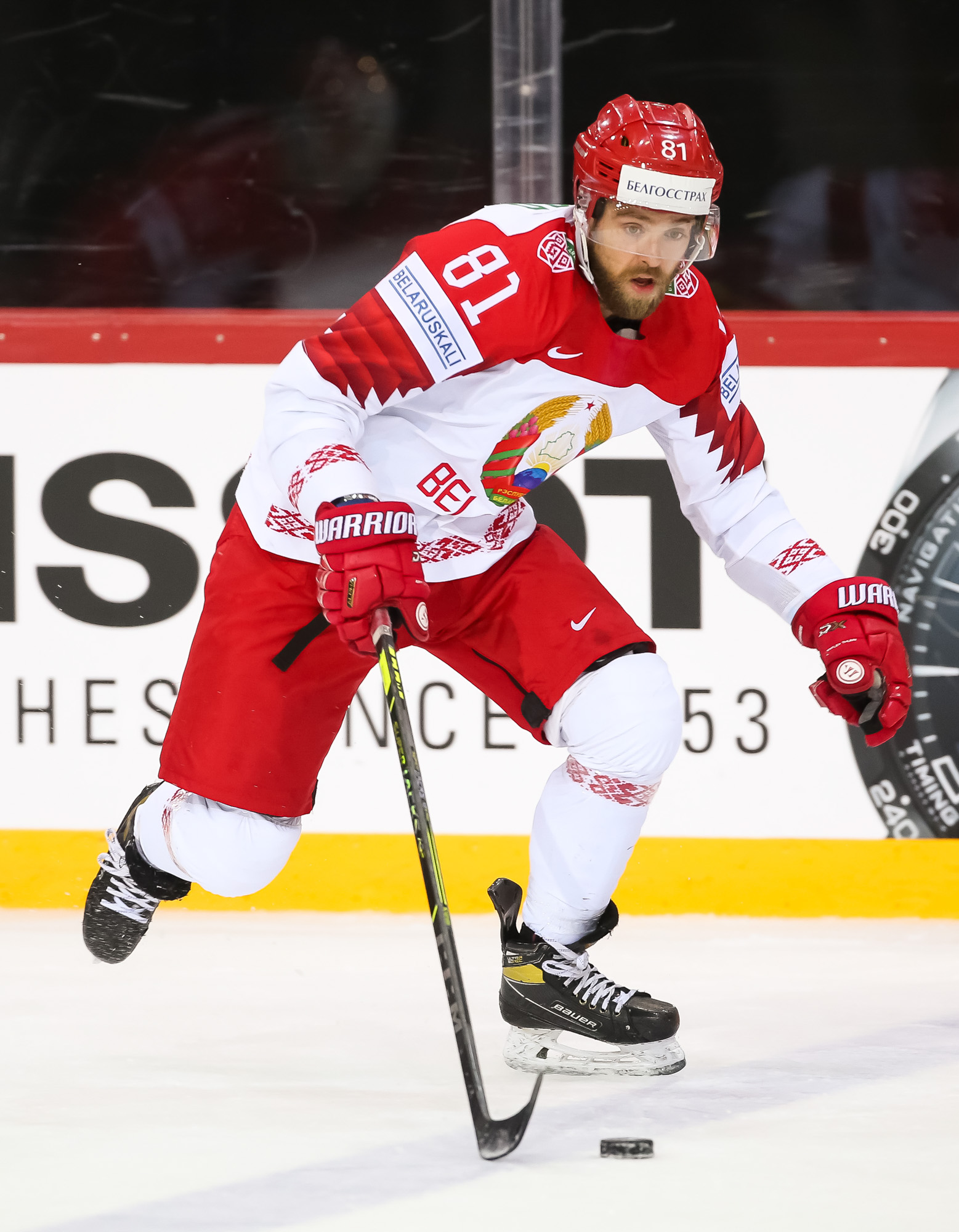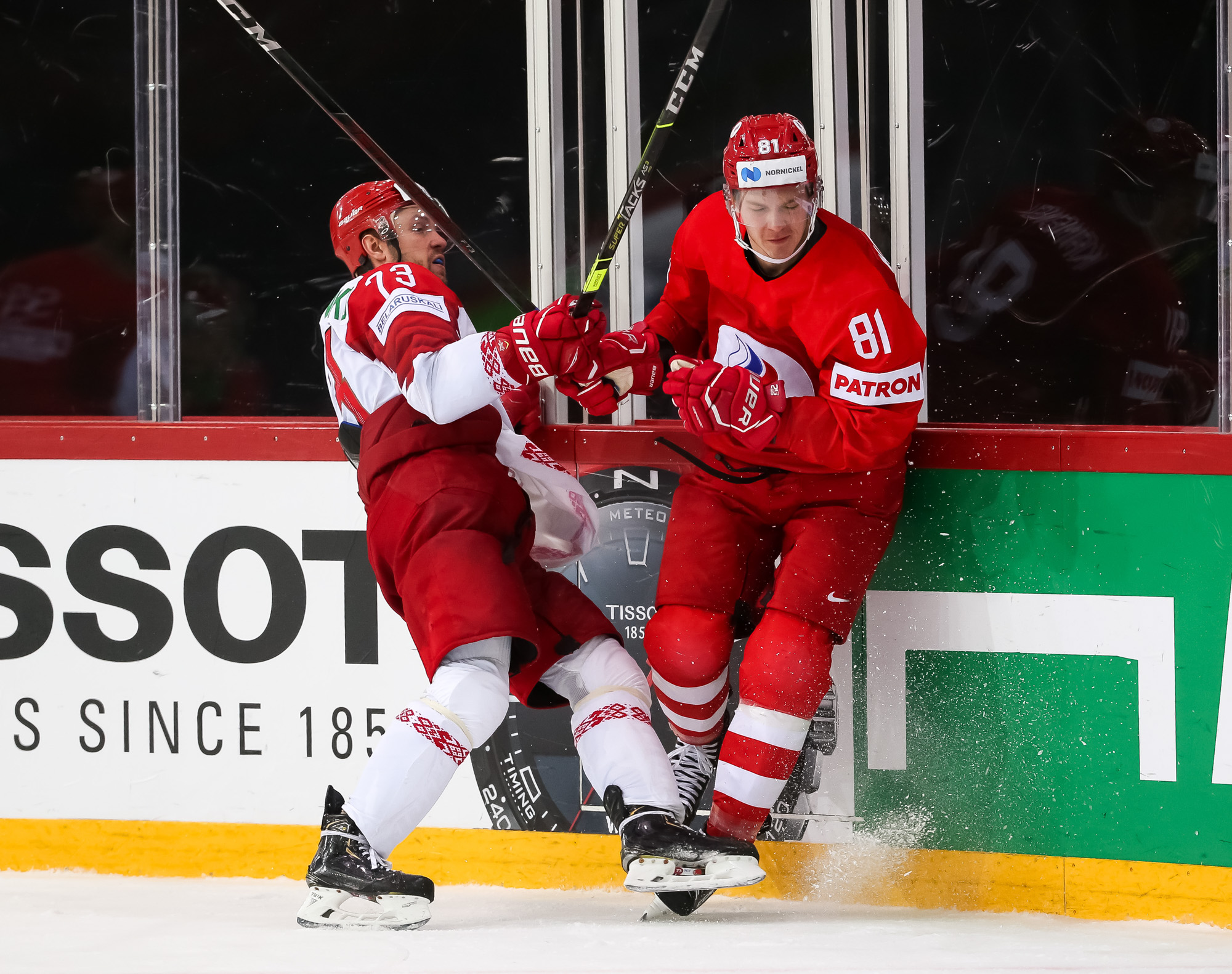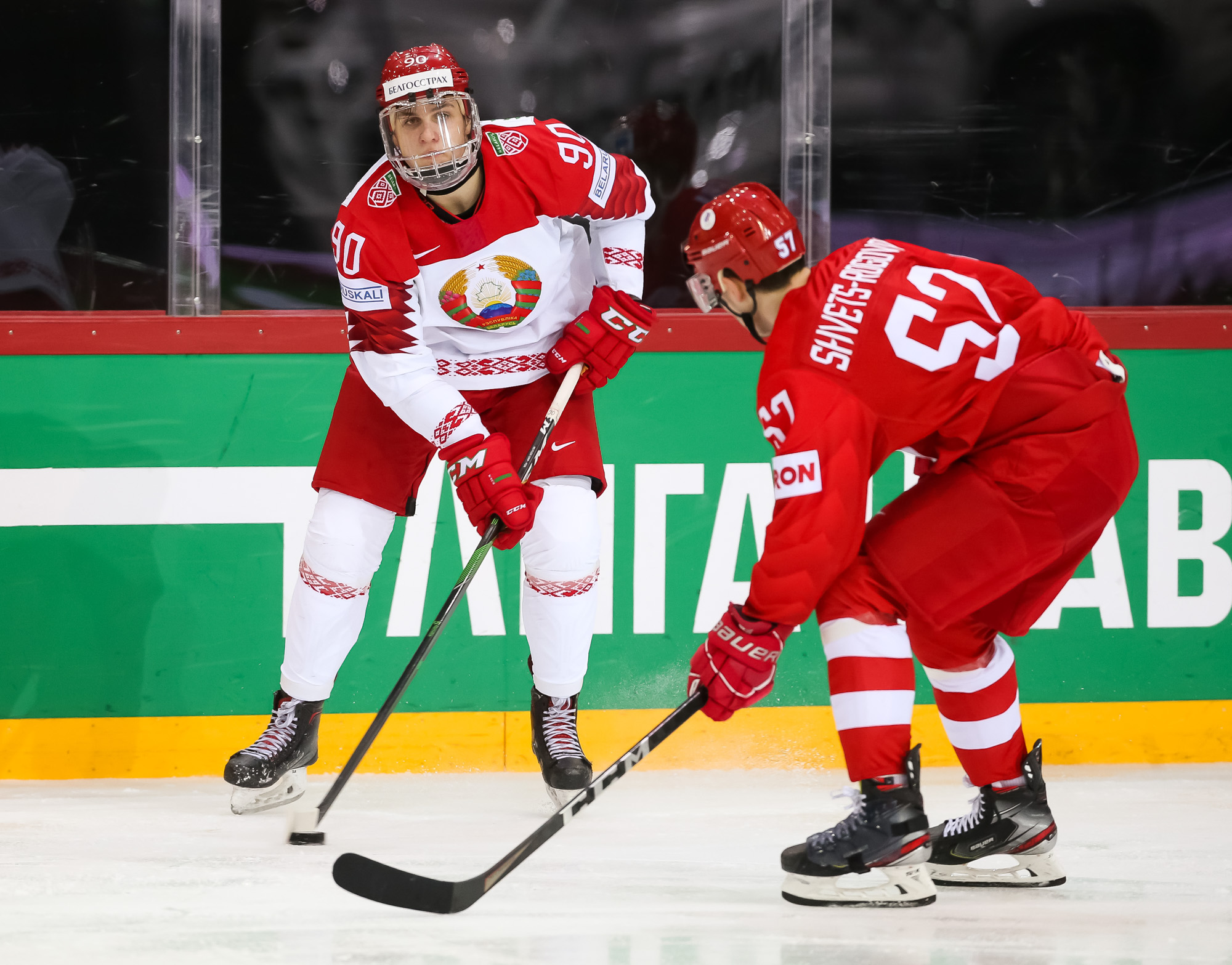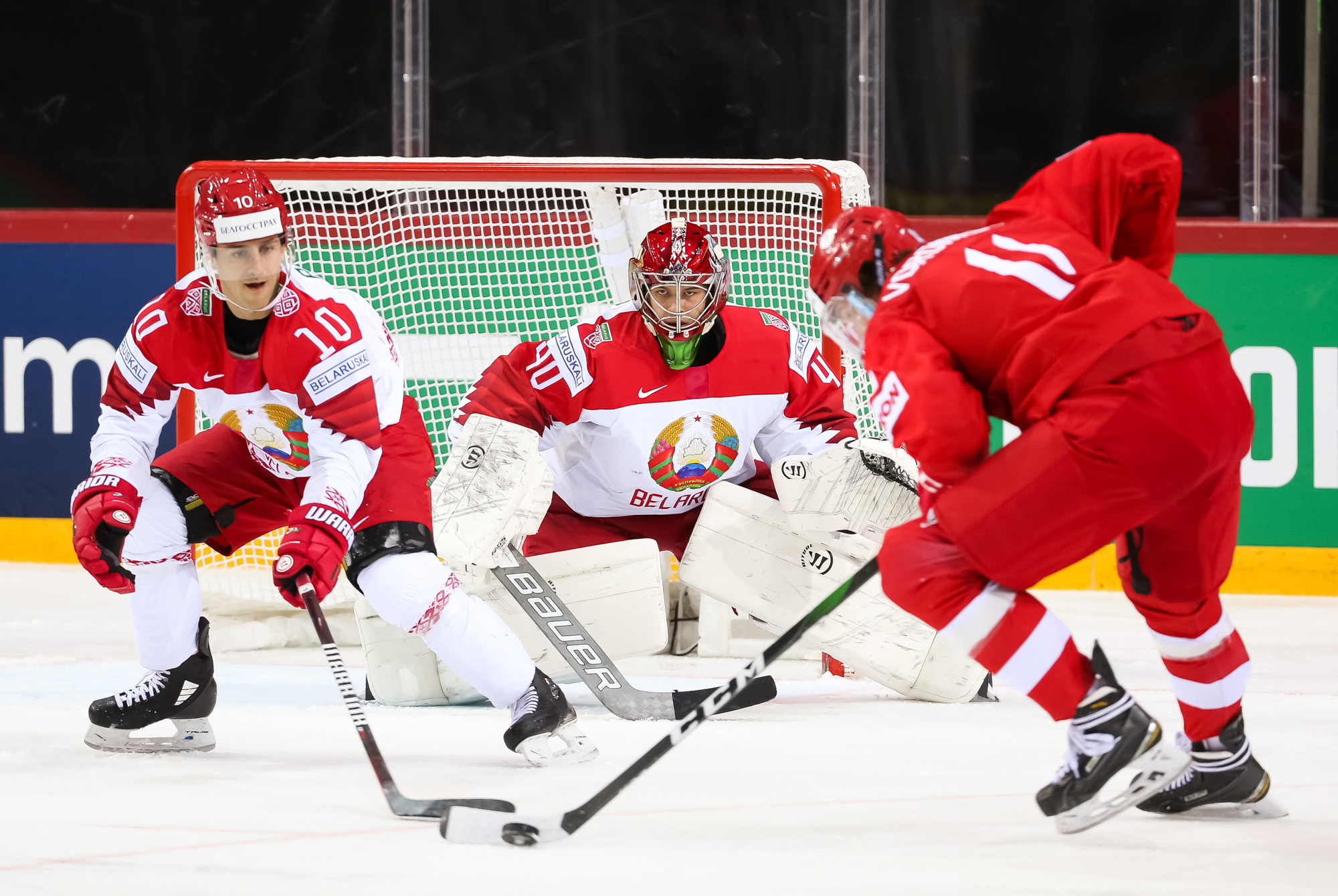 Things got even worse for Belarus when Mikhail Grigorenko fired home number four after some good work from Dmitri Voronkov. Mikhail Zakharov challenged the call, claiming that Anton Slepyshev interfered with Kolosov, but the video review upheld the on-ice decision and the Bison found themselves on the PK with a bench minor.