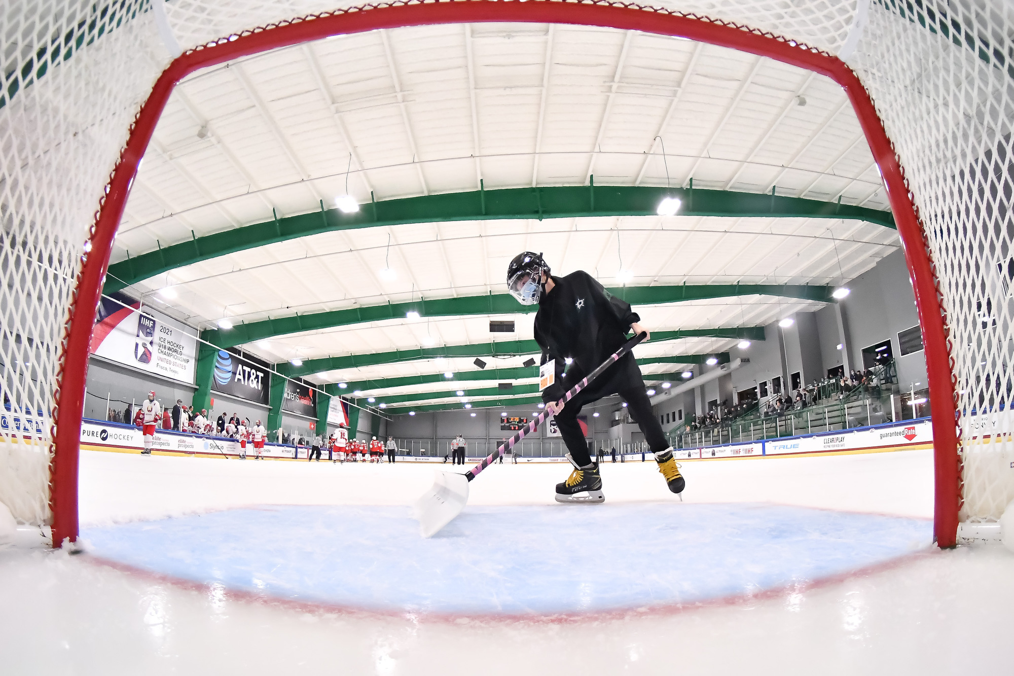 The Swiss just couldn’t stay out of the penalty box, though, and Klimovich made it 3-1 at 6:50 after taking a great cross-crease pass from captain Vladislav Shilo and burying it in the back side. Two minutes later, he scored his hat-trick goal by corralling a rebound from the same spot.