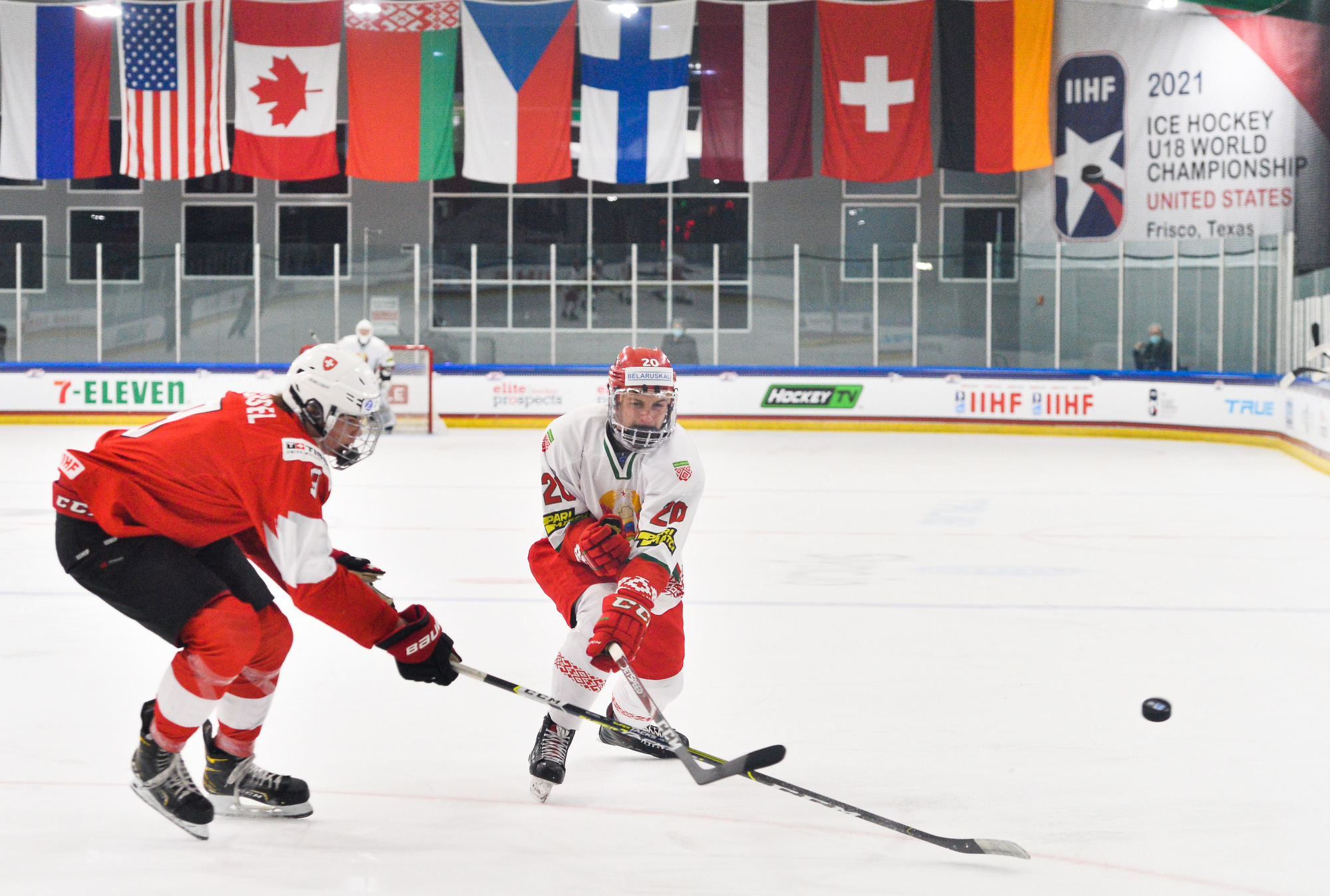 Danila Klimovich scored three power-play goals this afternoon to lead Belarus to a 7-1 win over Switzerland in U18 action in Plano. Despite his heroics, though, he has to share centre stage with defenceman Dmitri Kuzmin, who scored a beautiful lacrosse goal during a three-goal second period.