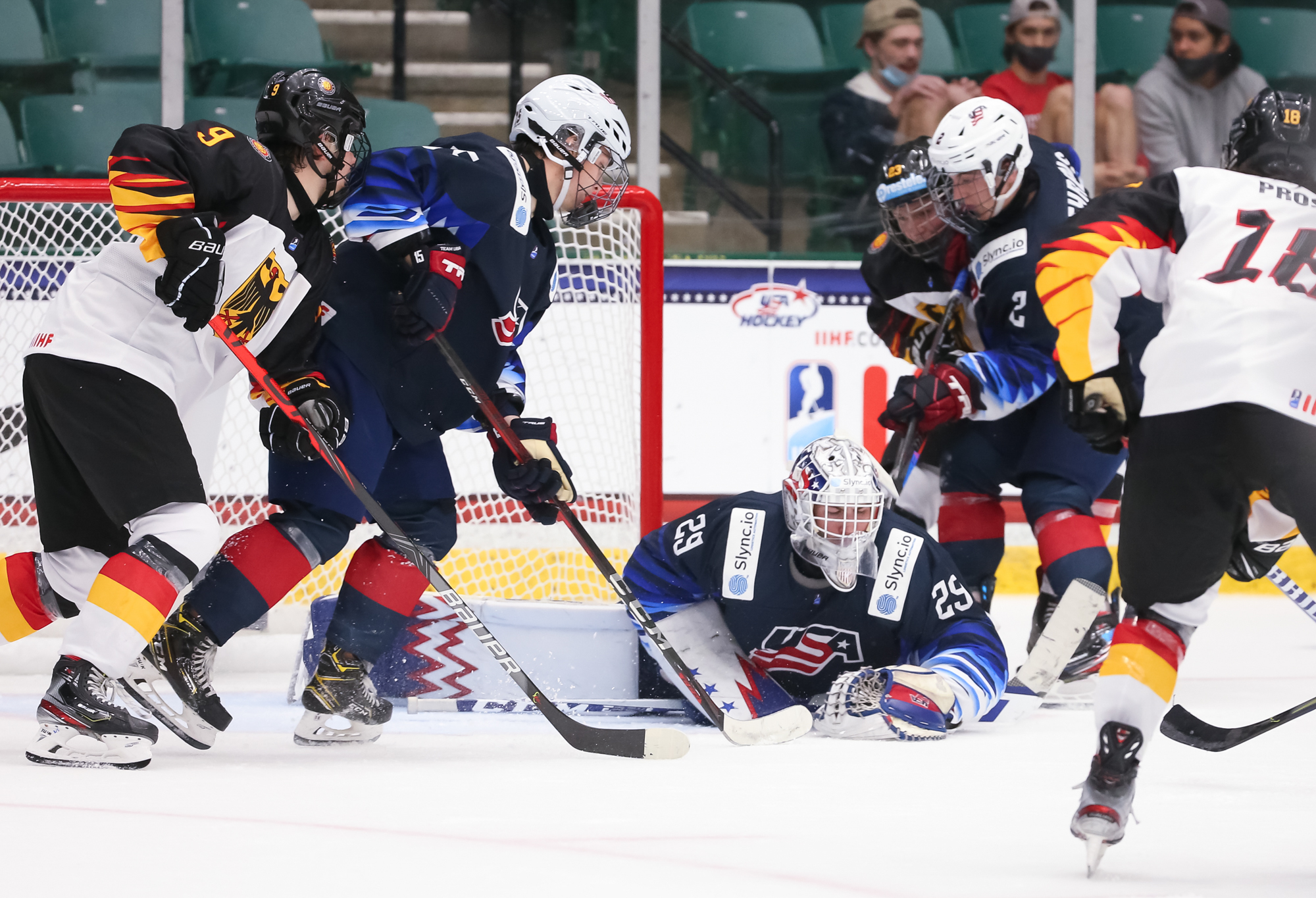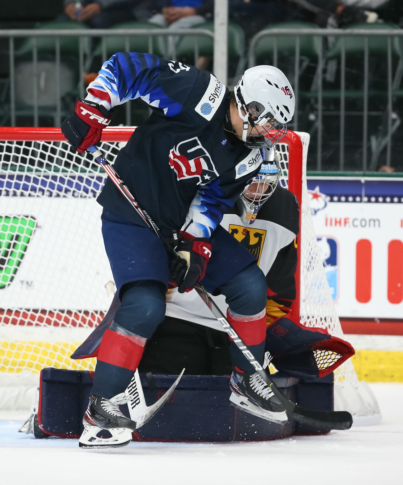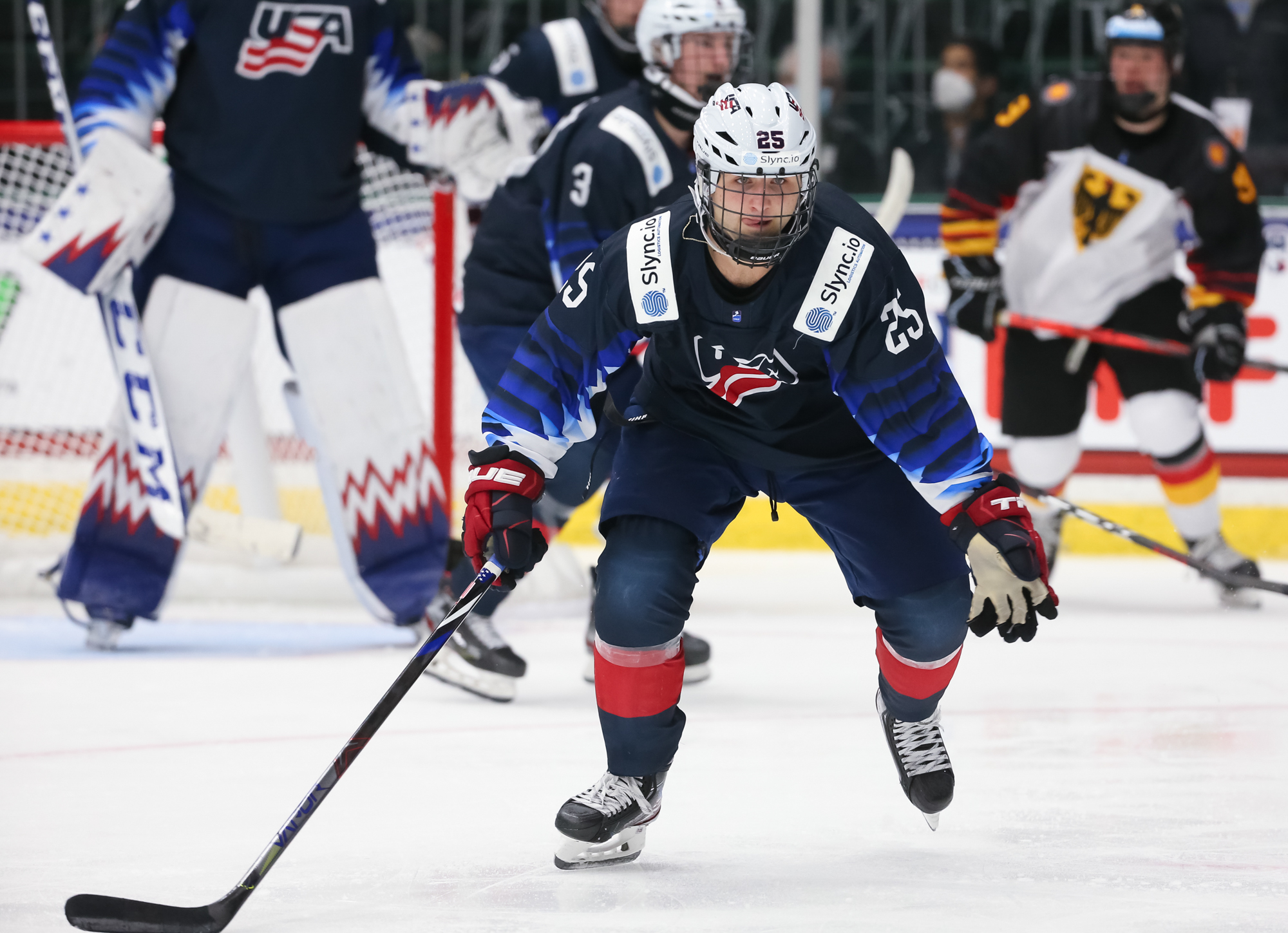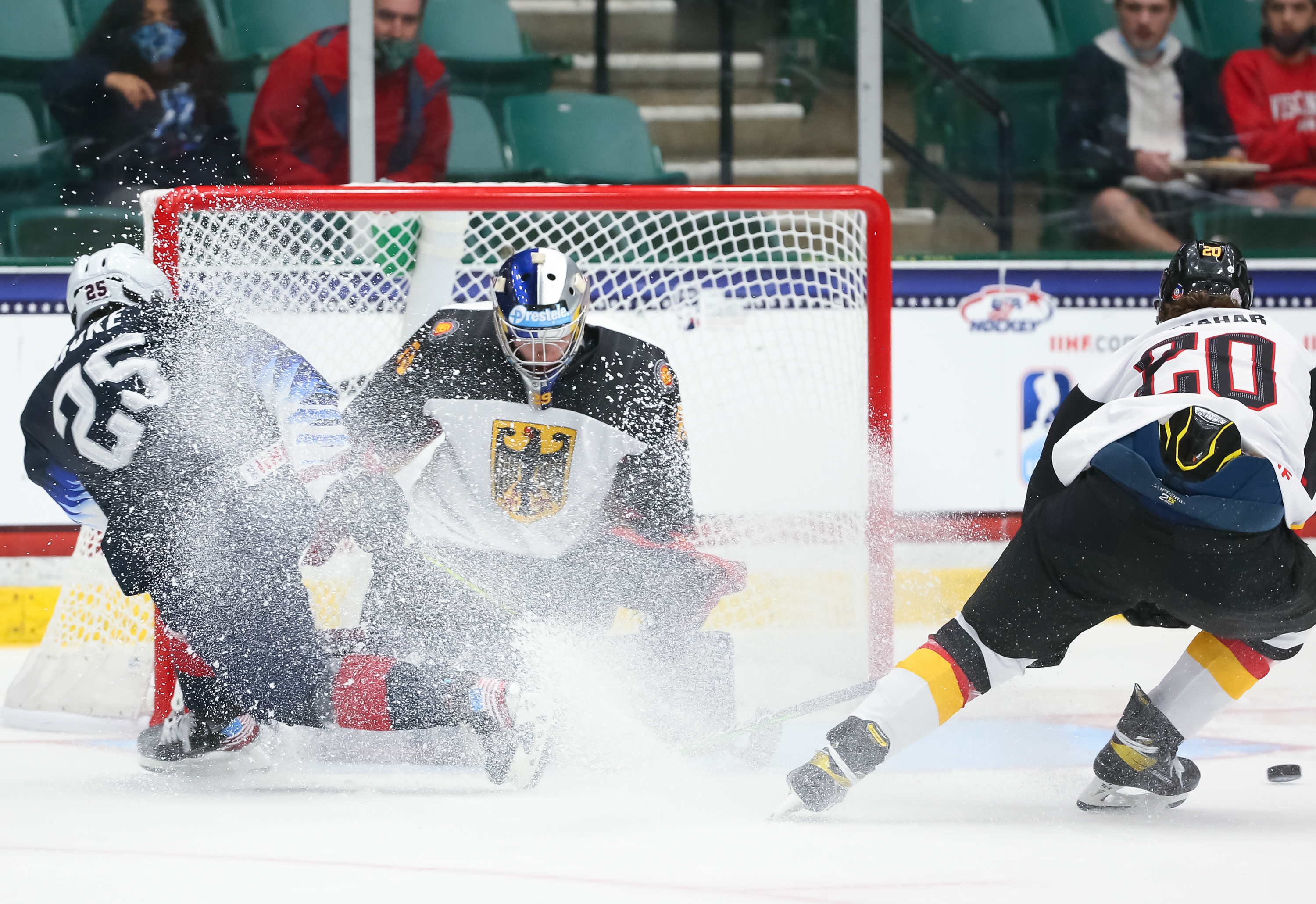 Despite giving up seven goals to the Russians, U.S. netminder Gibson Homer got his second consecutive start under head coach Dan Muse and made 25 saves. Newcomer Simon Wolf got the nod from German coach Steffen Ziesche and recorded 37 saves.