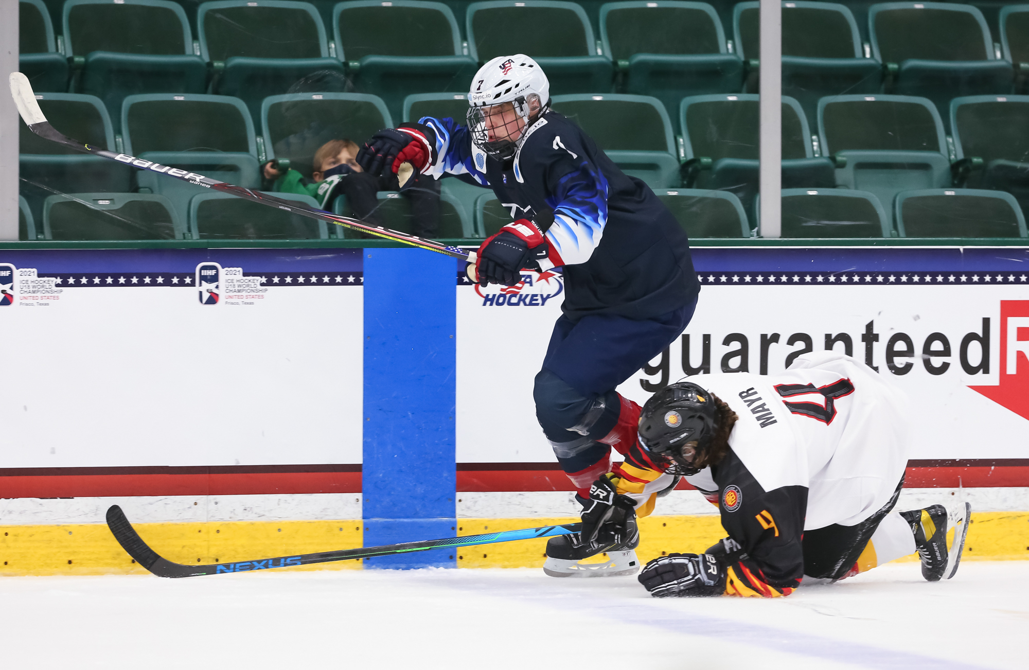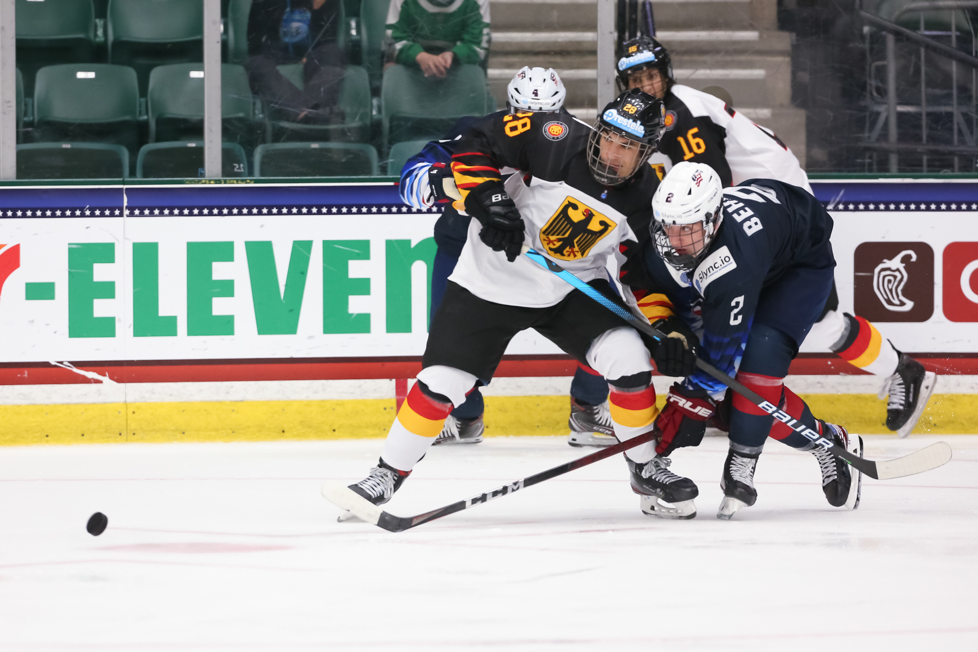 The U.S. penalty problems continued in the third period, with captain Red Savage heading off for cross-checking just 30 seconds in, but this time the Germans couldn't take advantage.