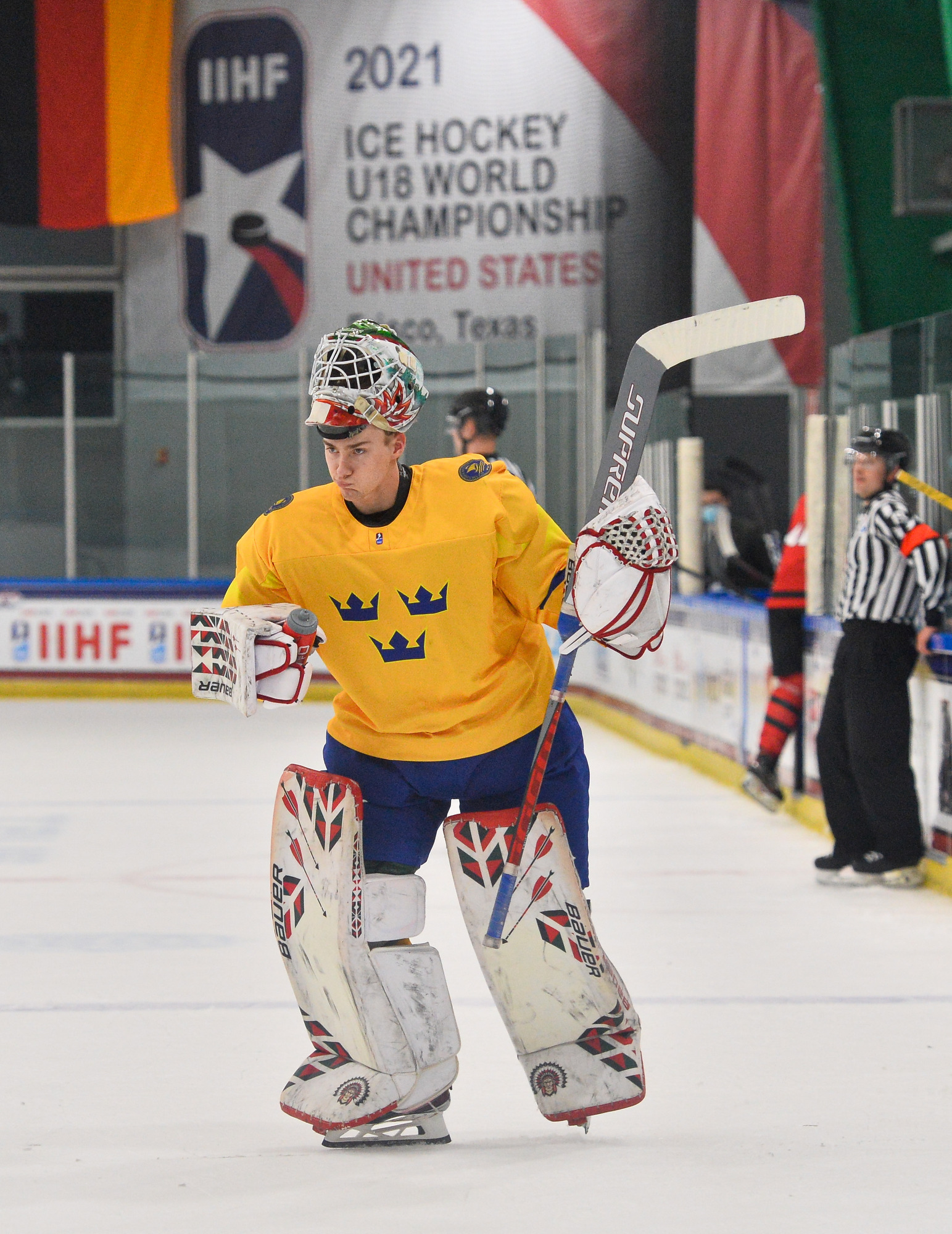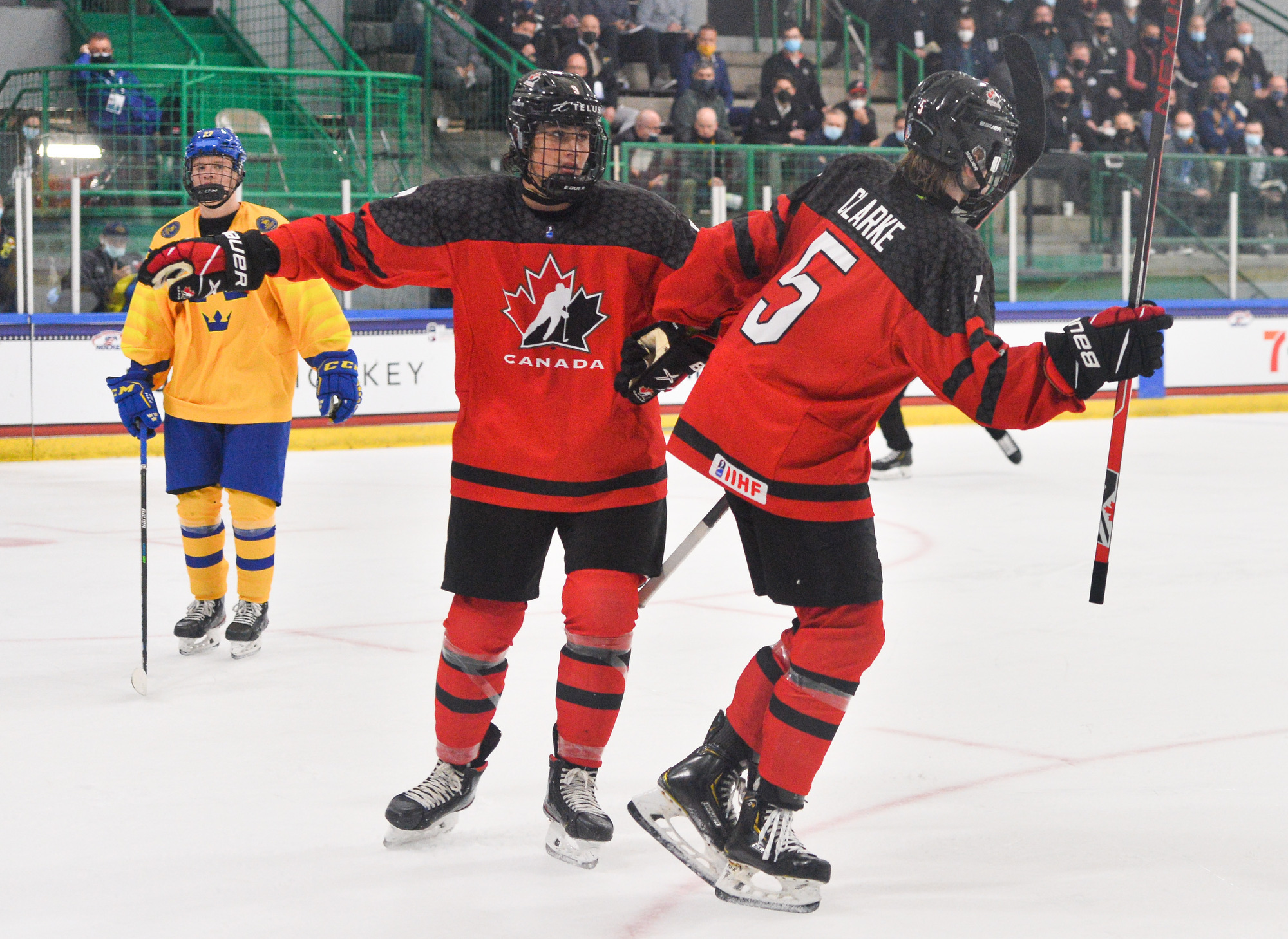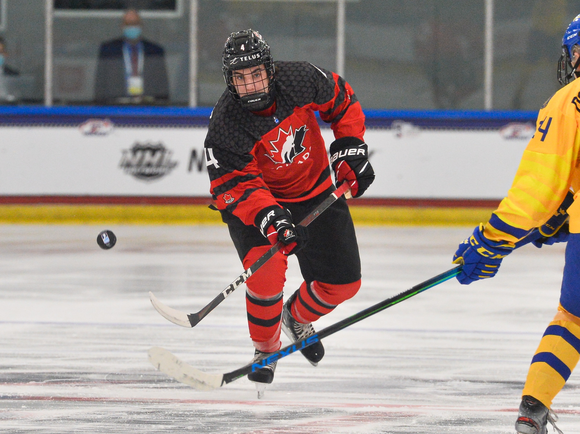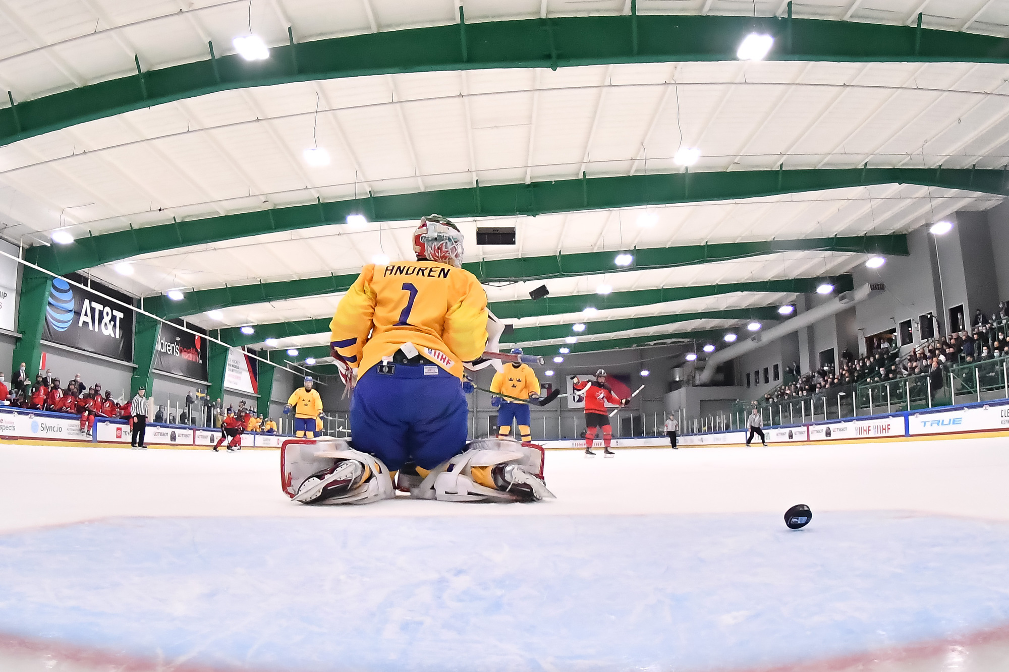 Canada then scored two quick goals to extend its lead. First, 15-year-old Connor Bedard drove down the right side and got the puck to the front where Brett Harrison’s shot beat Lindbom. Just 75 seconds later, Pinelli made it 4-0, forcing Eriksen to make a goaltending change and giving Viggo Andren his first action of the tournament.