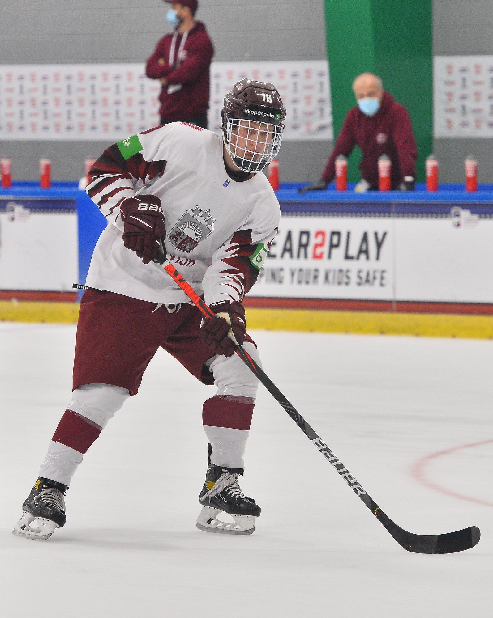 Just 123 seconds later Mason McTavish made it 2-0 when Bedard made a clever steal of the puck behind the Latvian goal and got the puck in front. Mason McTavish got to the rebound and made no mistake. McTavish was acting captain tonight, replacing Shane Wright who was held out of the game with a slight lower body injury.