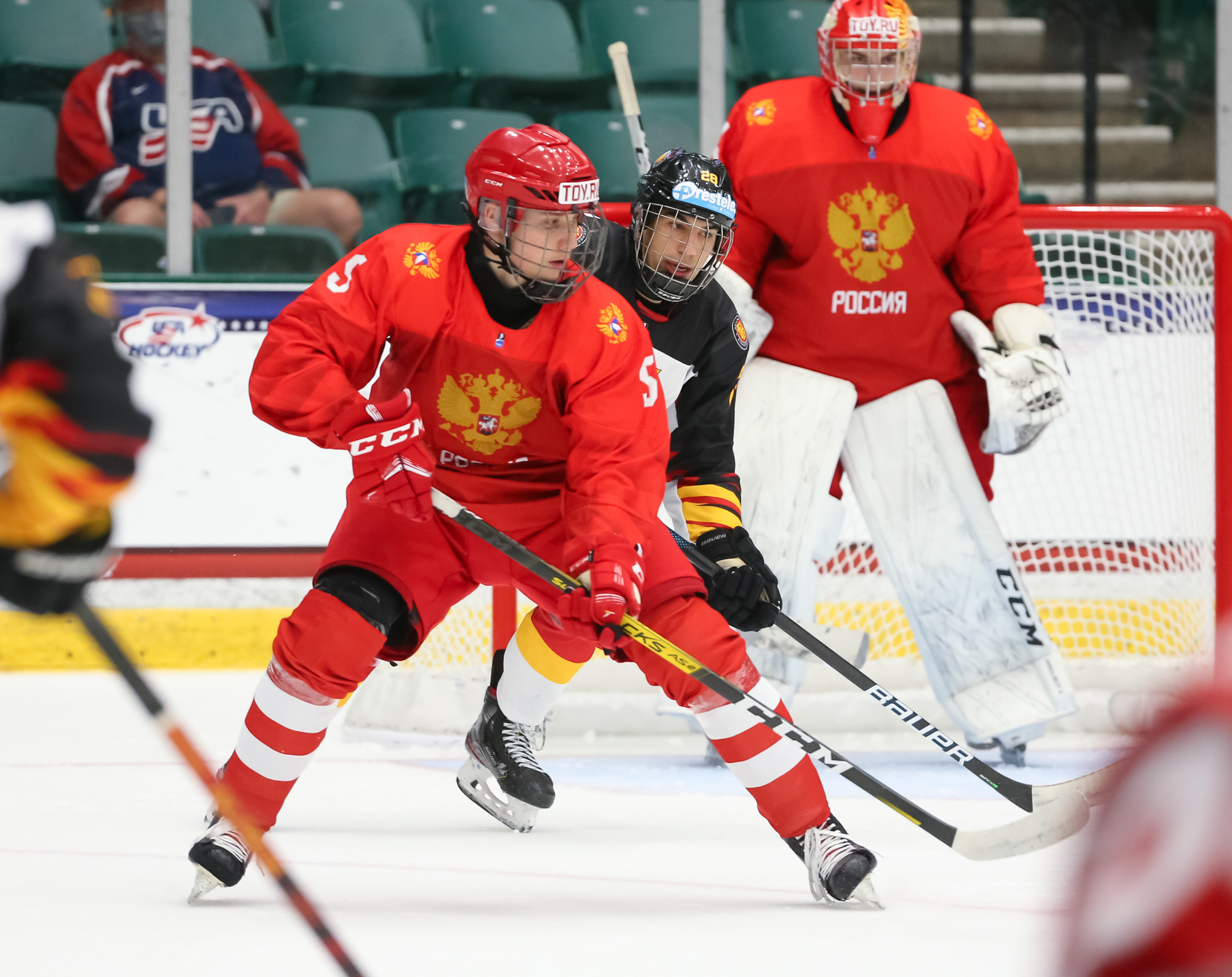 The two sides felt each other out for the first 10 minutes. Seconds after a Russian 2-on-1 failed to click, Danila Yurov broke through at 10:44. Fyodor Svechkov fed Yurov from below the goal line and he fought past a German blueliner to loft the puck past goalie Nikita Quapp.