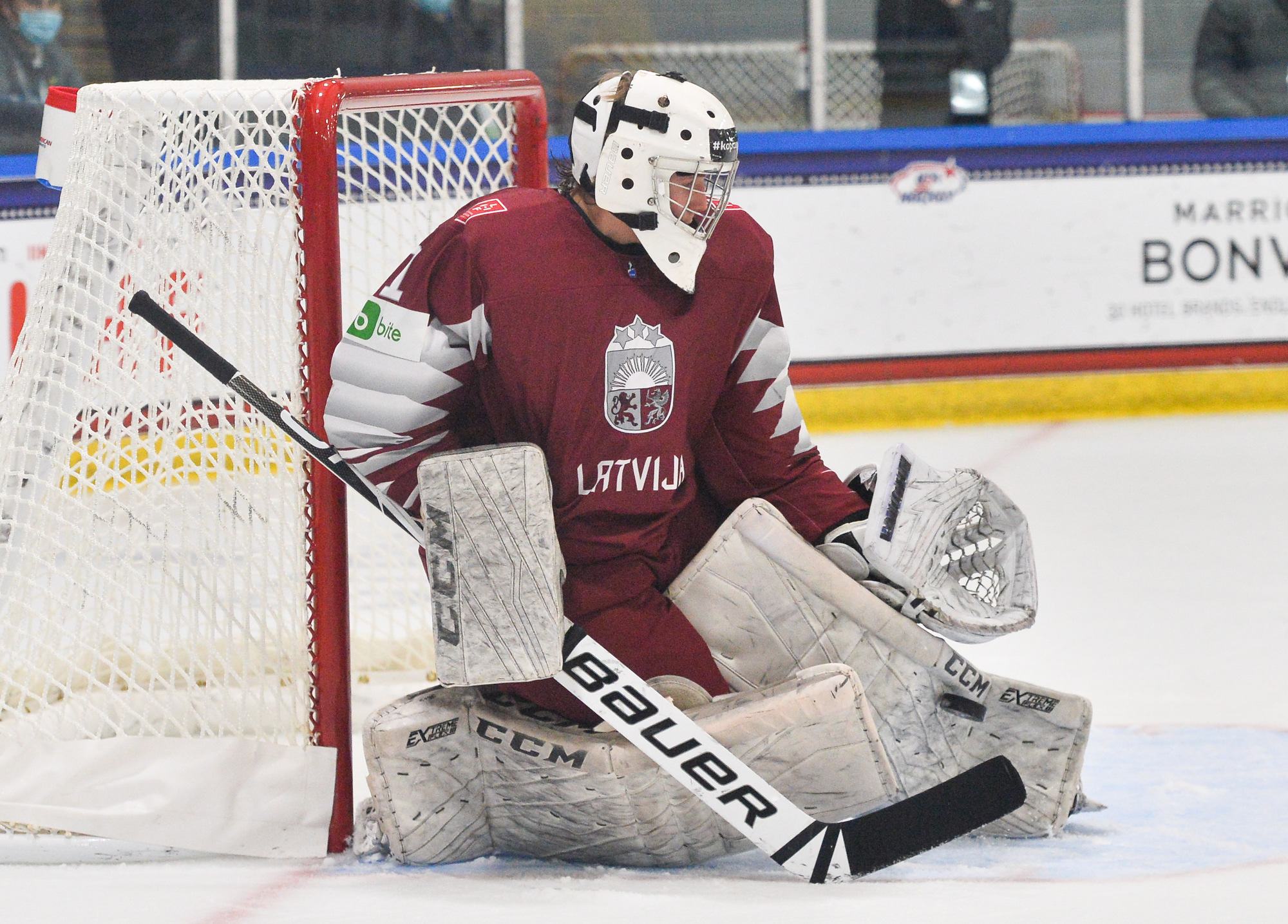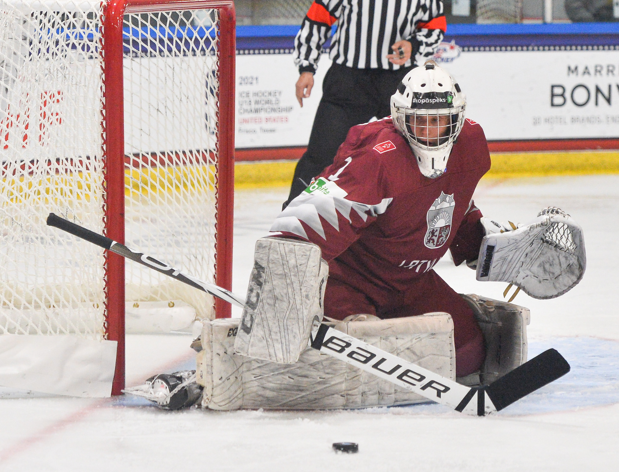 Four minutes later, they extended their lead after Lipskis made a sensational save on a point-blank shot from Liam Dower-Nilsson. But Lipskis was down and out after kicking the puck out, and Robertsson snapped the loose puck high into the net for a 4-0 lead. Three minutes later, he added his second as the deflated Latvians had lost hope.