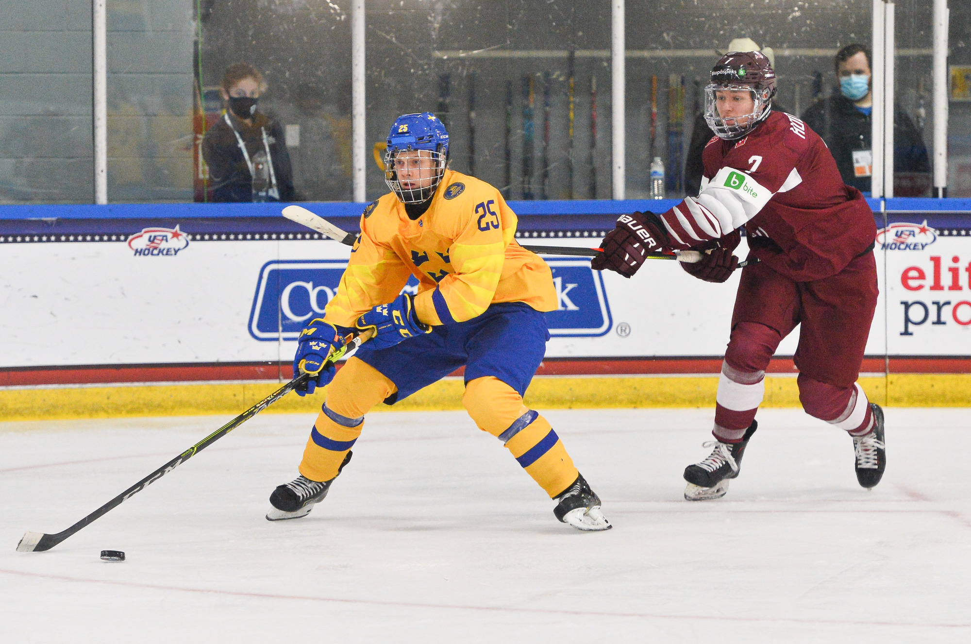 Sweden’s second-place position will mean they now play the third-place team in Group B in one quarter-finals while the Latvians go home winless in four games. To their credit, they played hard today against Sweden in what was a game without meaning in the standings for them. They finish in 9th place, and Germany will be in 10th. Latvia will be back in the top division next year, but with only four 2004-born players it will be a very different-looking team.