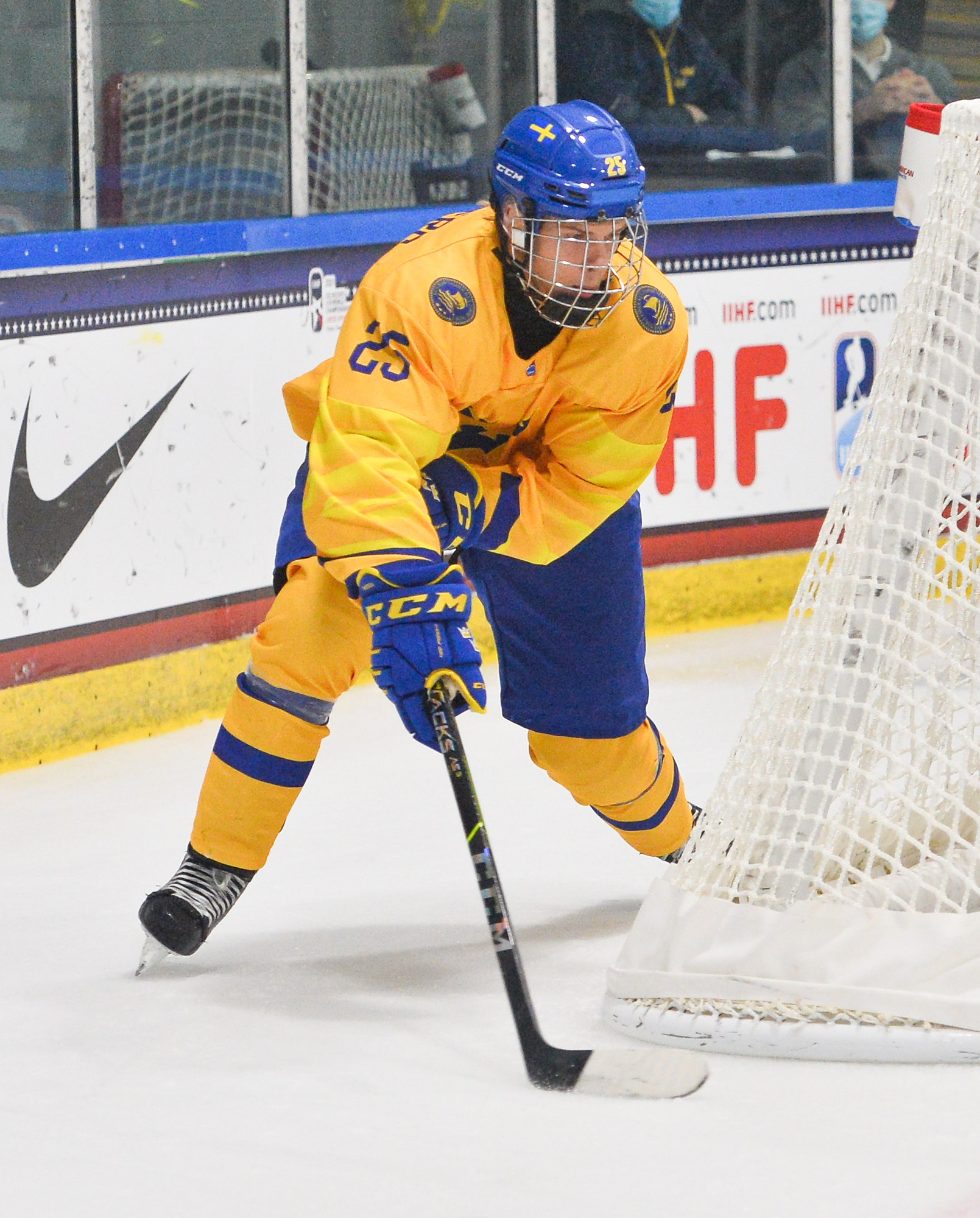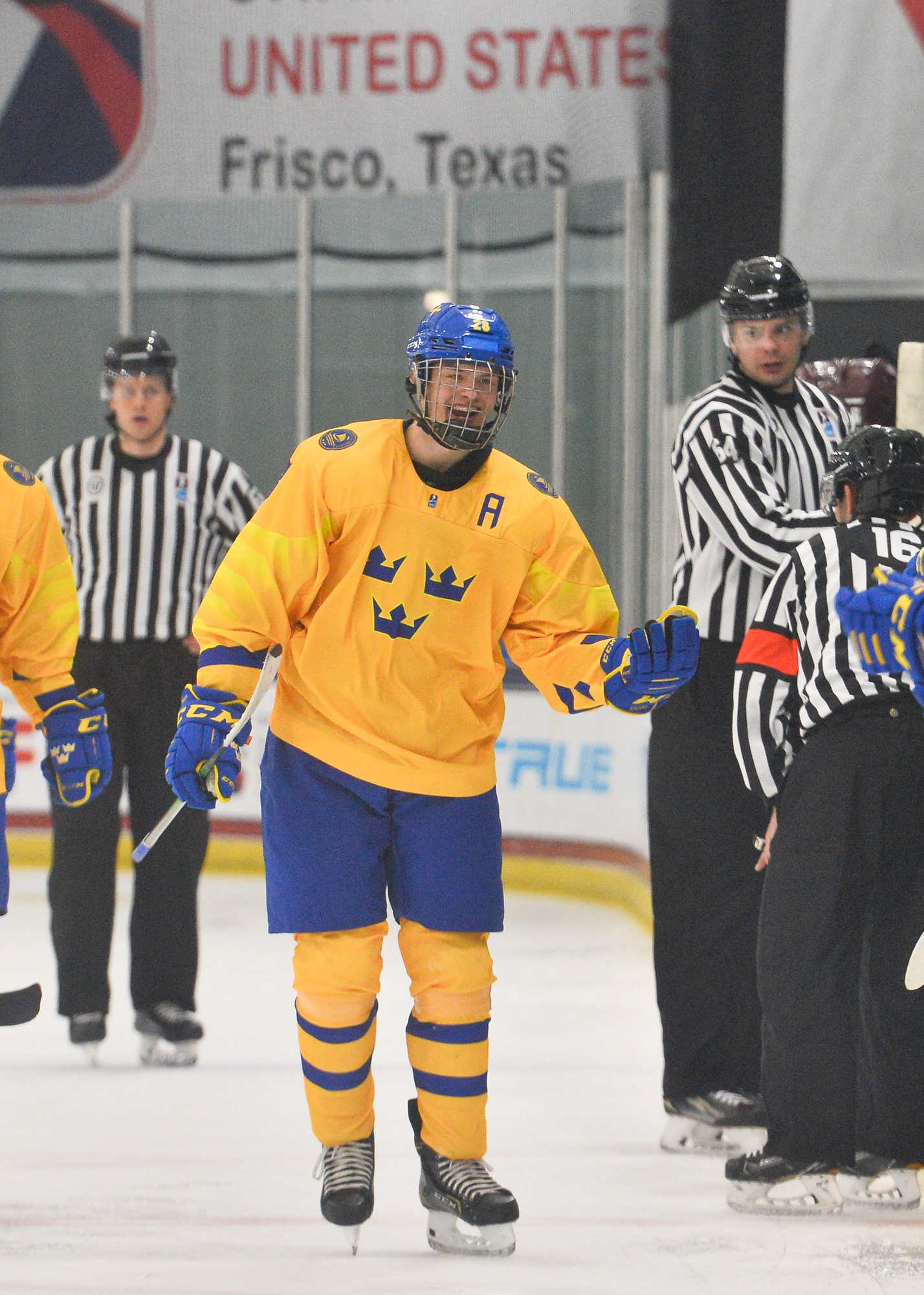 Sweden upped its lead at 7:09 of the middle period on a quick play that fooled Lipskis. The puck squirted out of a scrum along the boards right to Albert Sjoberg, standing on the right faceoff dot, and his quick shot eluded Lipskis.