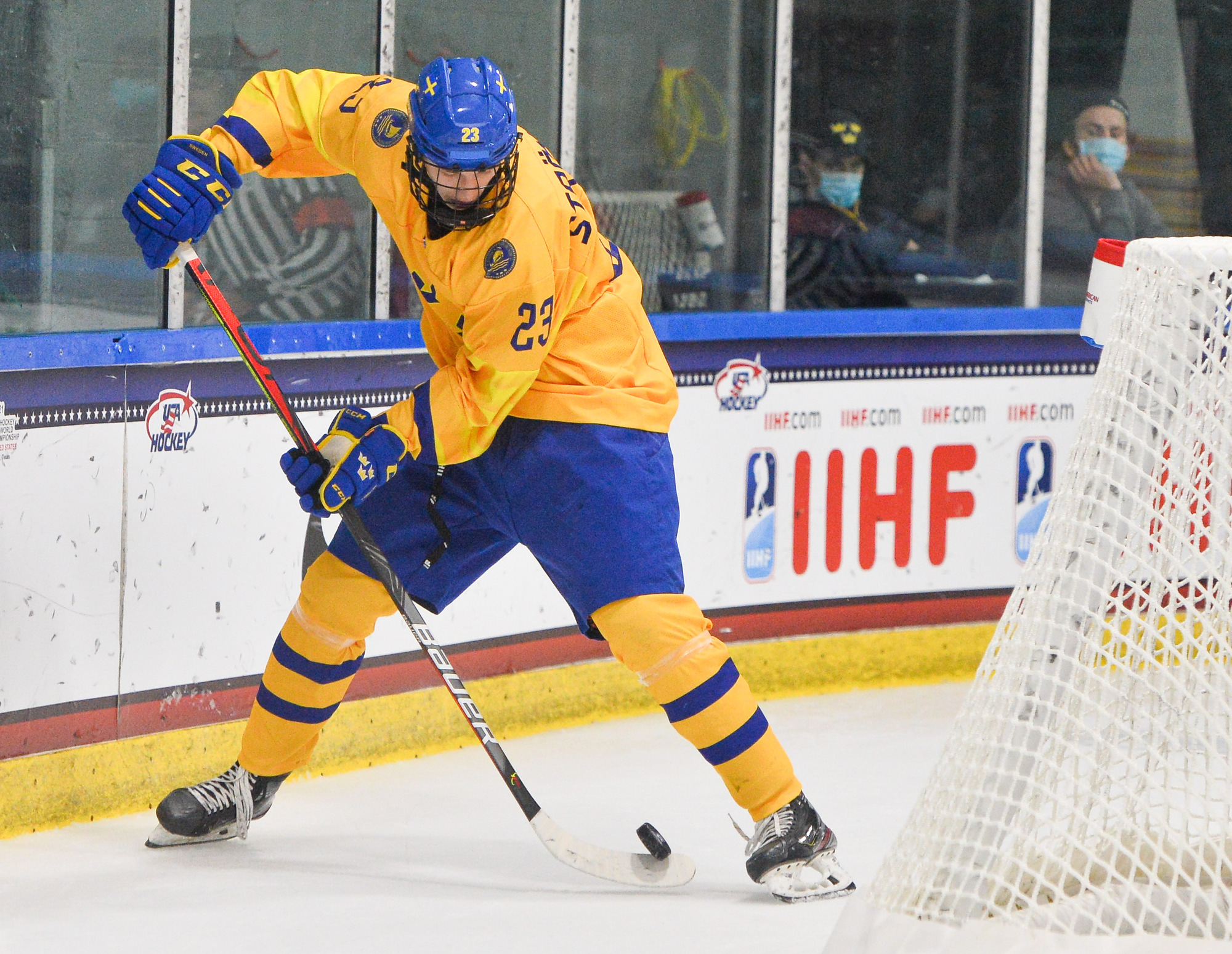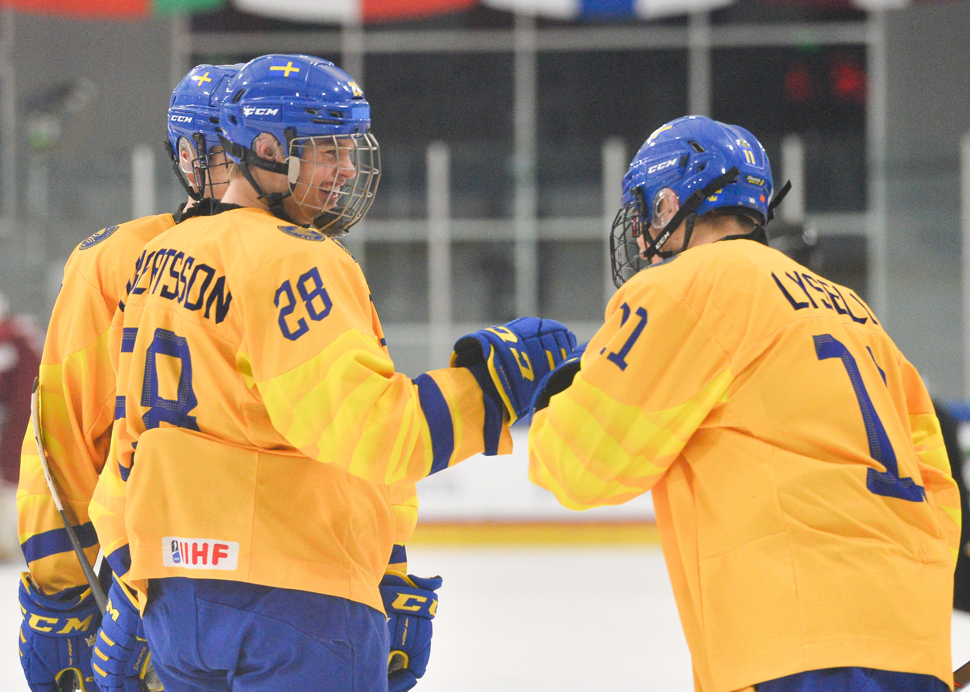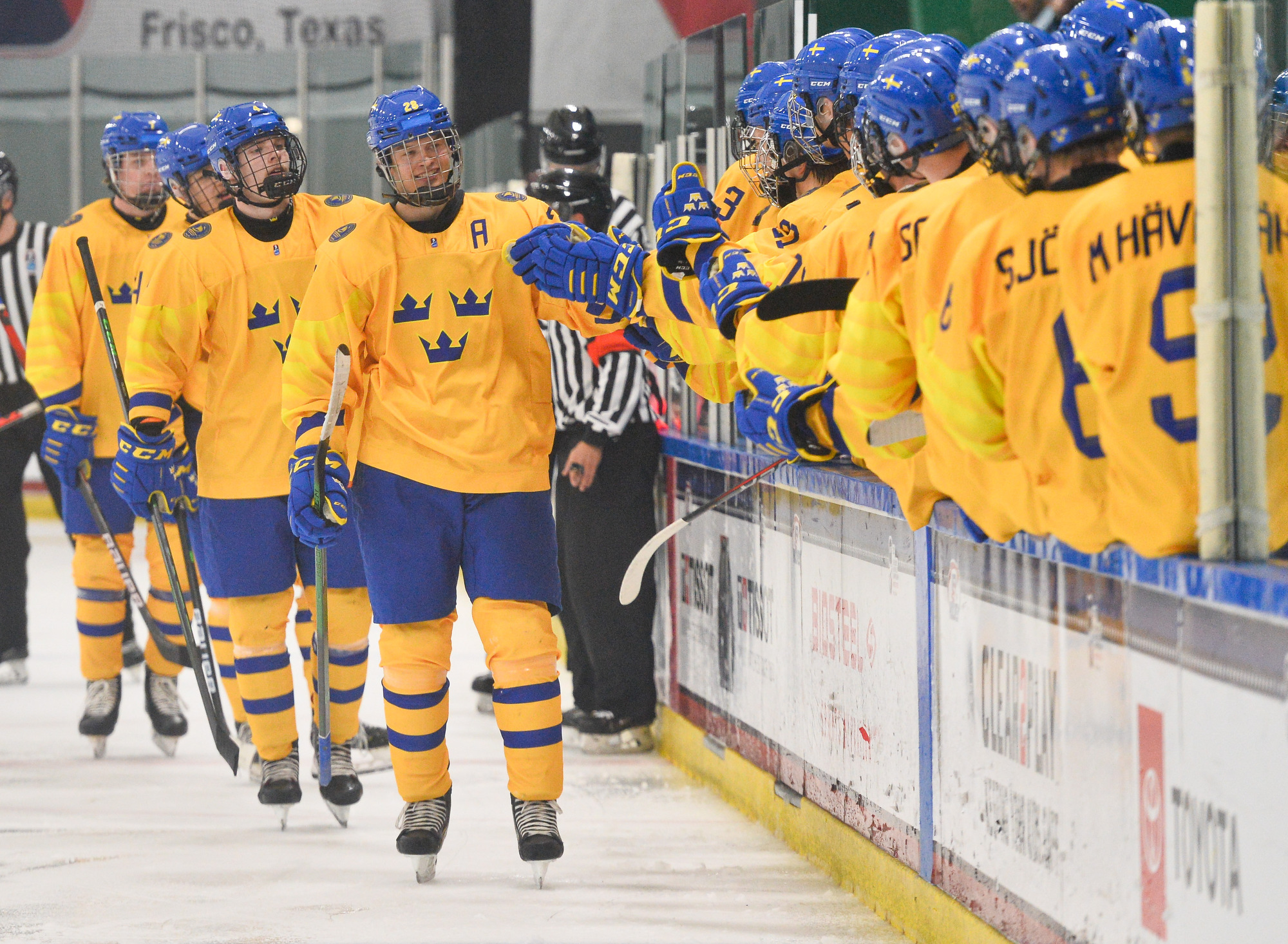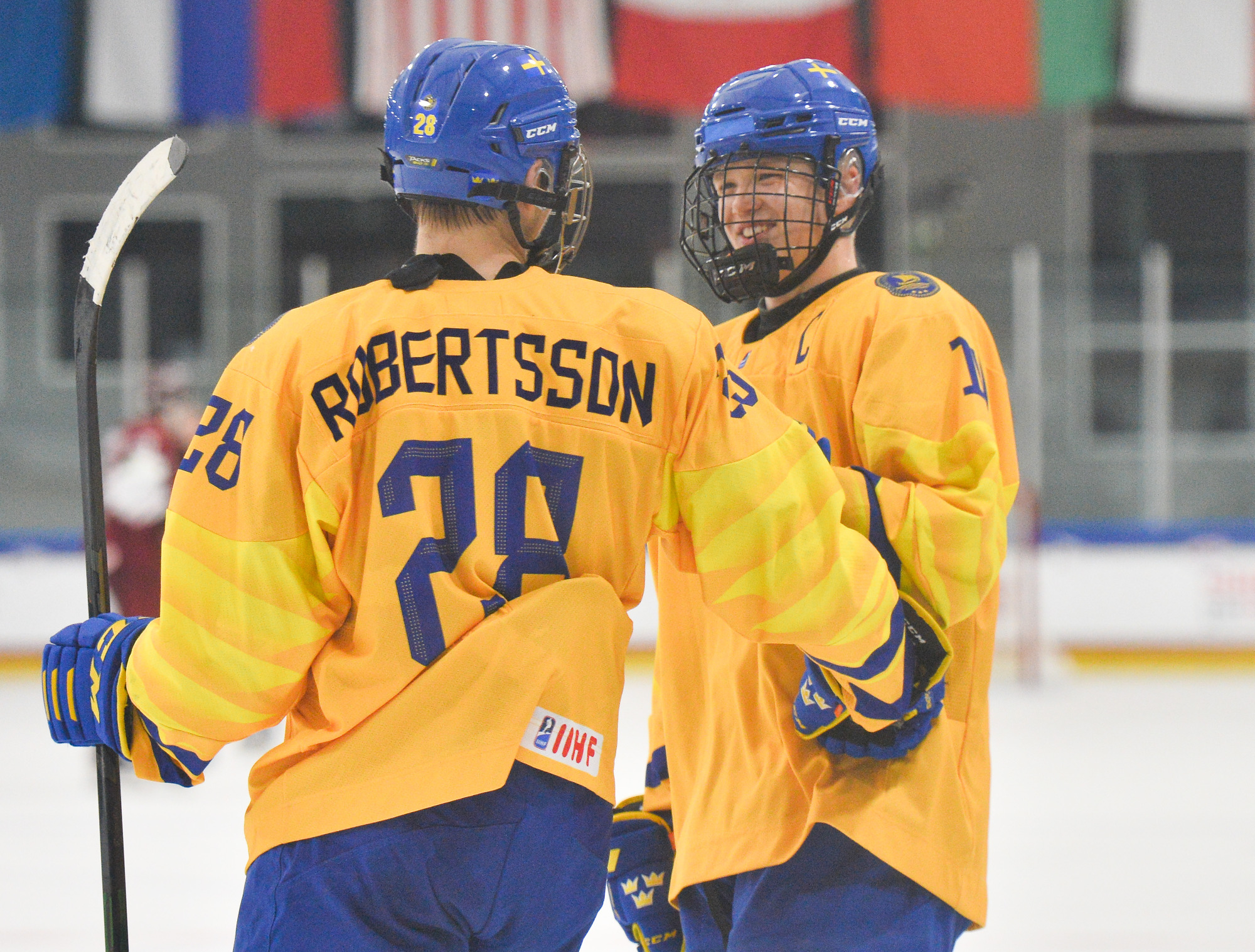 William Stromgren and Simon Robertsson had two goals each while Hugo Havelid stopped all 30 shots and earned the shutout for Sweden.