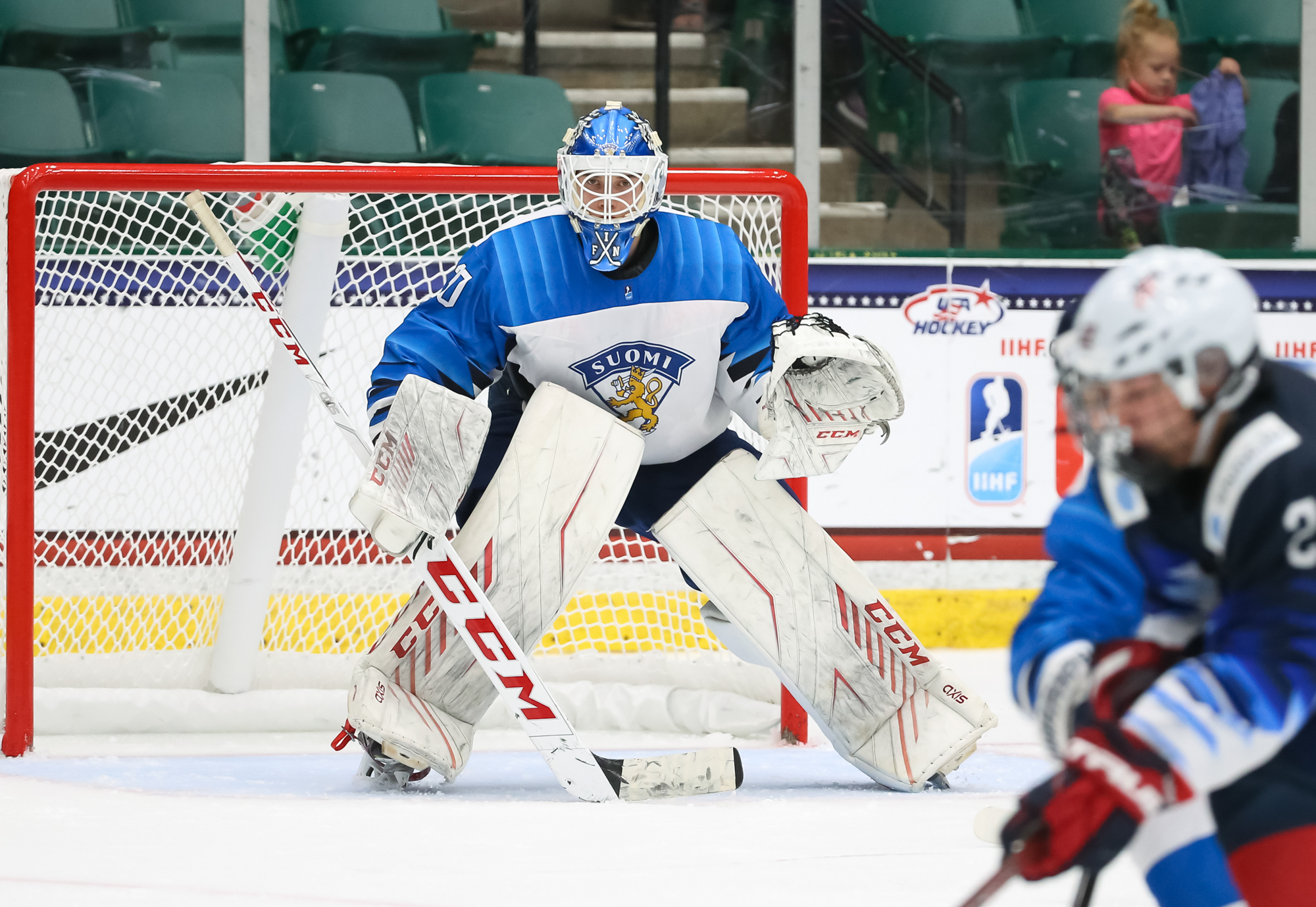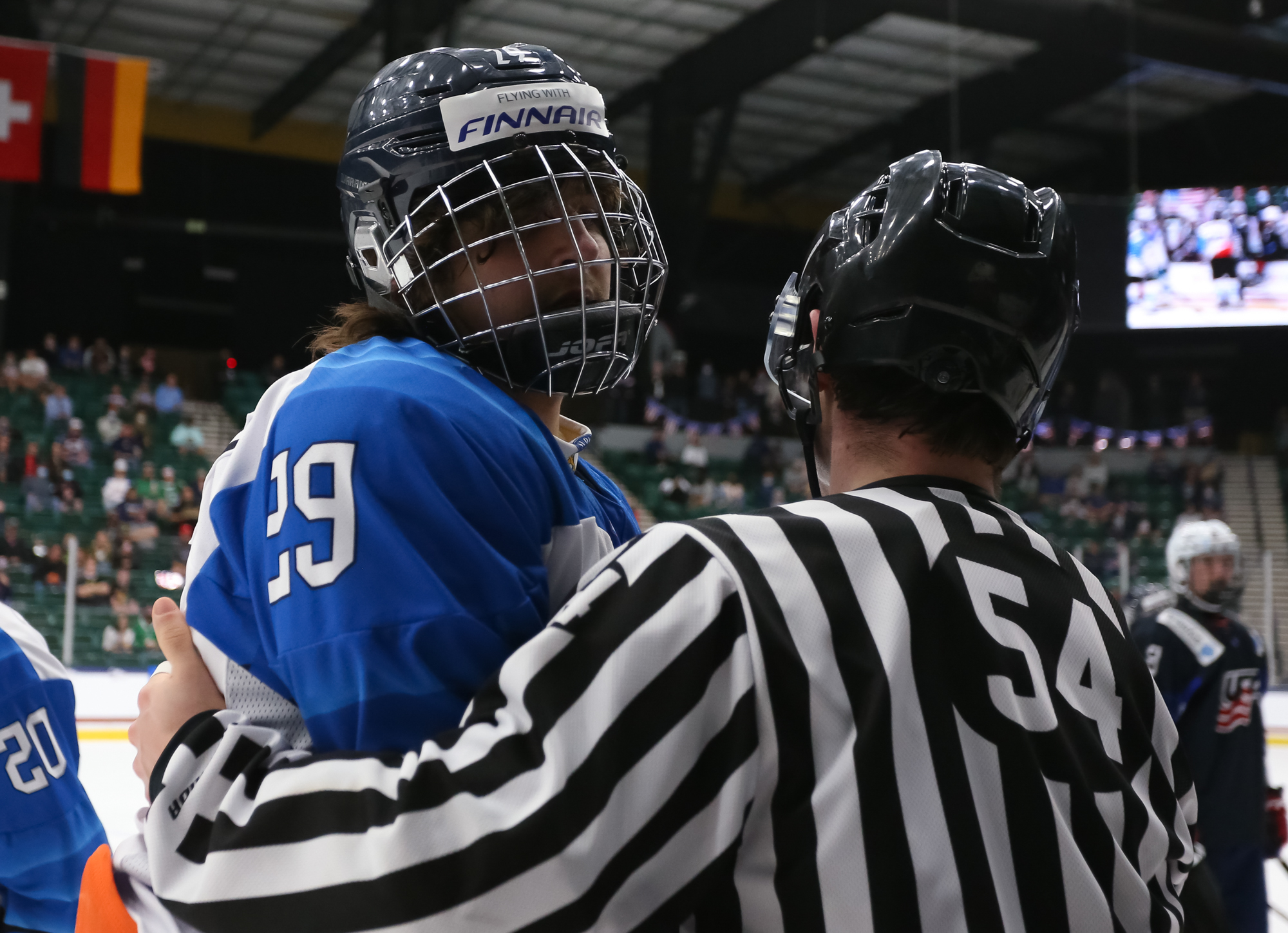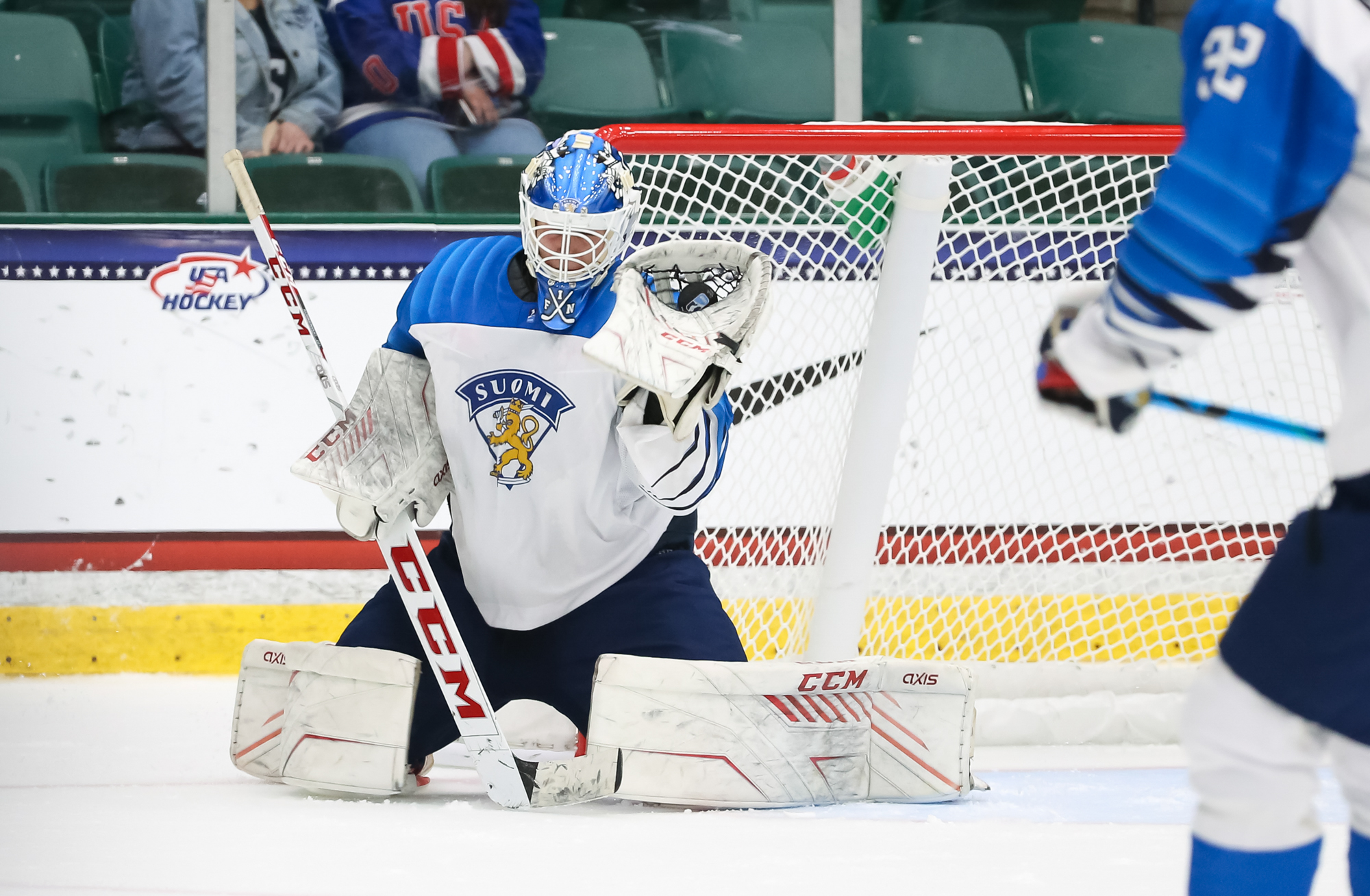 Nearing the midway mark of the third, Mbereko had to be sharp as Finland got a couple of good chances for the go-ahead goal. At the other end, Koskenvuo was alert to pick off a Sean Behrens shot from the left side, and shortly afterwards stoned Liam Gilmartin with a skate save.