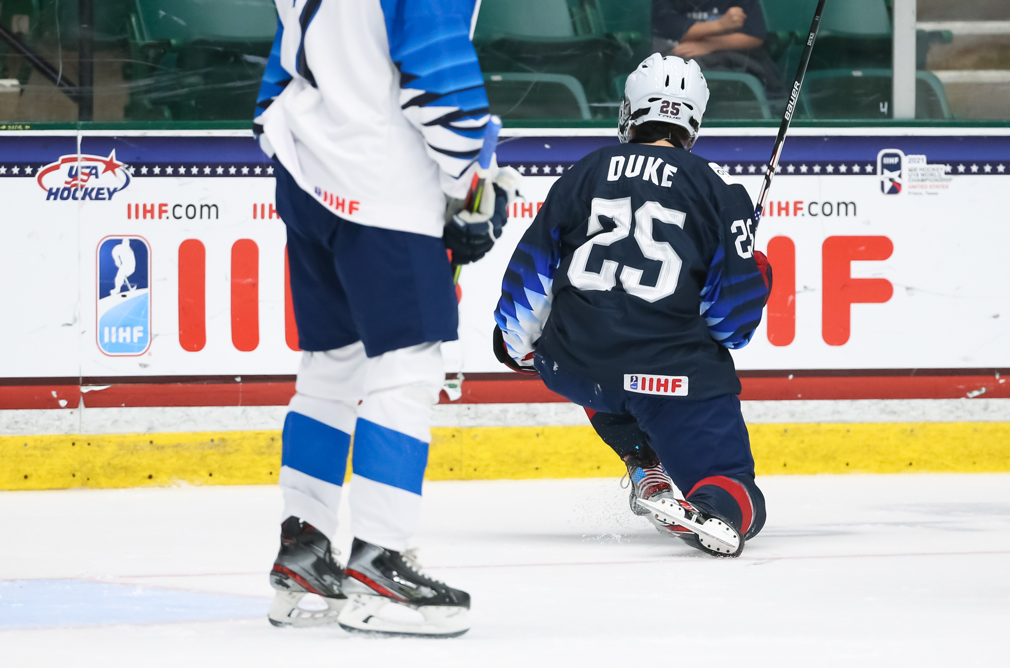 Both teams came out hard, but the U.S. got the opening goal at 8:13. Koskenvuo stopped Pastujov’s long drive, but Jack Hughes grabbed the rebound and fed it across to Dylan Duke, who banged it into the gaping cage. Pastujov, who leads the U.S. with seven points, kept his four-game point streak alive.