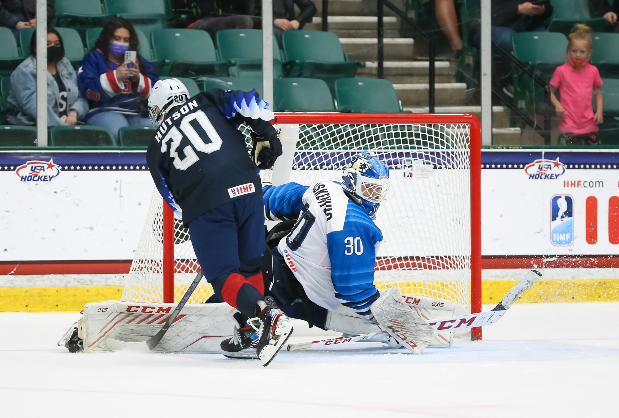 The U.S. got a golden opportunity with a penalty shot with under five minutes to play after a Finnish defender gloved the puck in the goal crease during a scrum. Hutson was chosen to take the shot. He raced in stickhandling, but couldn't slide the disc past Koskenvuo.