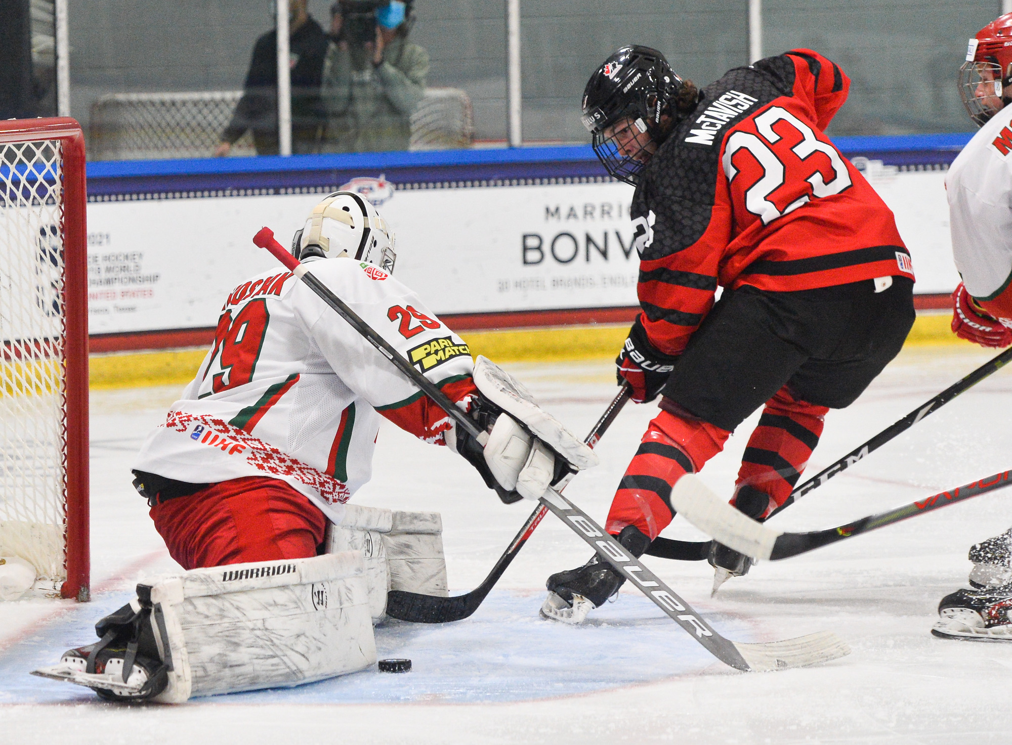 Any hope that that goal would start a comeback was dashed in the third. Canada played a tenacious period and then Belarus ran into serious penalty trouble, giving Canada two 5-on-3 situations and incurring a major and game misconduct thanks to a Danil Rogach cross-check. McTavish capitalized midway through the major to make it a 5-1 game.