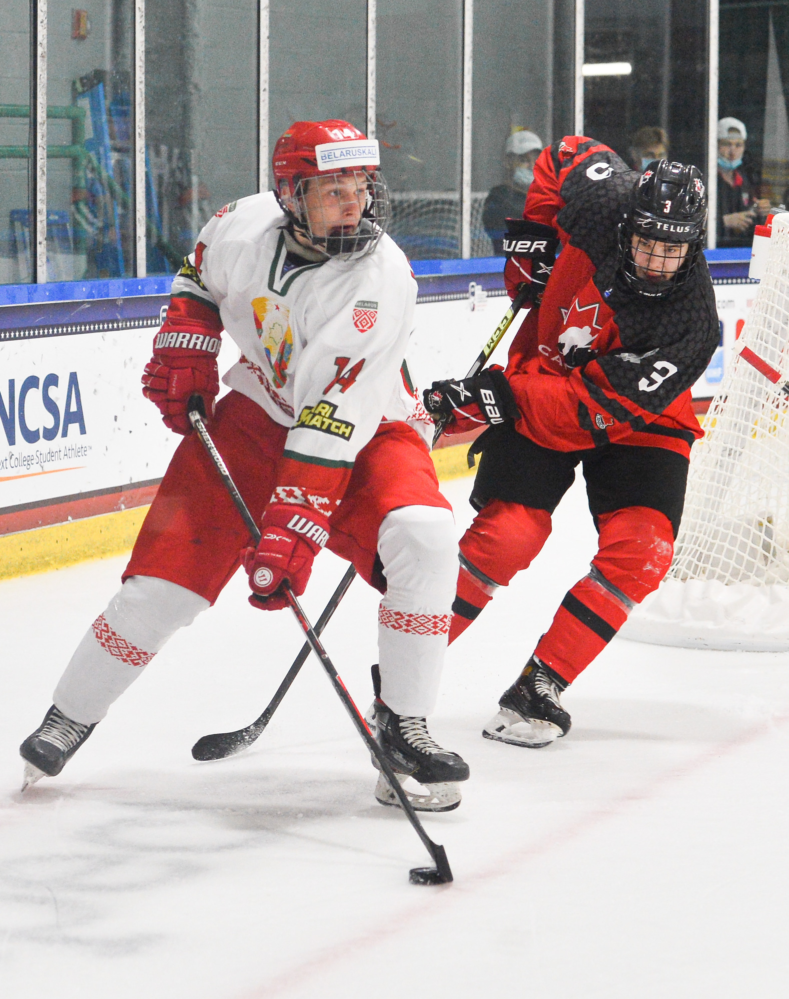 Canada wasted no time in doubling its lead again early in the second, and again it came after a sensational scoring chance for Belarus. Zellweger lost the puck at the offensive blue line and Fyodor Nikolayenya dashed the length of the ice on his own, only to be stoned once again by Gaudreau. Moments later, McTavish blew up the middle and ripped a shot past Shostak at 1:59 for a 3-0 lead.