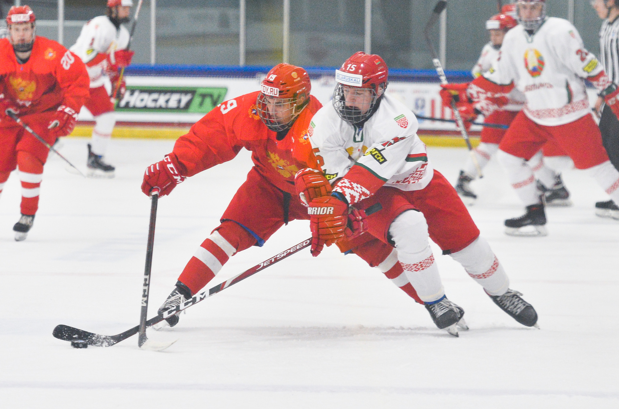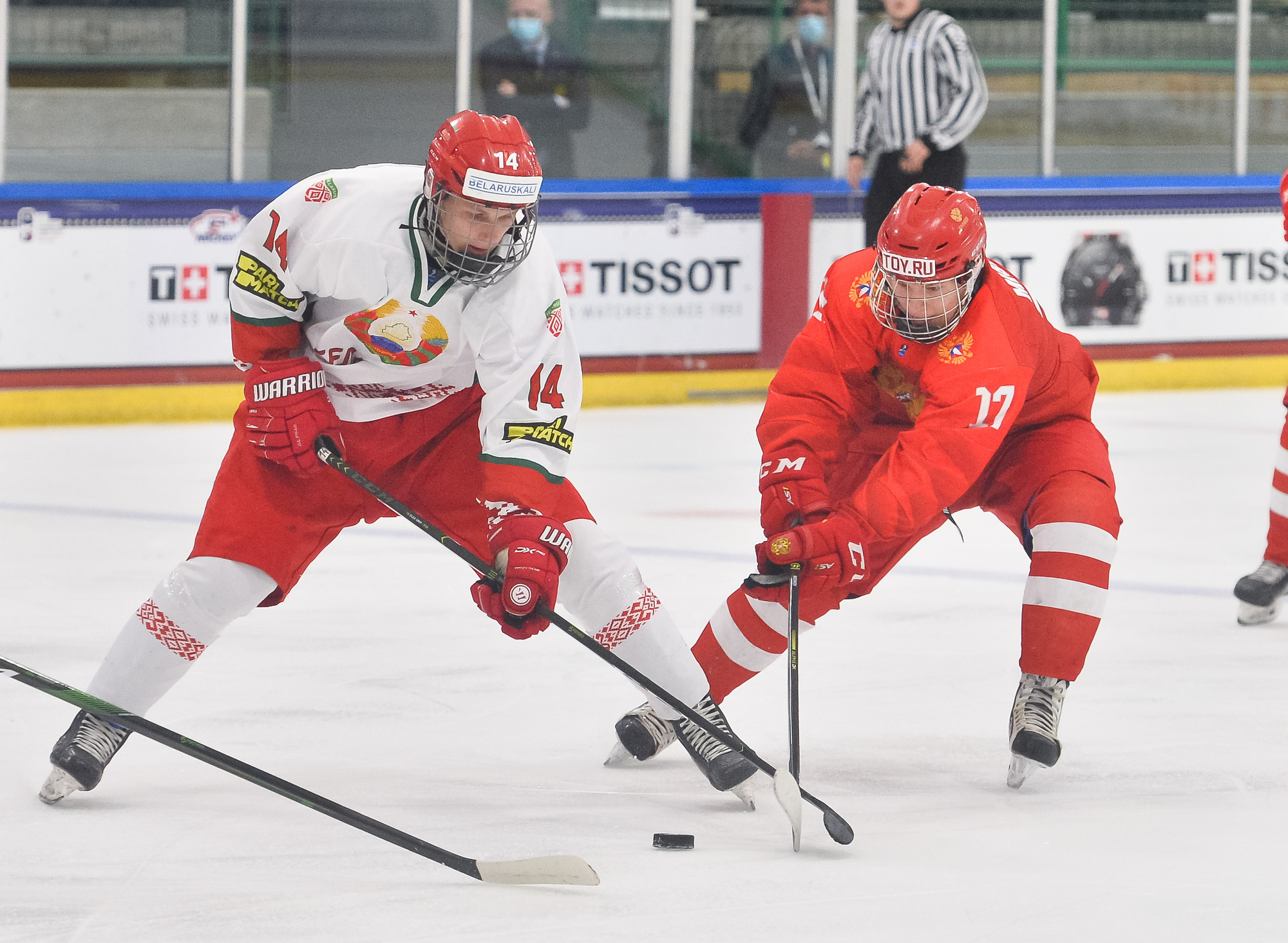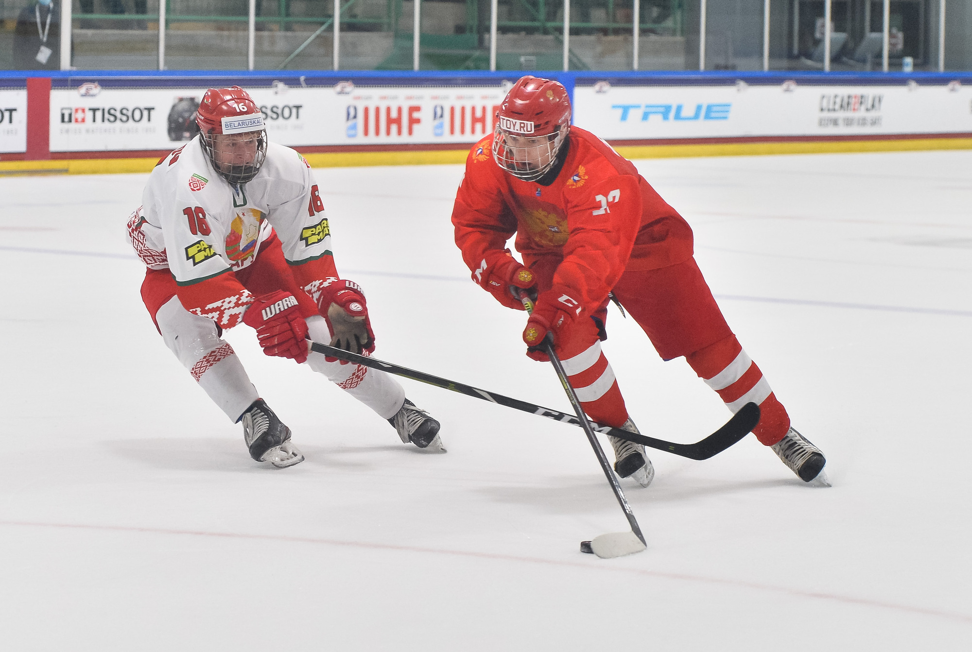 Less than four minutes later, it was 3-2. Belarus's Ivan Anoshko did a great job of winning a draw in the Russian zone and dishing the puck to Fyodor Nikolayenya, who made no mistake.
