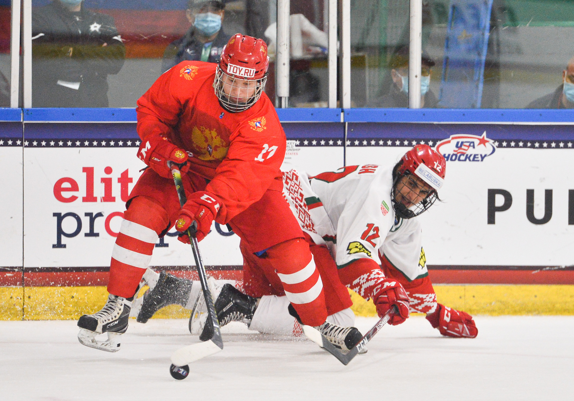 Russia held off a determined Belarusian side to advance with a 5-2 win in Monday's first quarter-final at the 2021 IIHF Ice Hockey U18 World Championship. Russian scoring leader Matvei Michkov tallied his tournament-leading 10th goal, while Danila Yurov stepped up with a goal and an assist.
